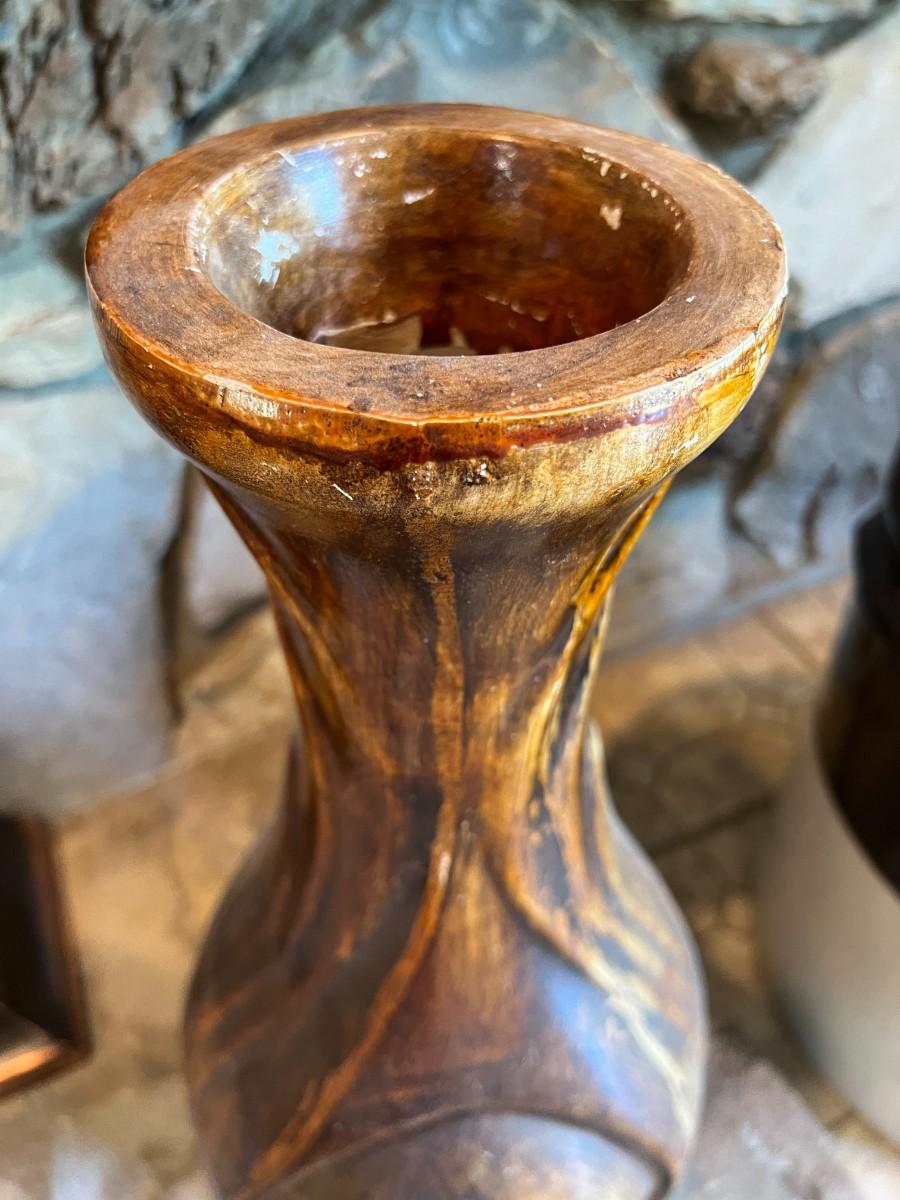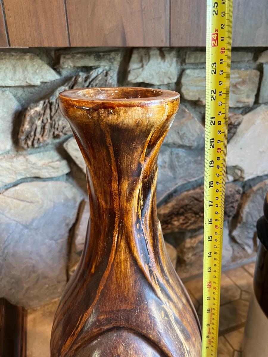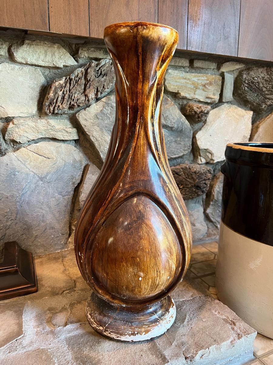 There is some retro wear to the vase, but there is no significant damage and is in overall good displayable or collectible condition. Check pictures for more details and for sizing.