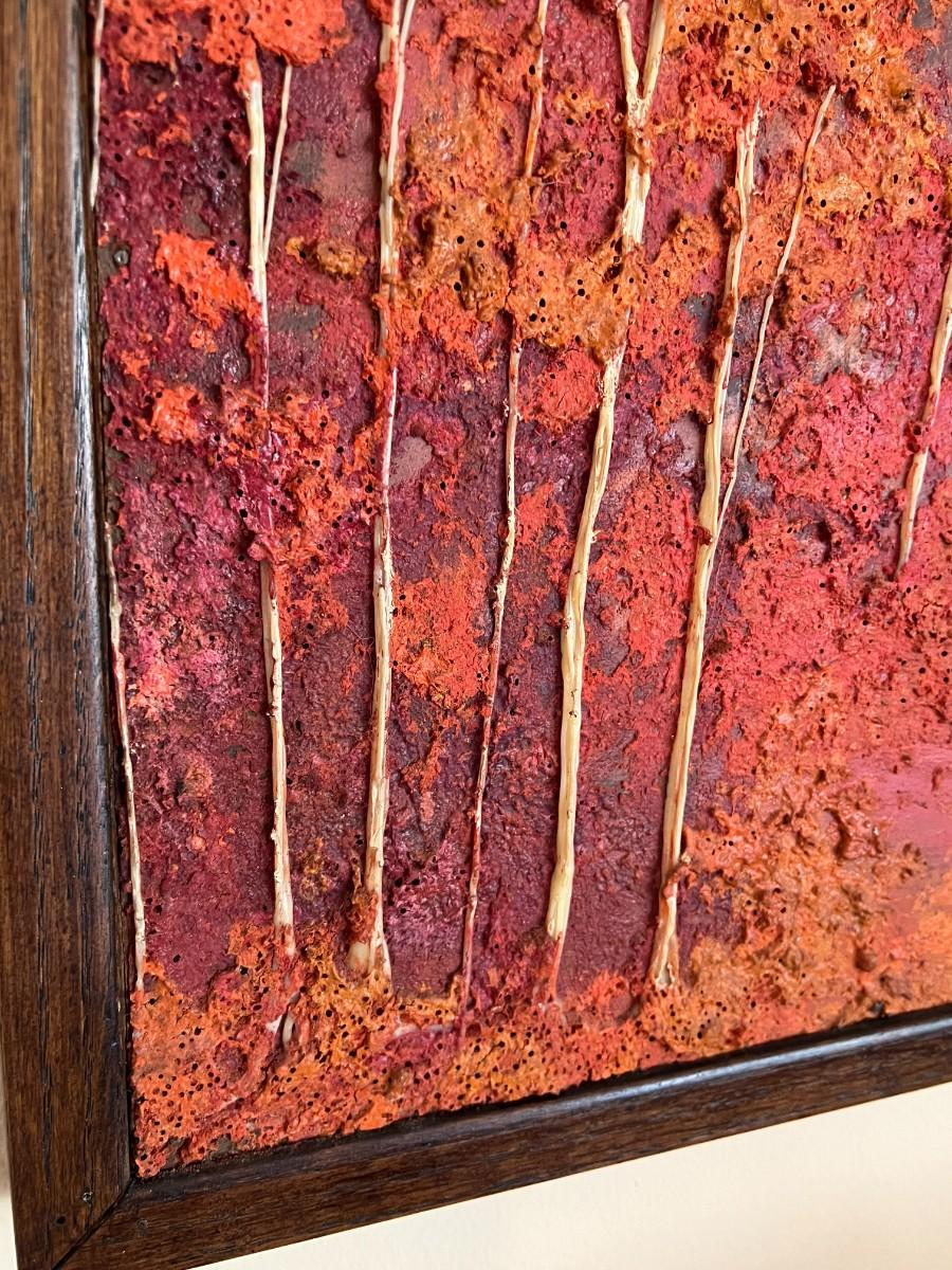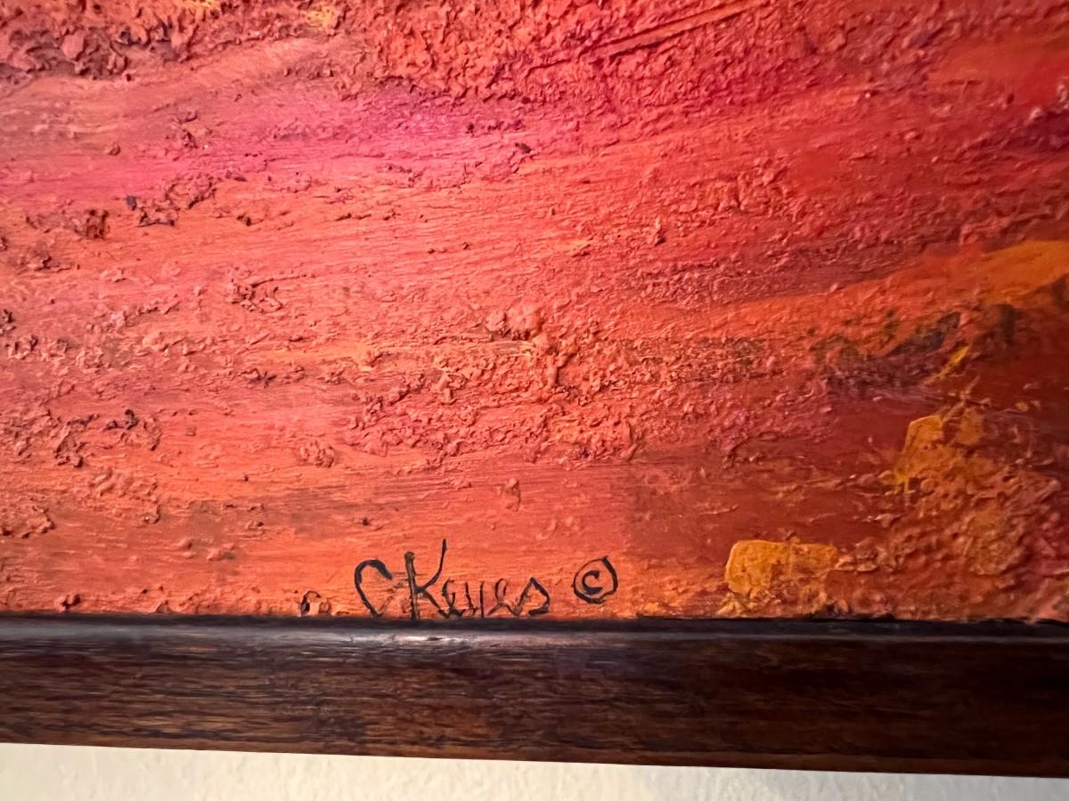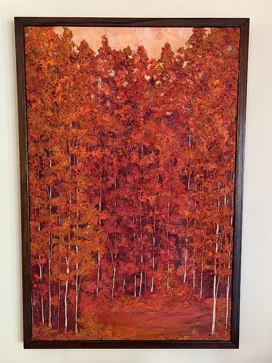 Large Original Heavily Textured Deep Orange & Red Autumn Fall Trees Framed Art Piece Signed C. Keyes