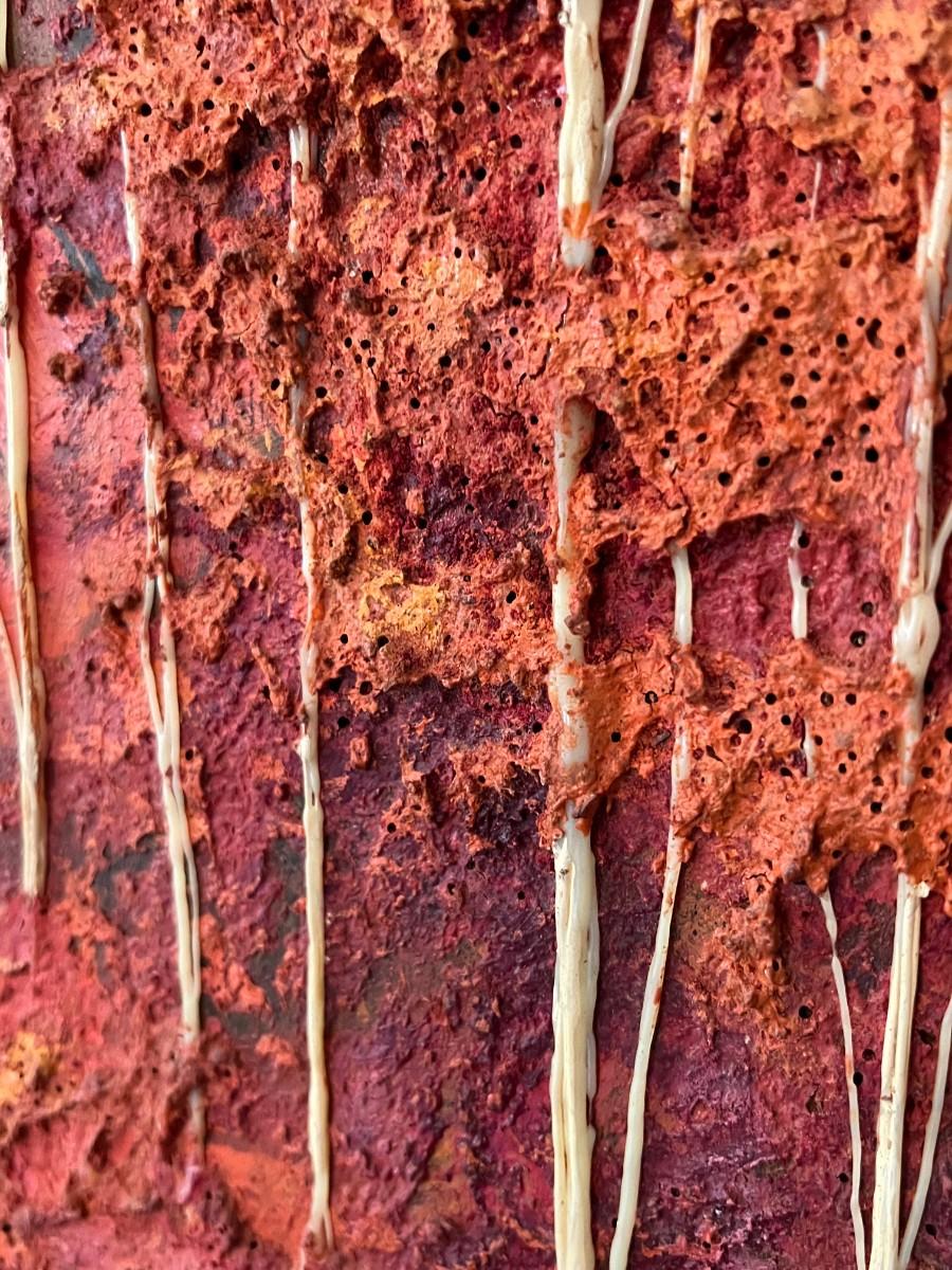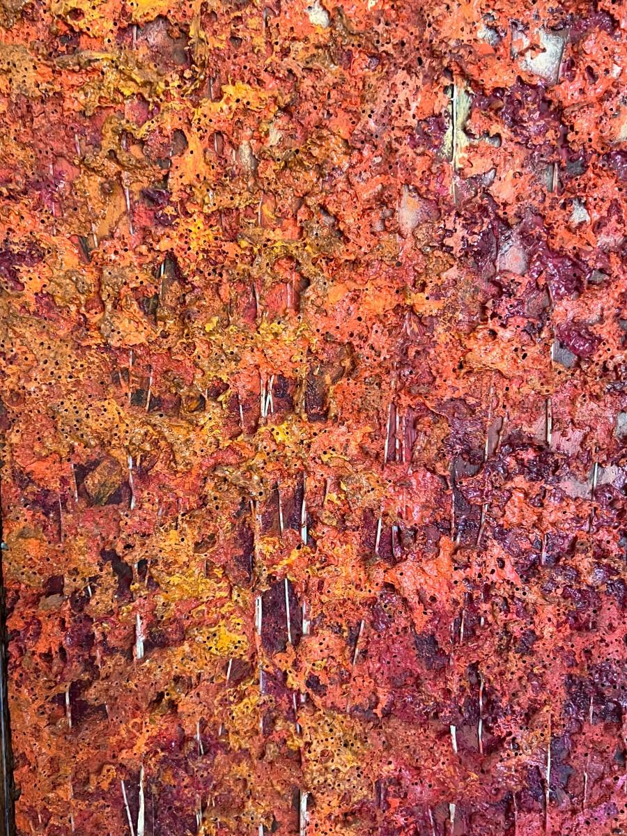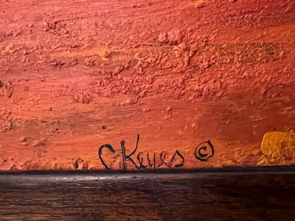 Large Original Heavily Textured Deep Orange & Red Autumn Fall Trees Framed Art Piece Signed C. Keyes