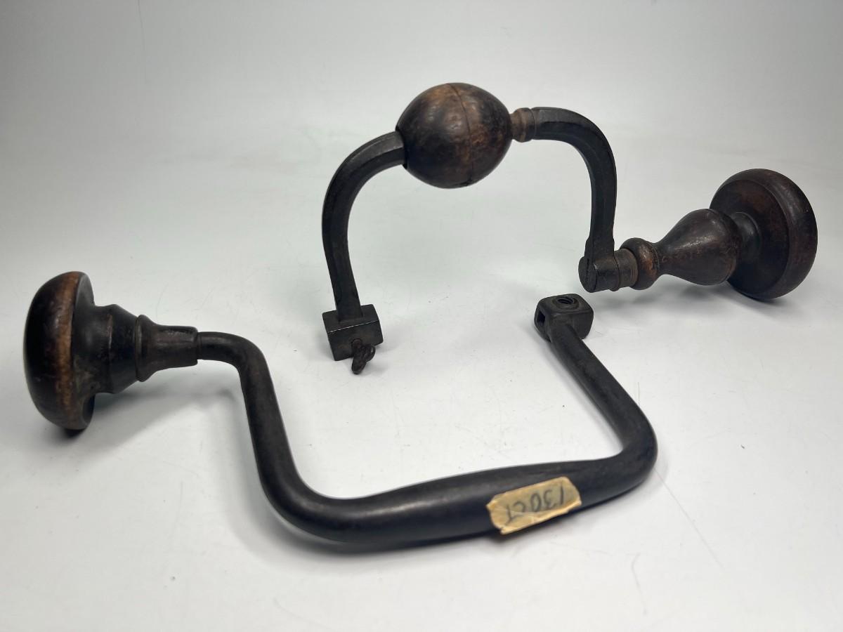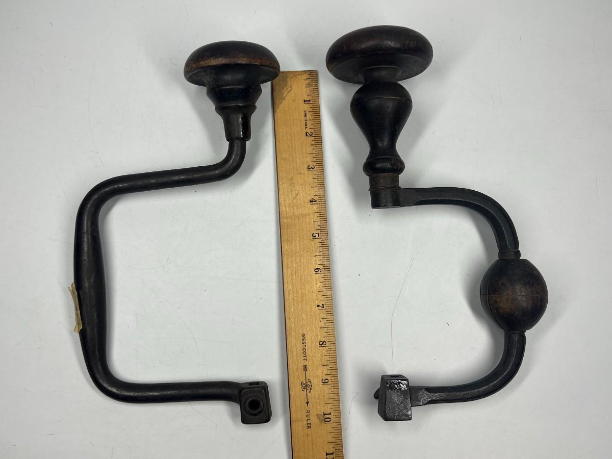 Pair of Antique Gentlemen's Bit Brace Hand Auger Drills. In antique condition. Under 12" length.