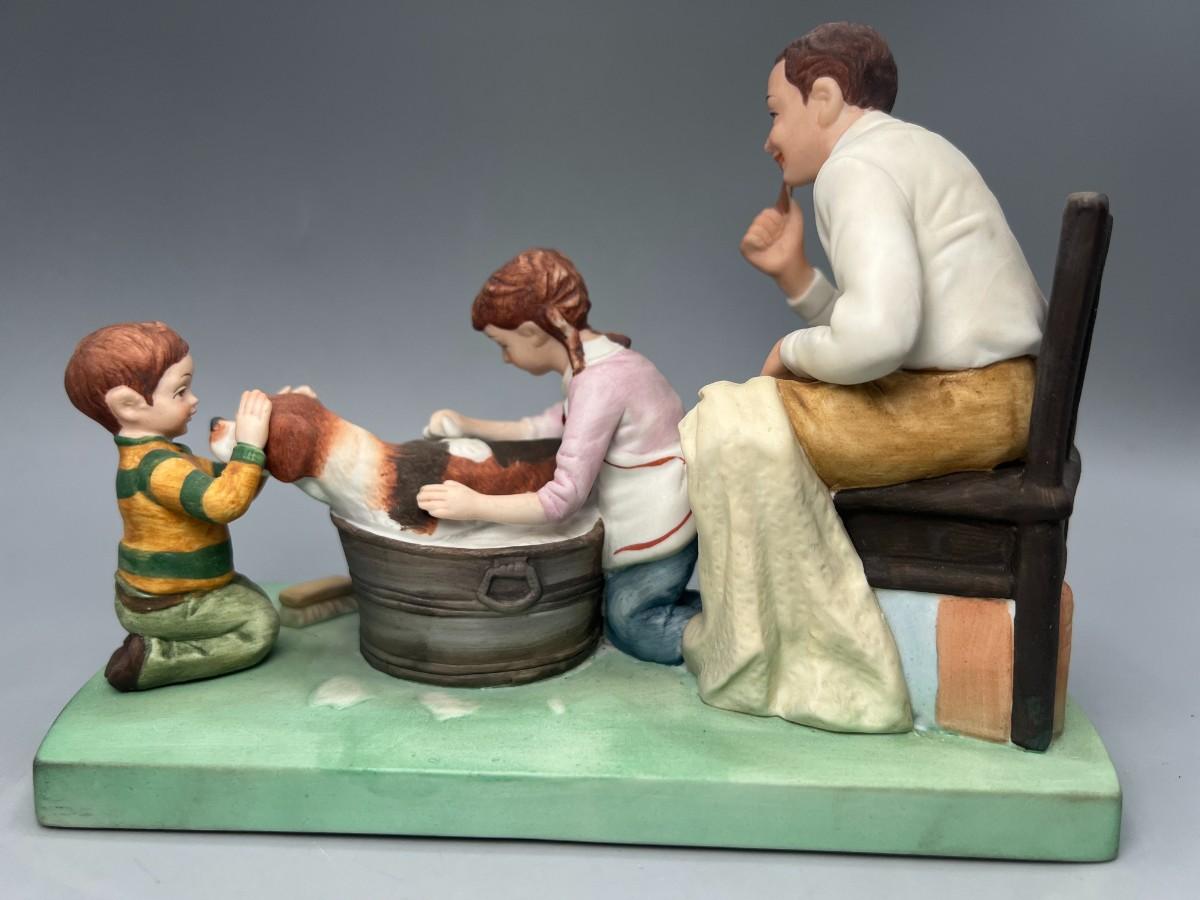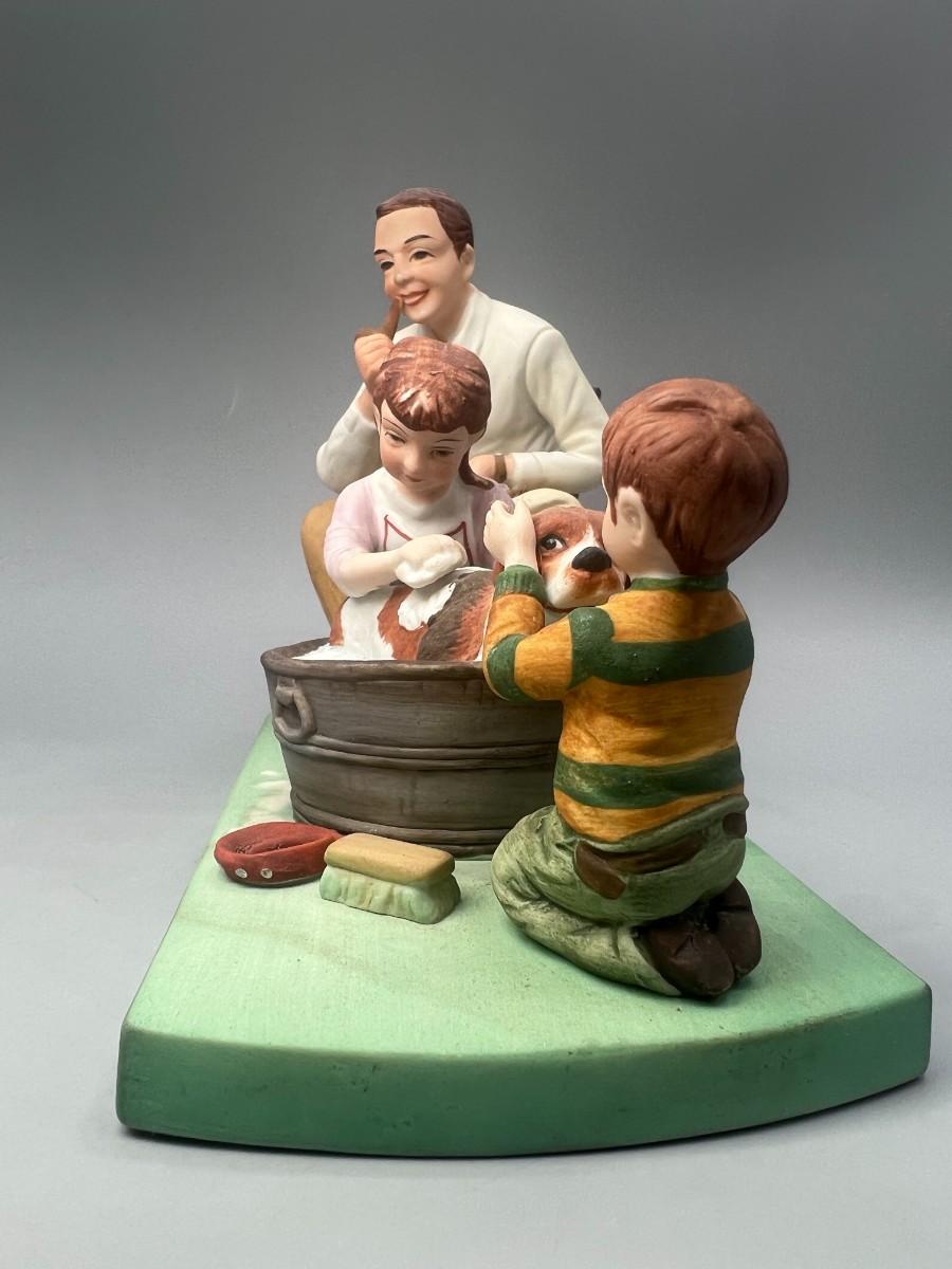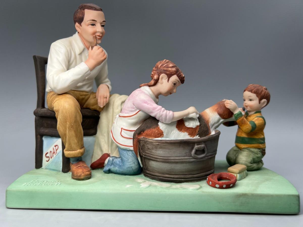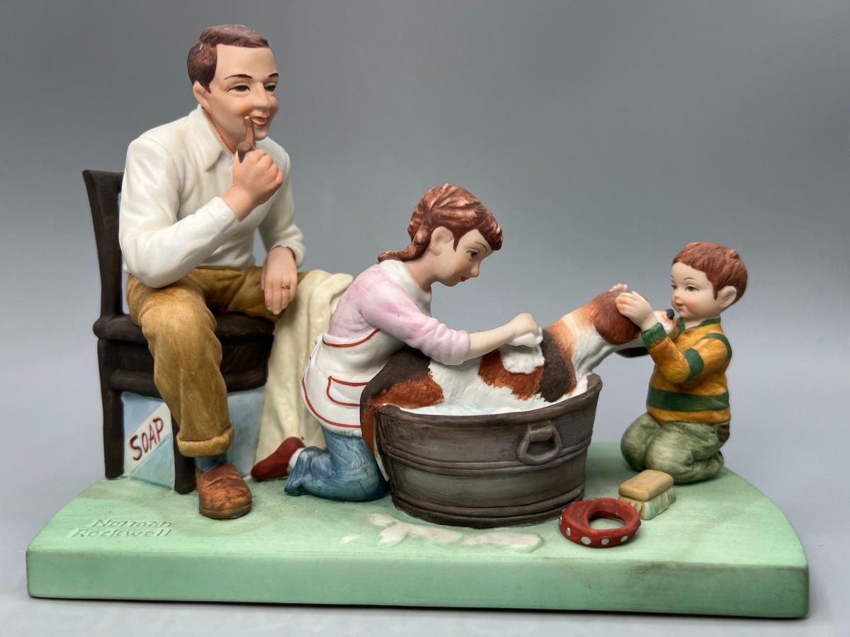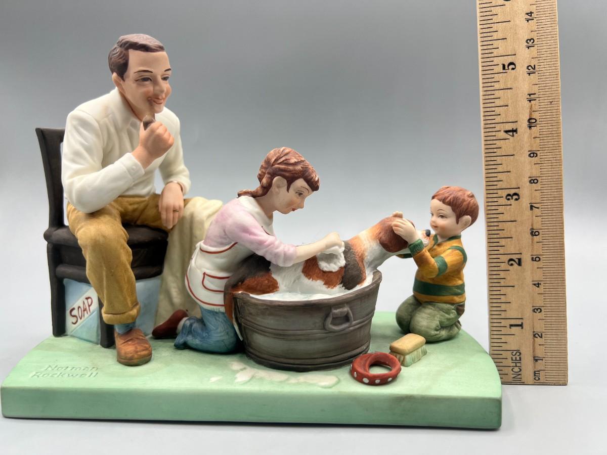 Vintage Norman Rockwell Washing Our Dog American Family Authenticated by Rockwell Museum Statue Figurine