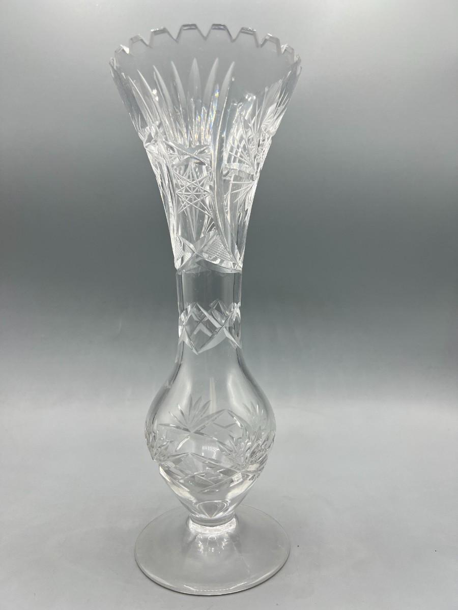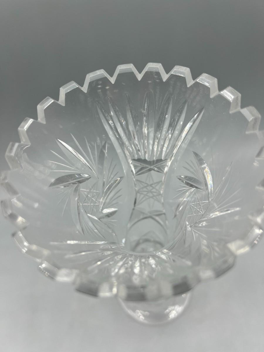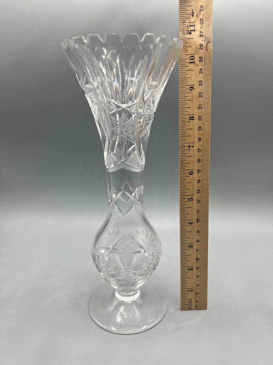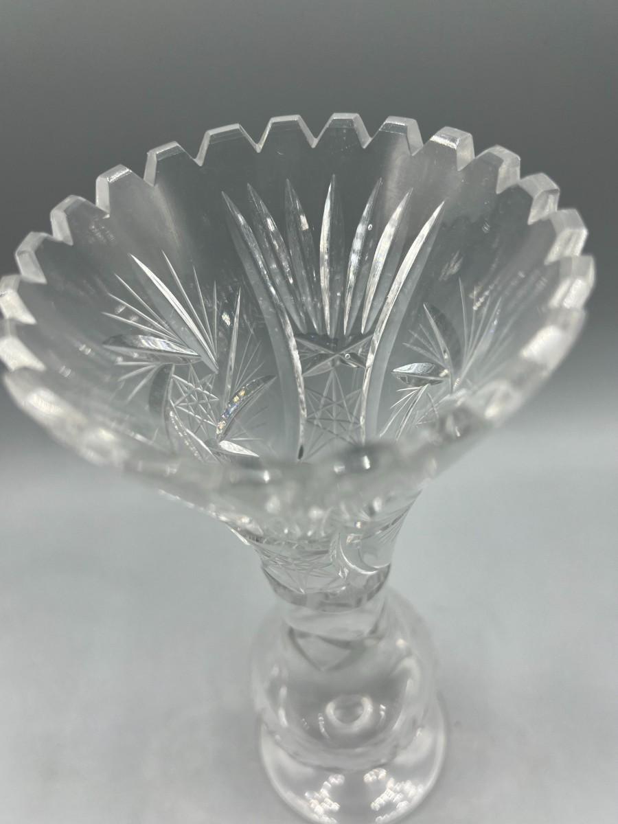 Vintage Crystal Glass Cut Sawtooth Flower Bud Vase