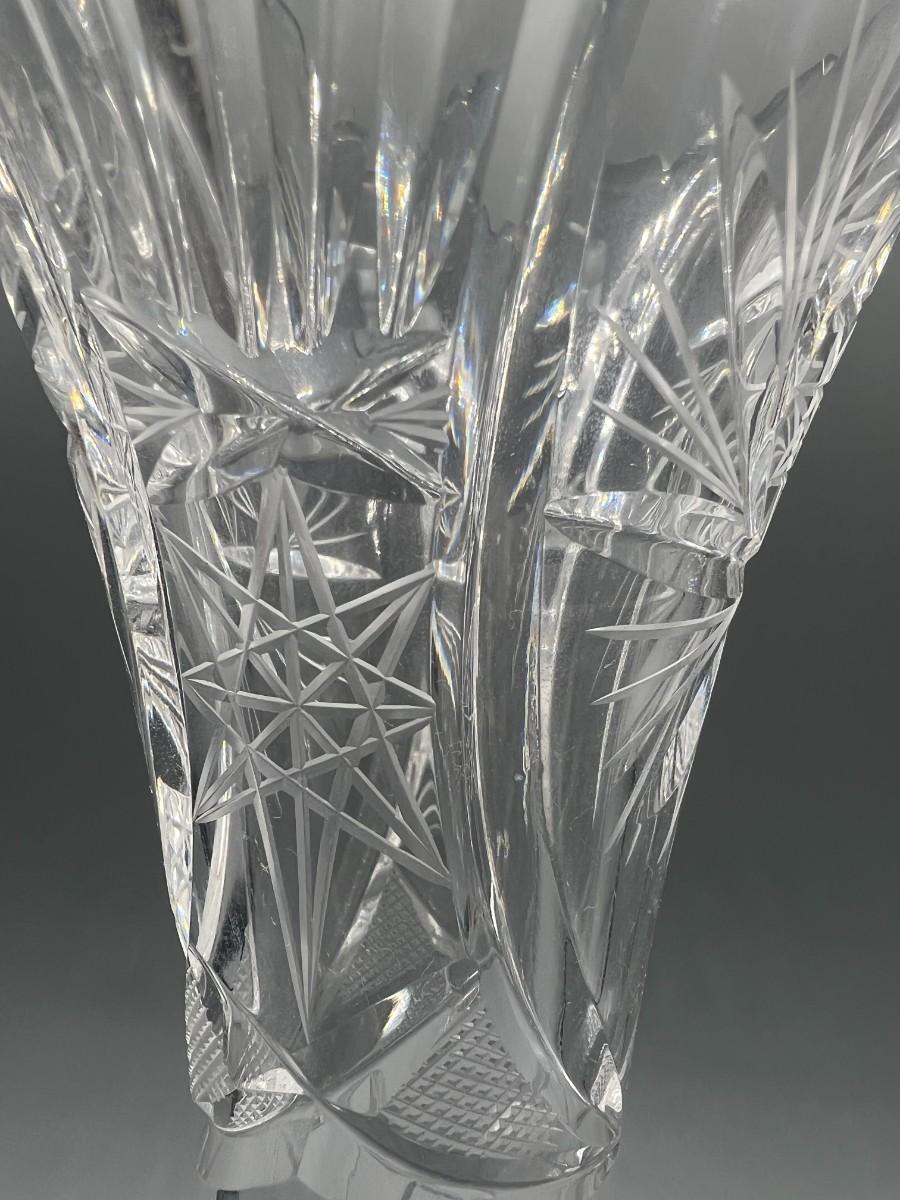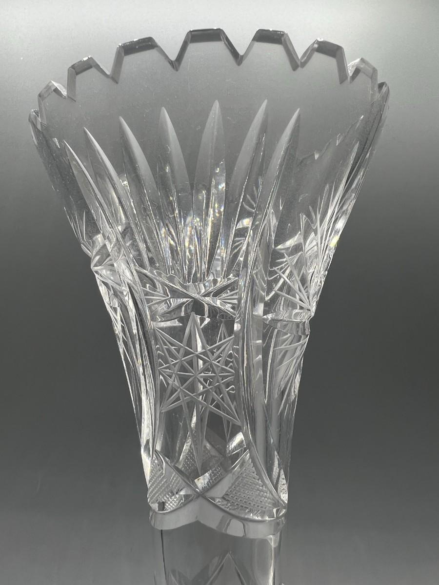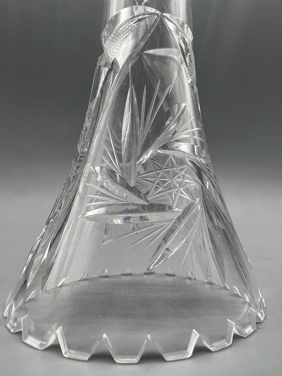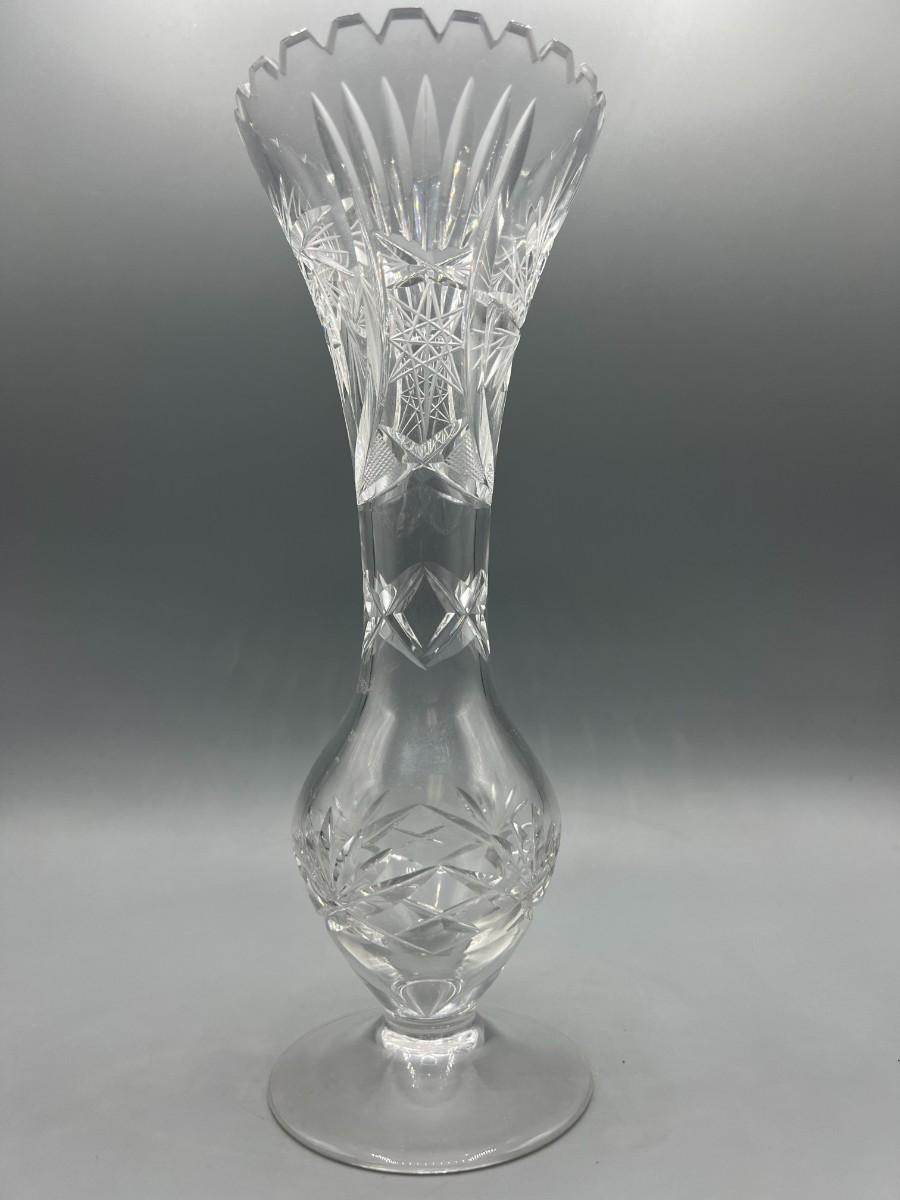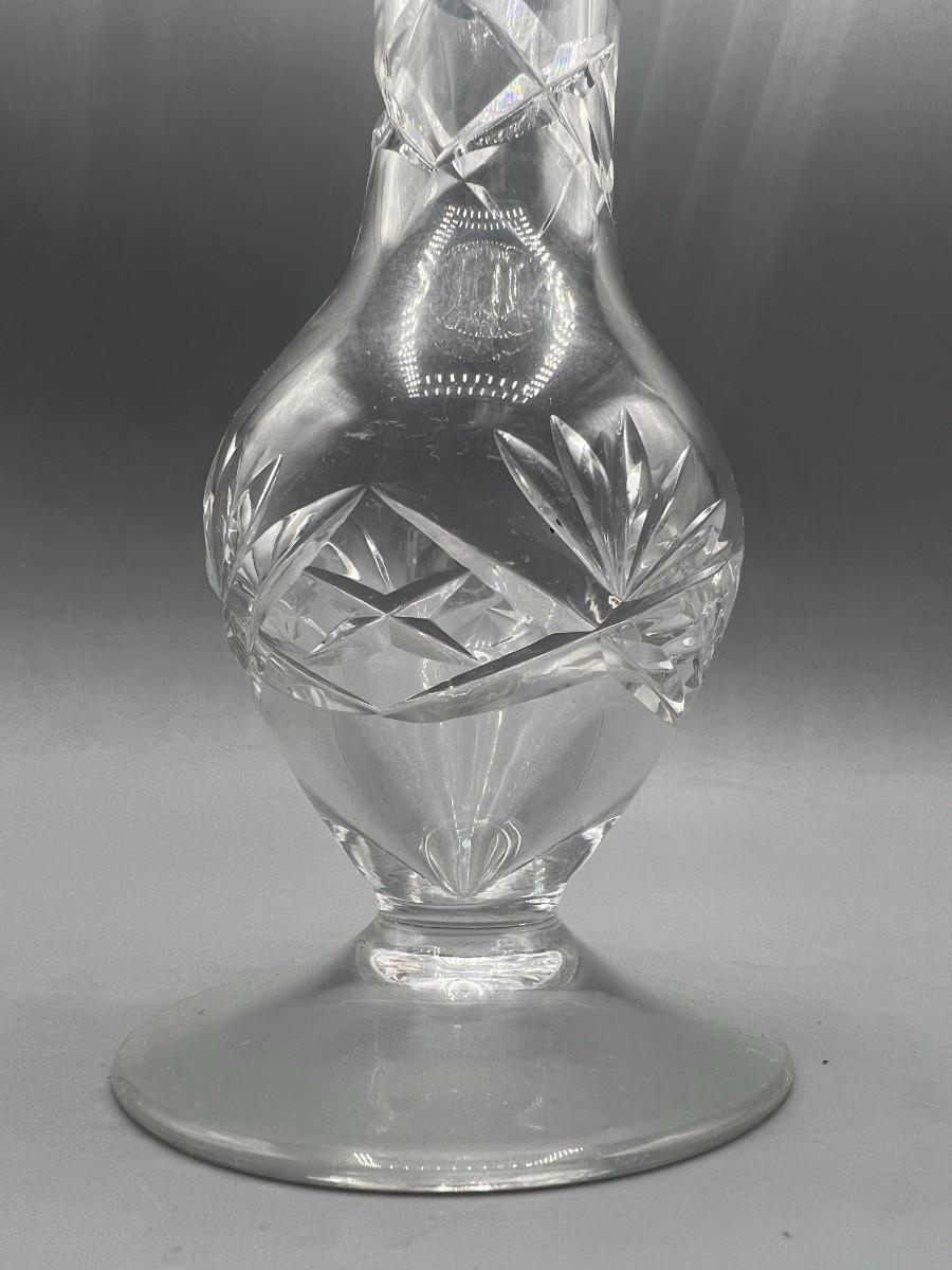 Vintage Crystal Glass Cut Sawtooth Flower Bud Vase