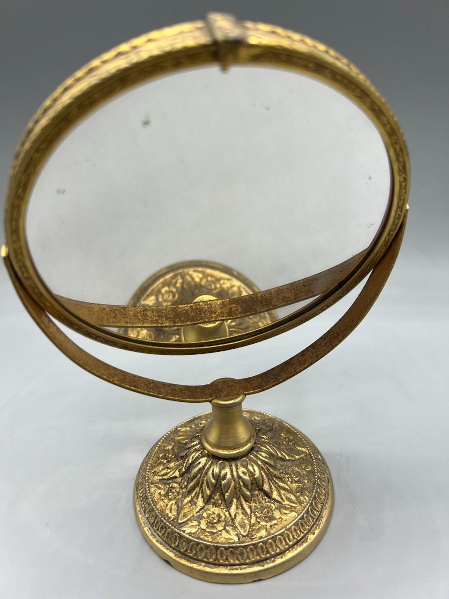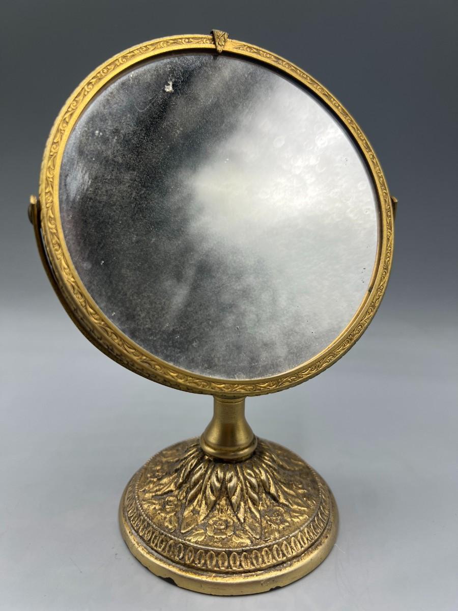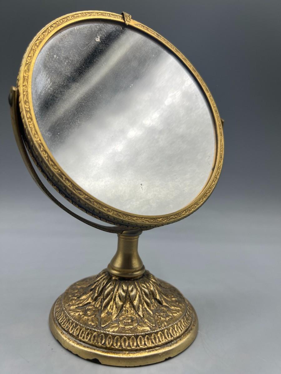 Small Vintage Hollywood Regency Gold Tone Metal Swivel Vanity Makeup Mirror