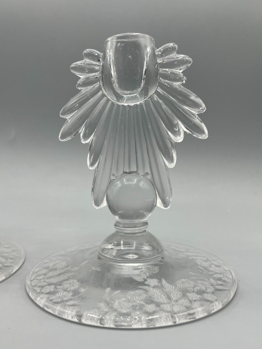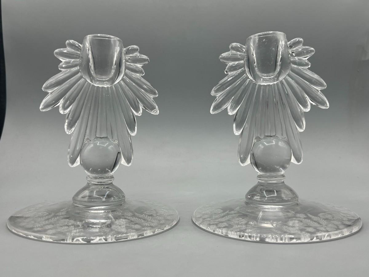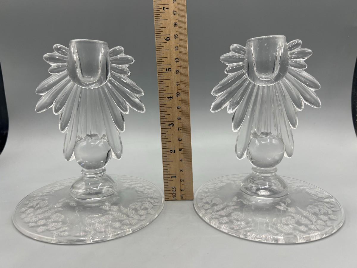 Pair of Vintage New Martinsville #4453 Teardrop Elegant Glass Art Deco Candle Holders