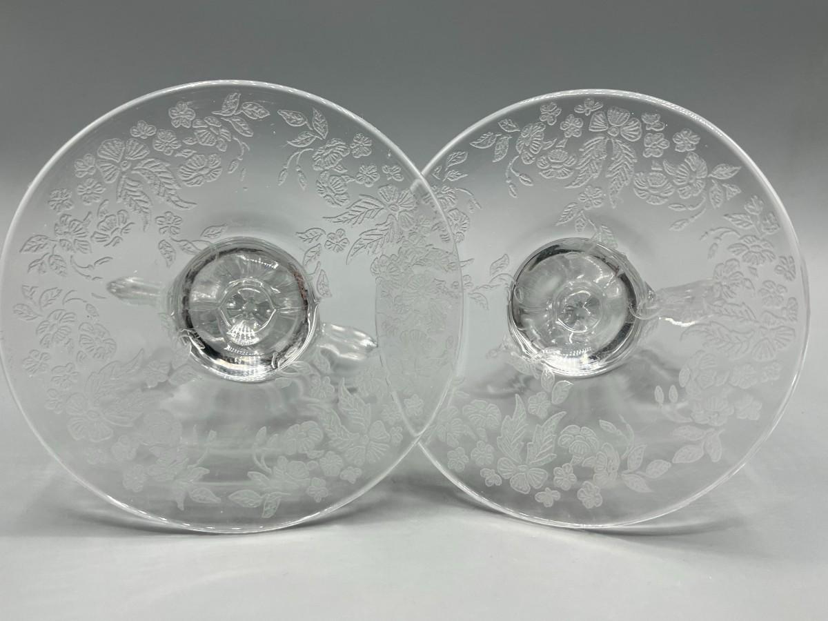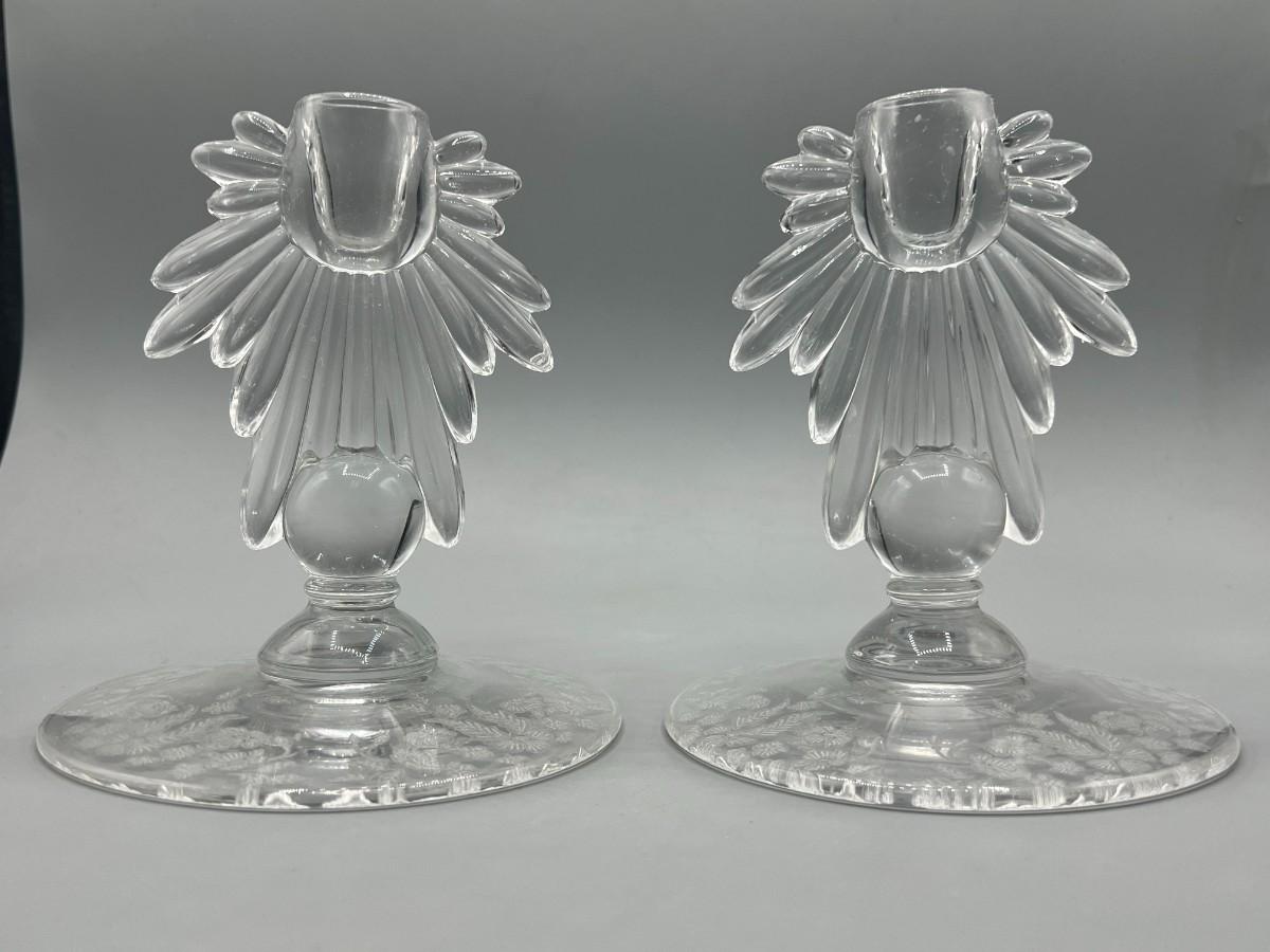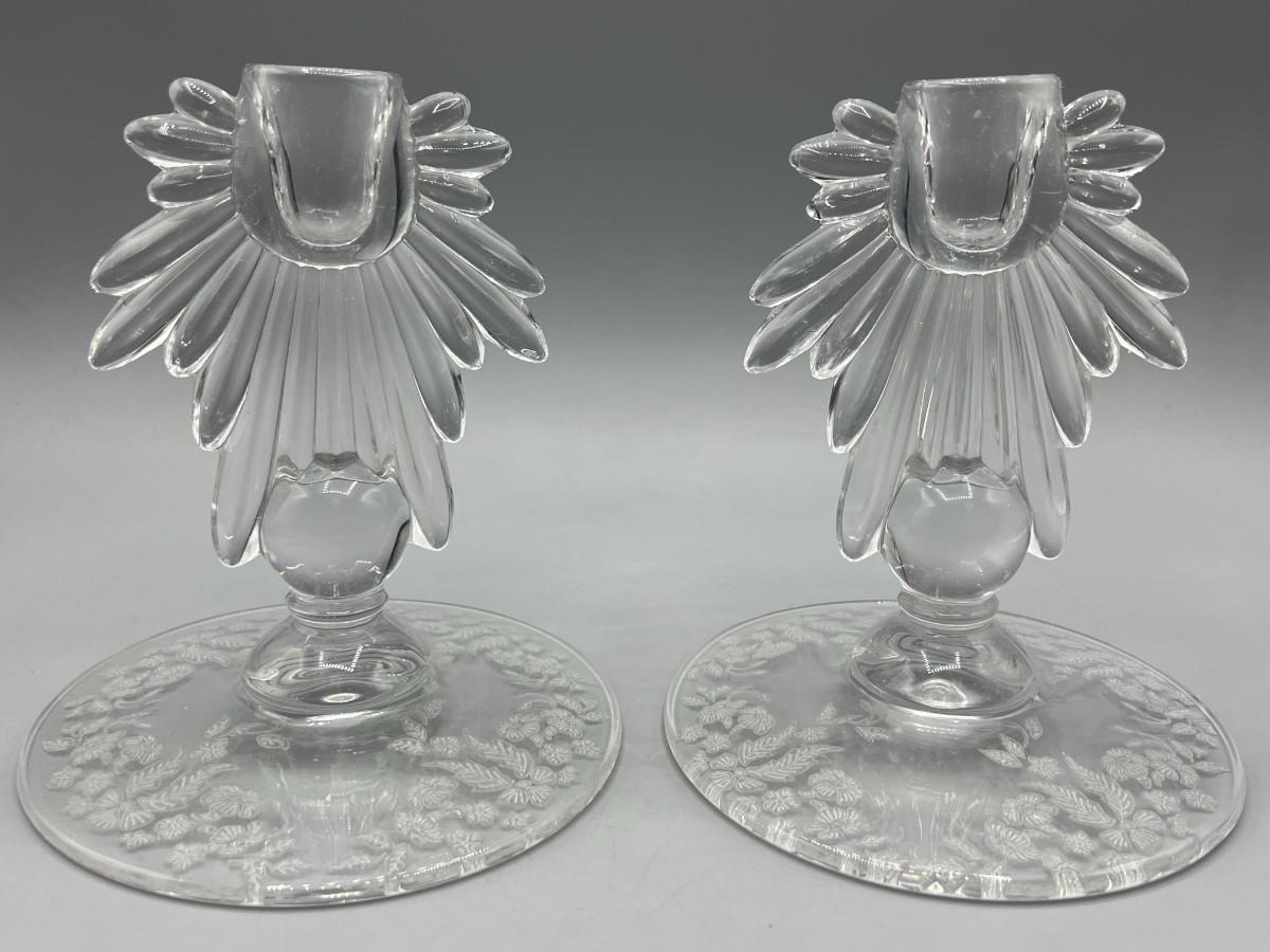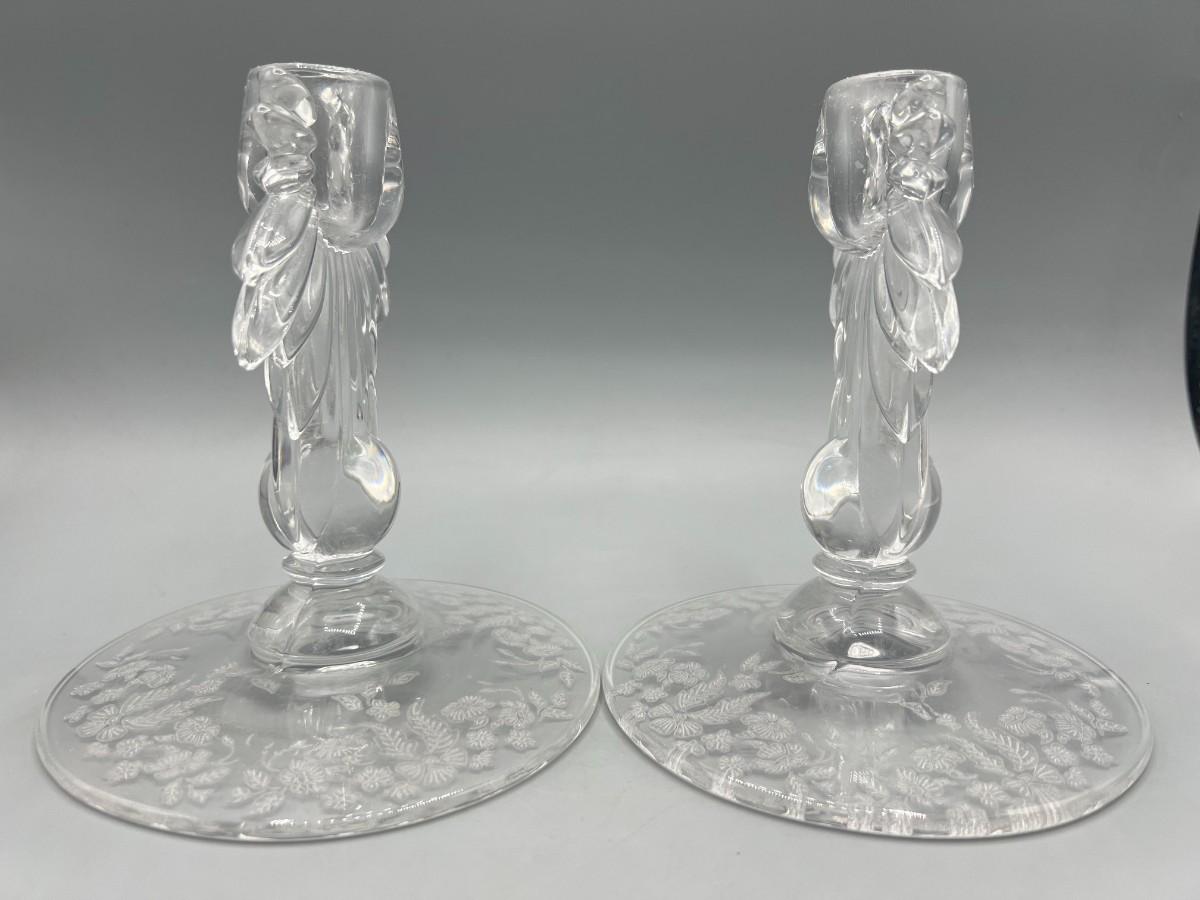 Pair of Vintage New Martinsville #4453 Teardrop Elegant Glass Art Deco Candle Holders