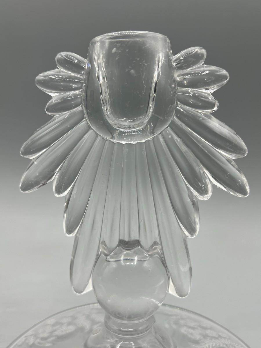 There is some light wear to the glass candle holders, but there is no significant damage and is in overall good collectible or displayable condition. Check pictures for more details and for sizing.