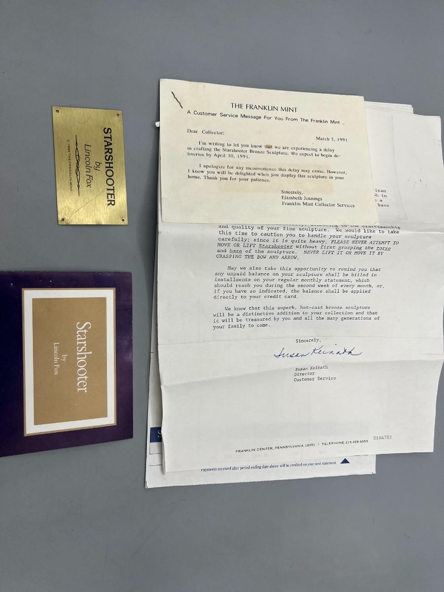 Vintage 1991 Franklin Mint Native American Starshooter by Lincoln Fox Indian Bronze Statue with Provenance & COA