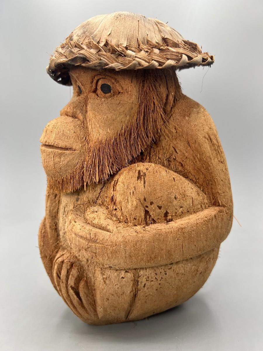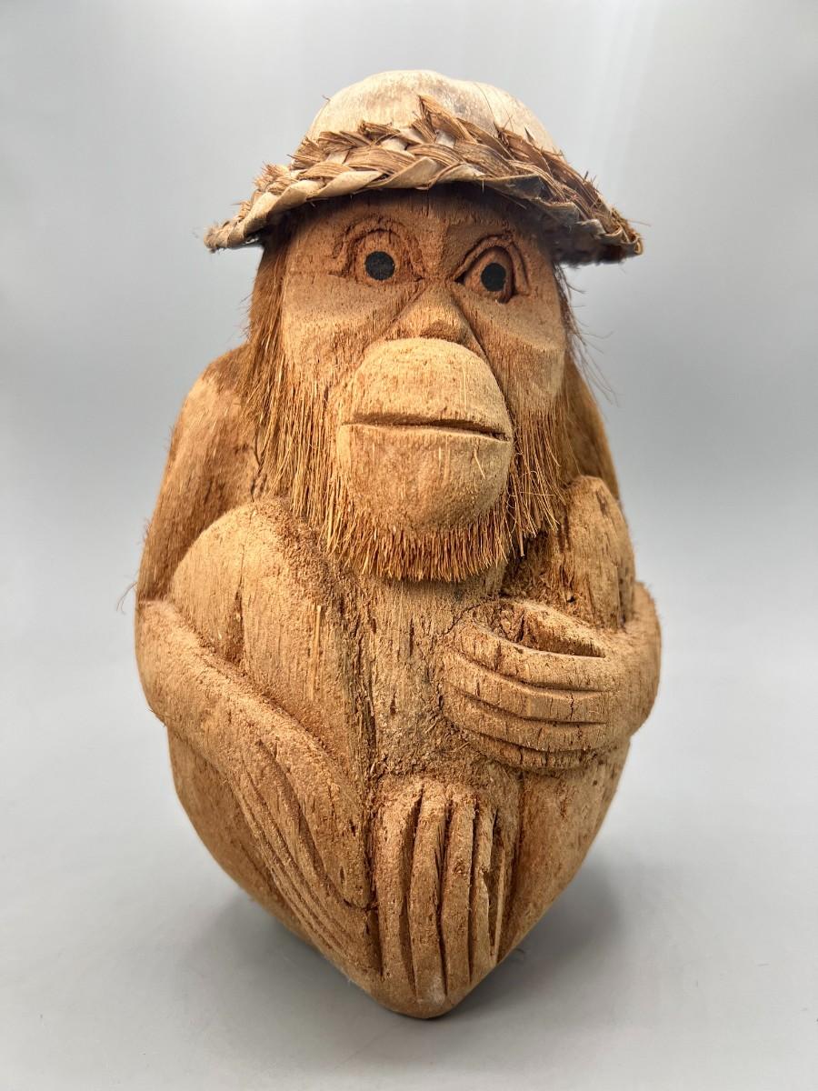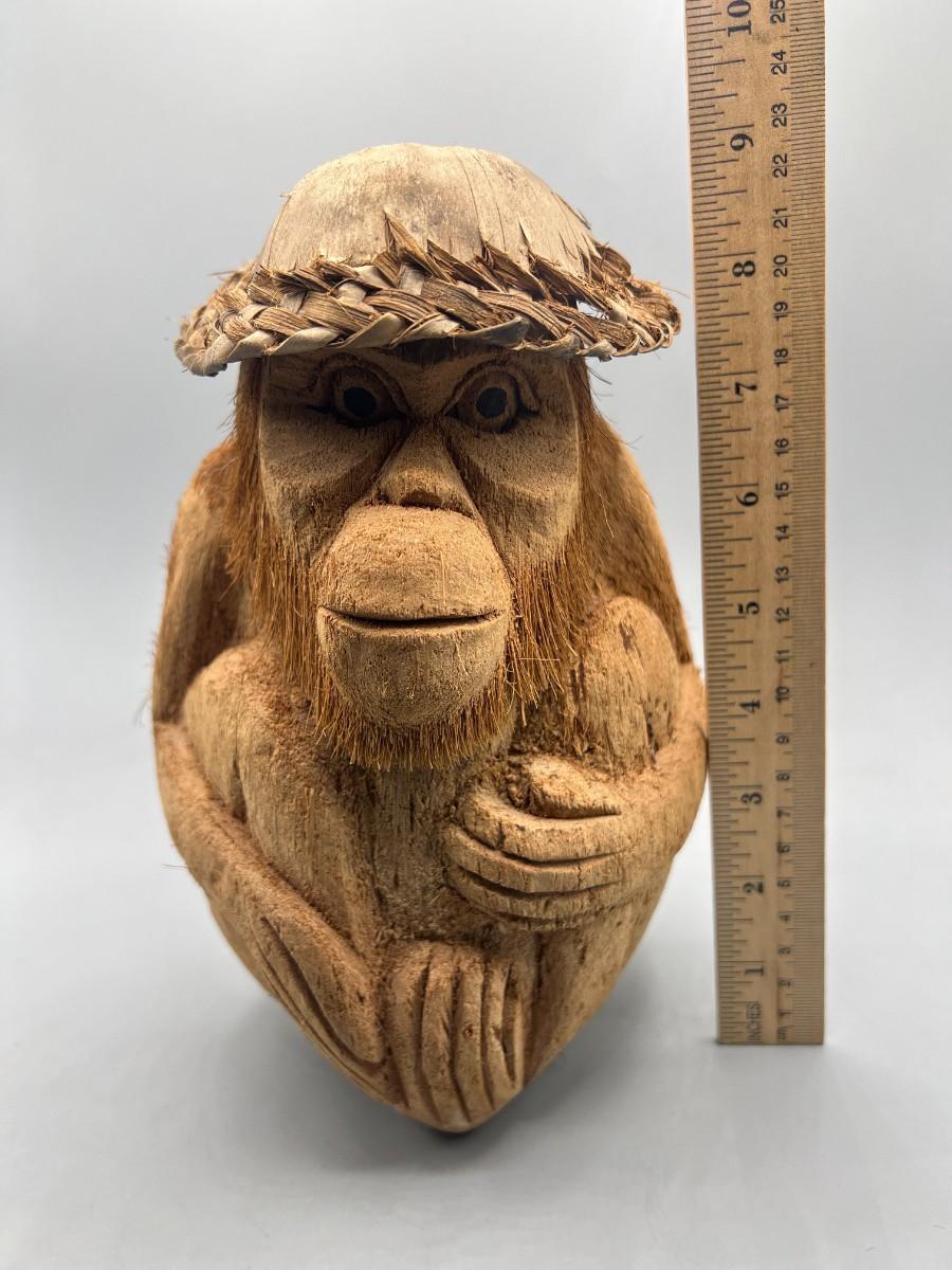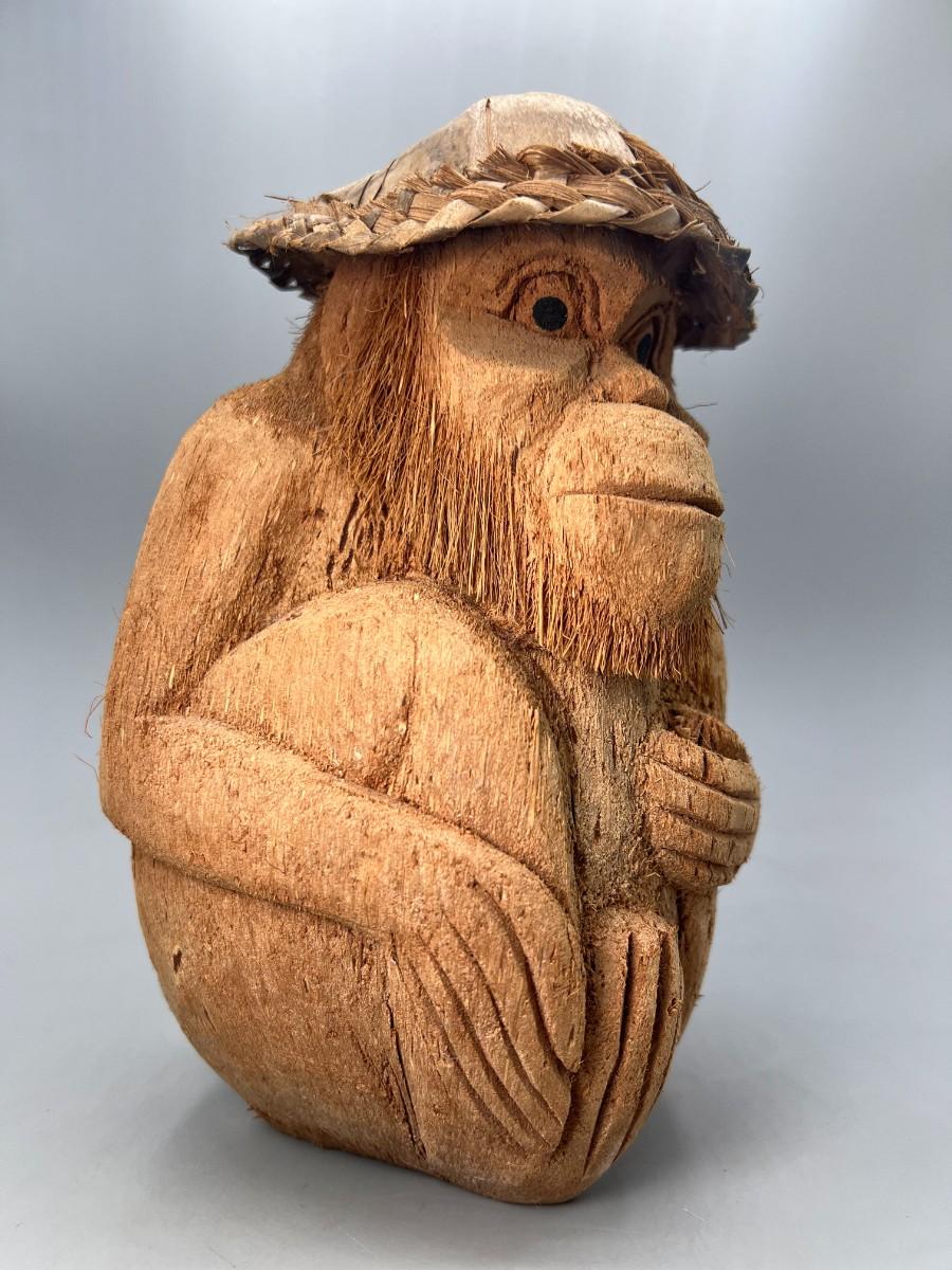 Carved Palm Tree Folk Art Crouching Monkey Tropical Statuette Figurine