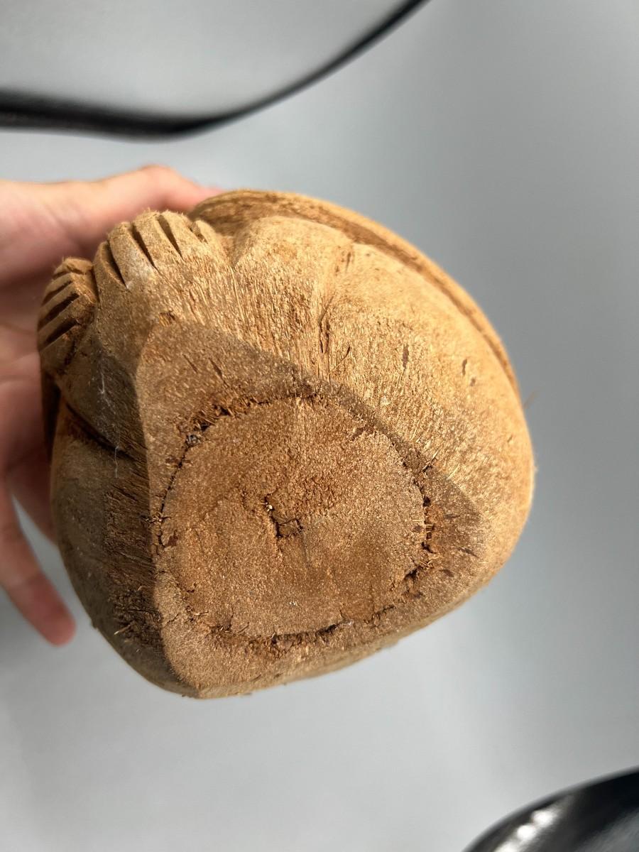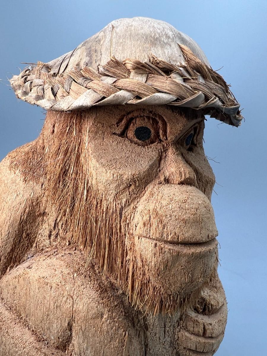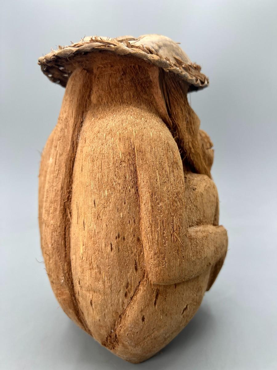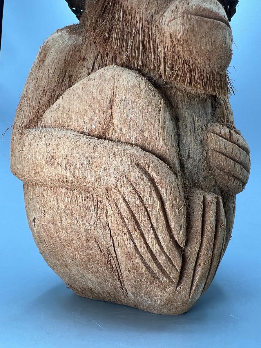 Carved Palm Tree Folk Art Crouching Monkey Tropical Statuette Figurine