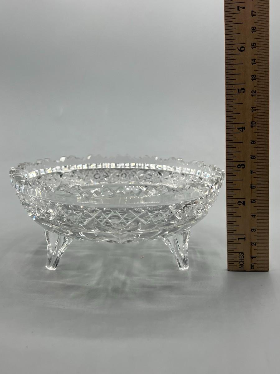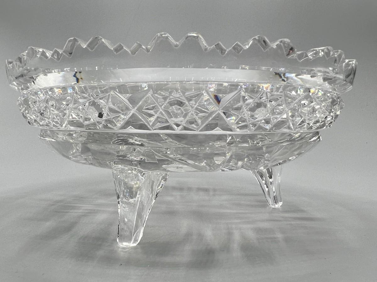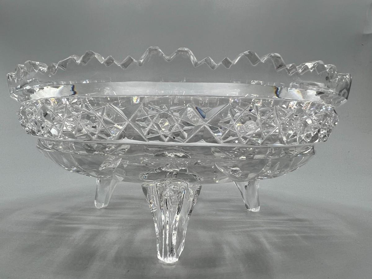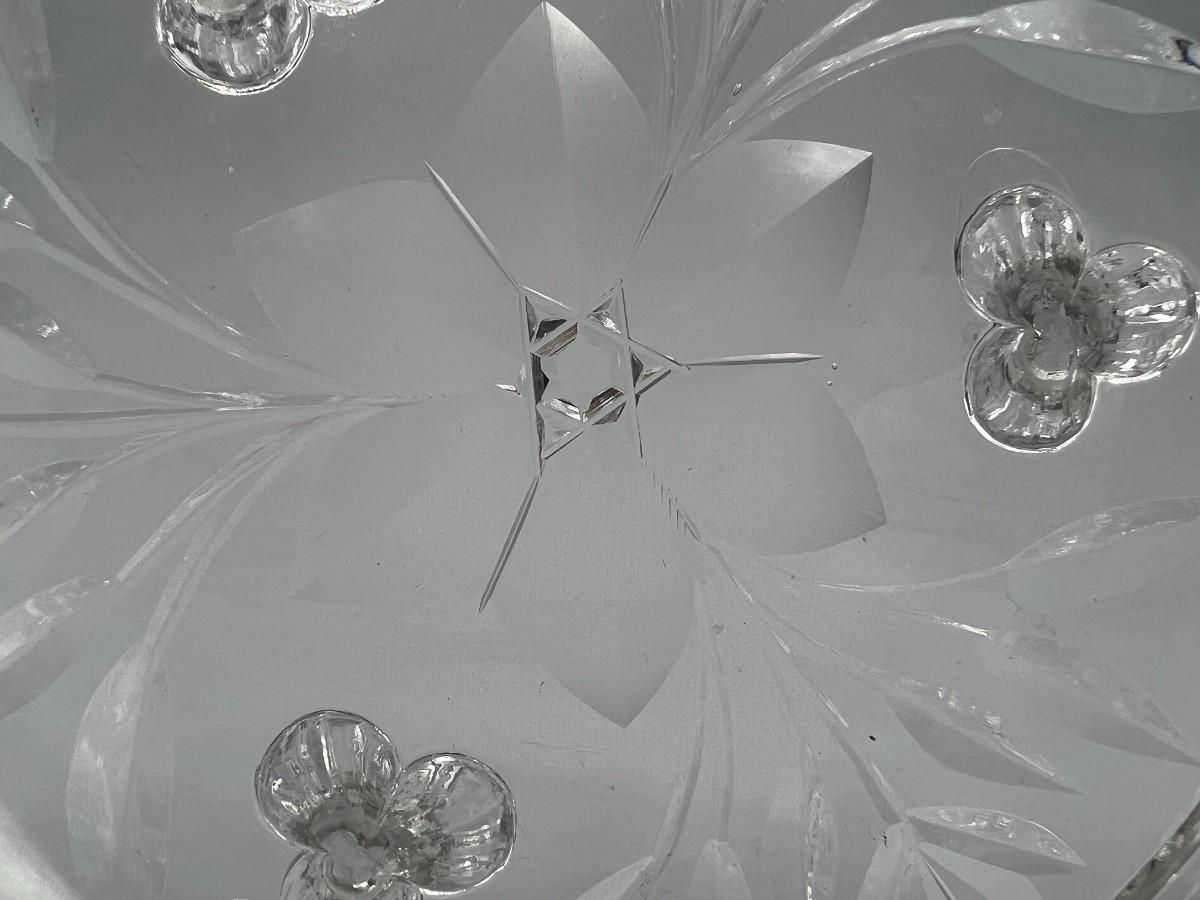 Vintage Etched Crystal Glass Sawtooth Compote Candy Dish
