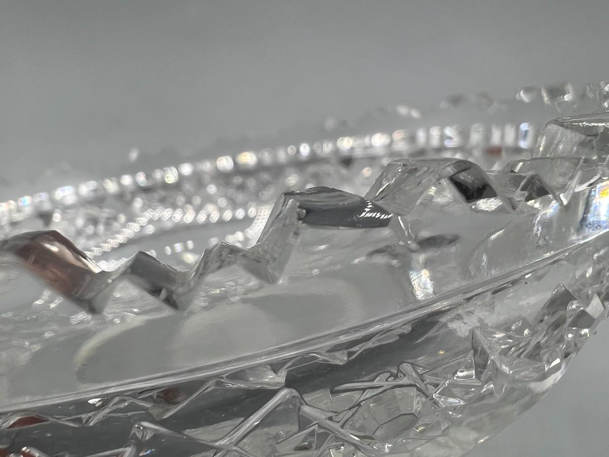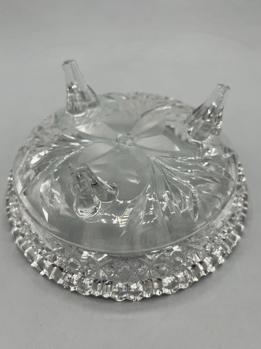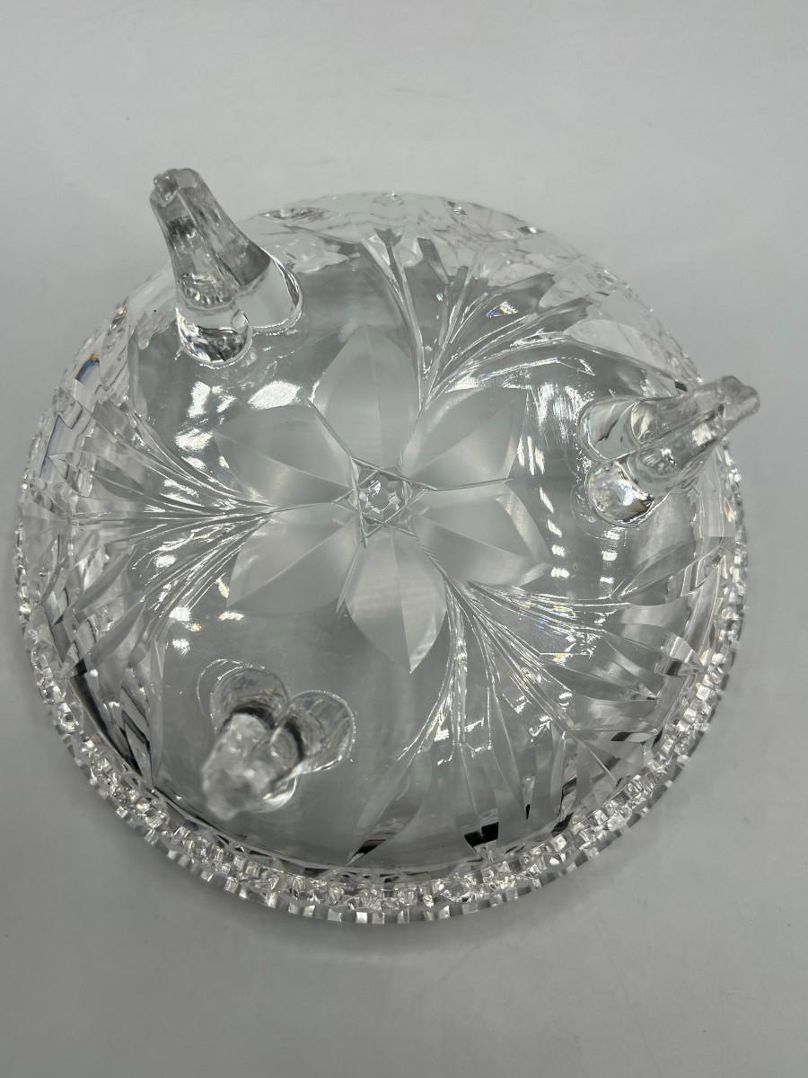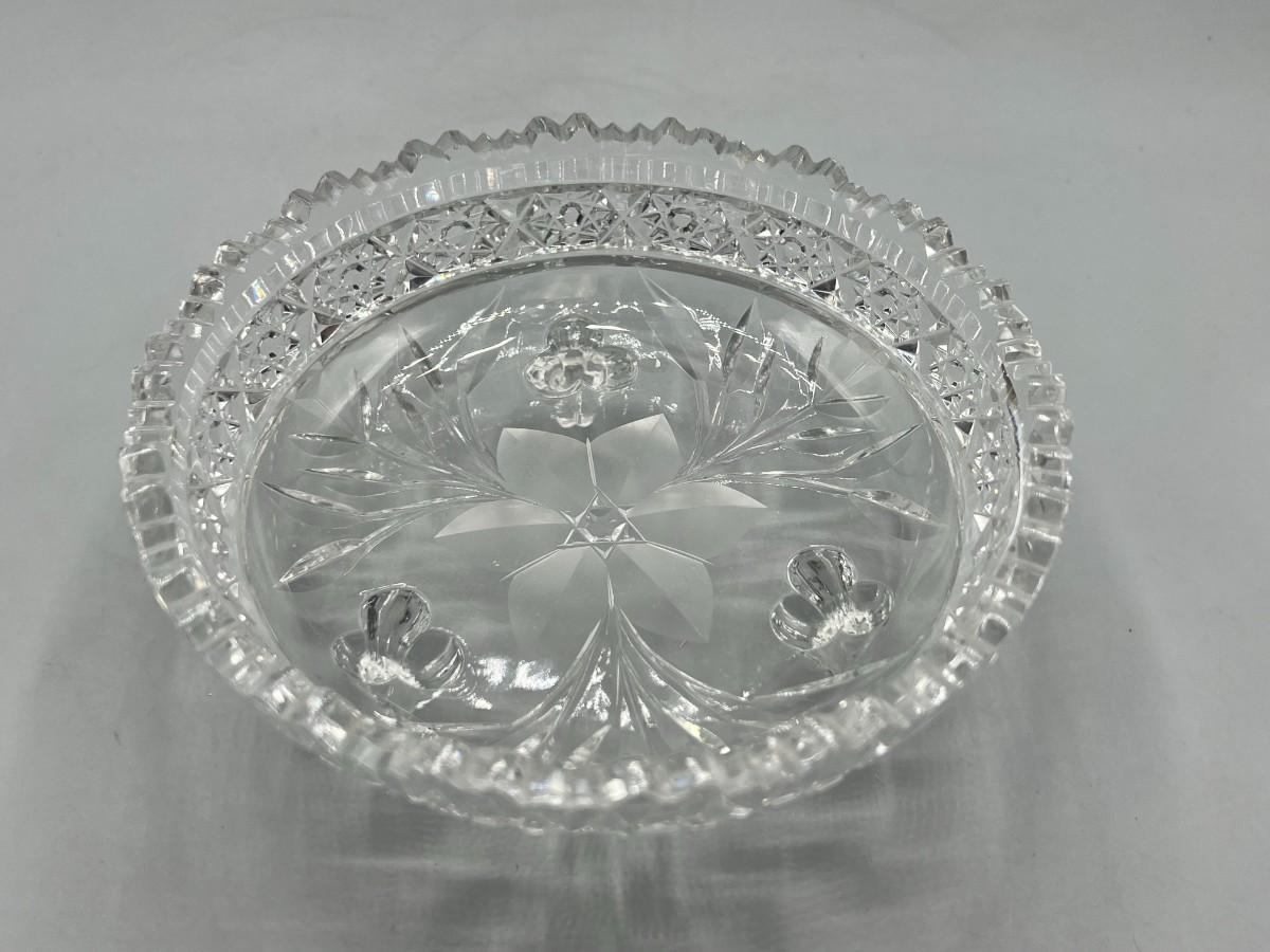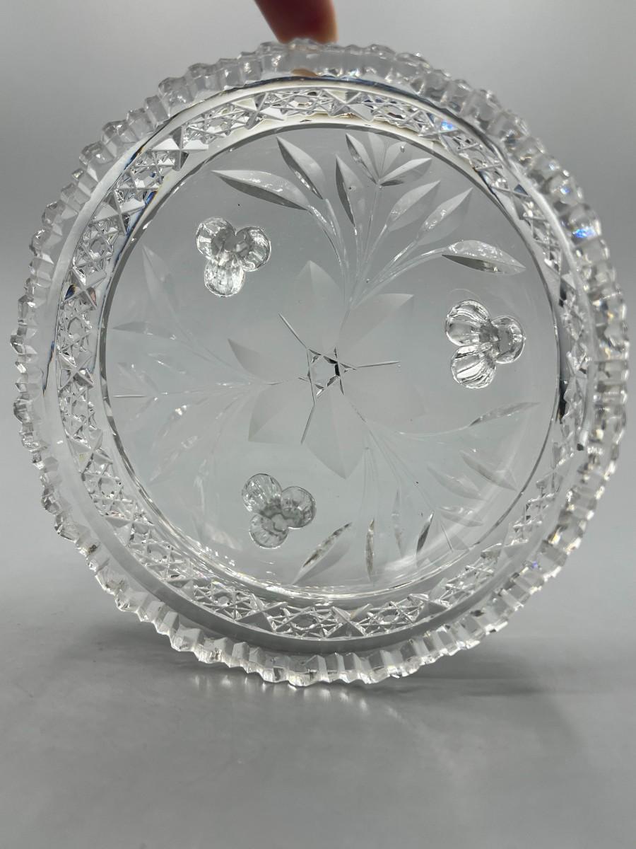 Vintage Etched Crystal Glass Sawtooth Compote Candy Dish