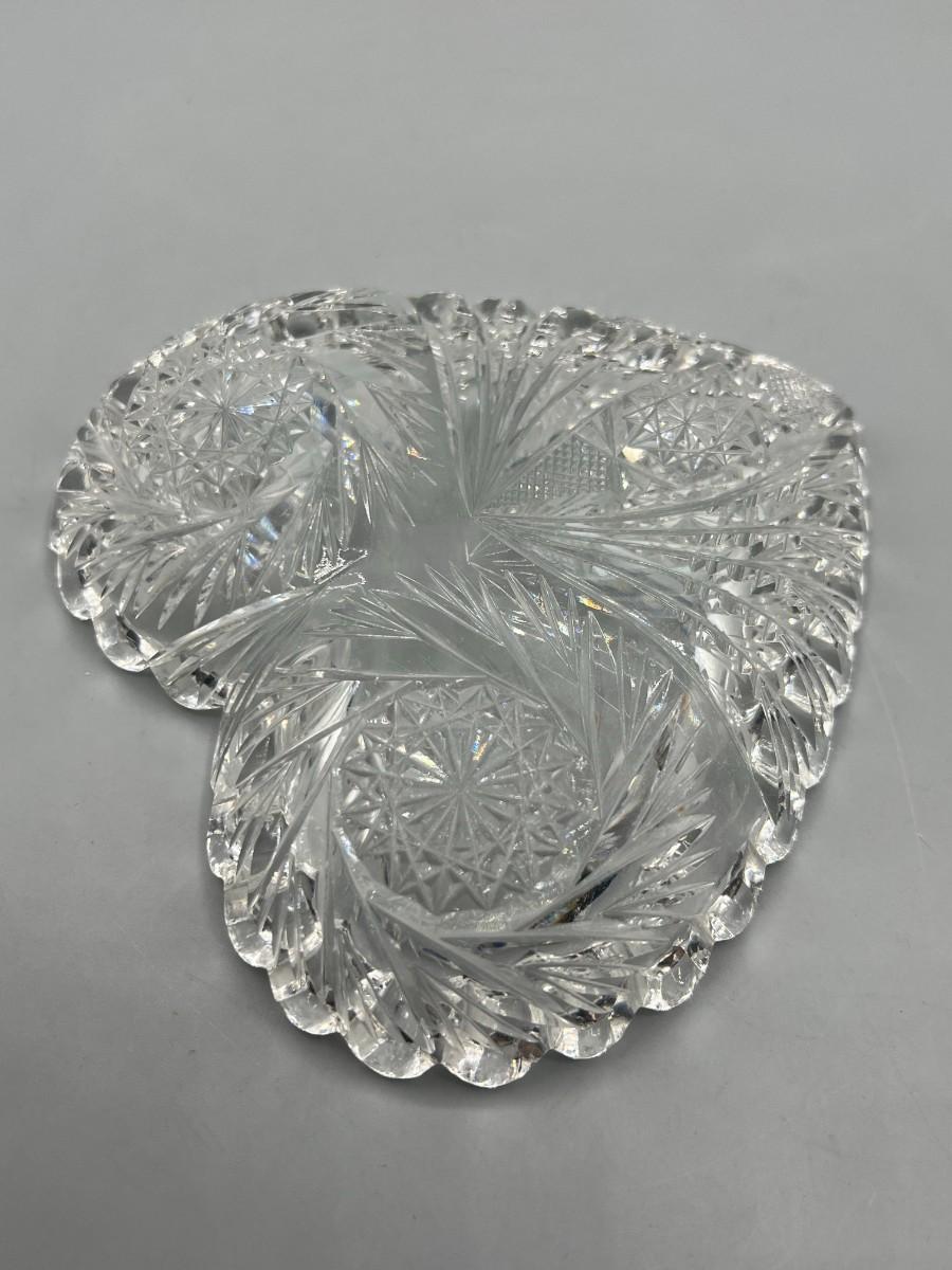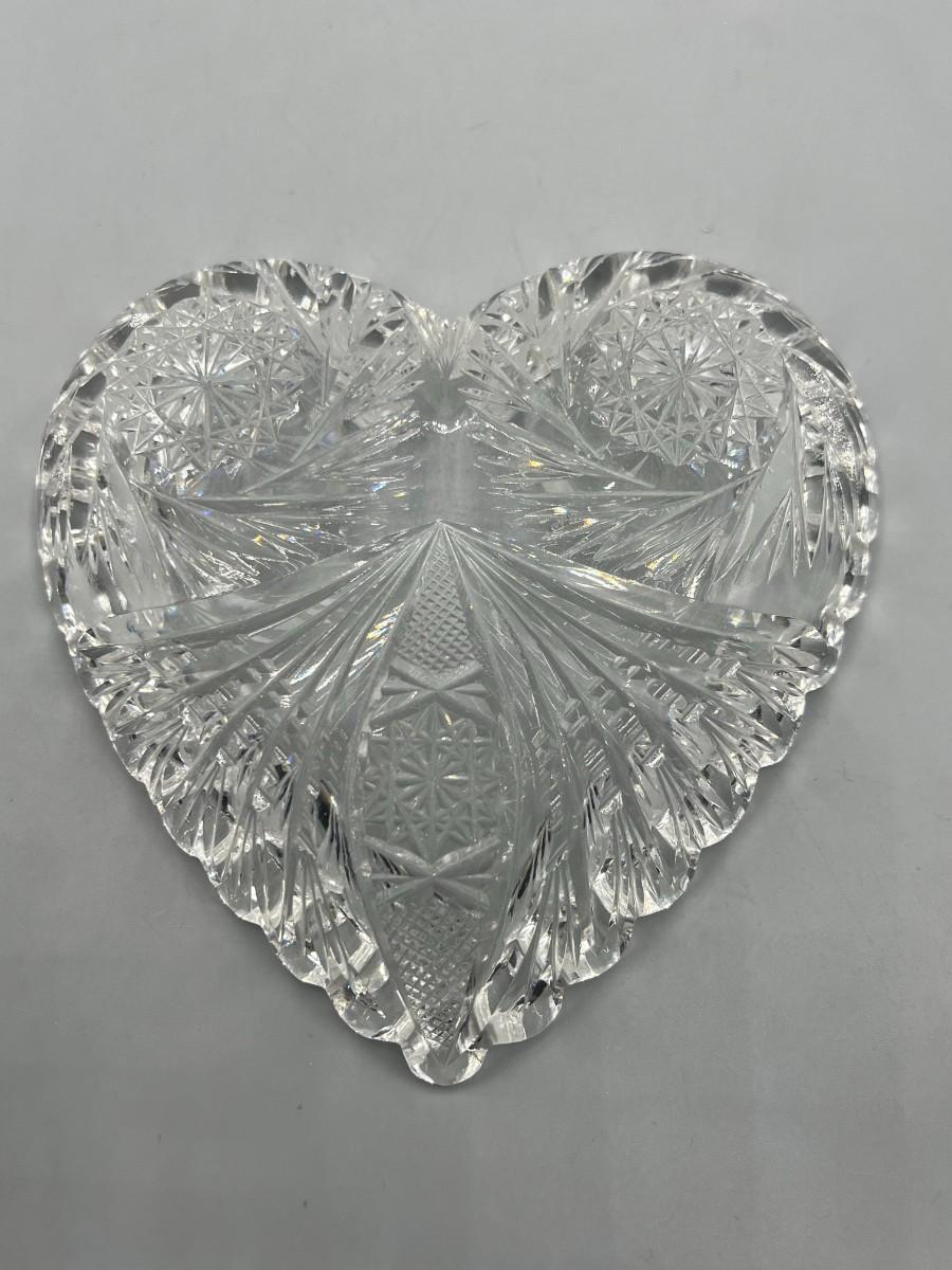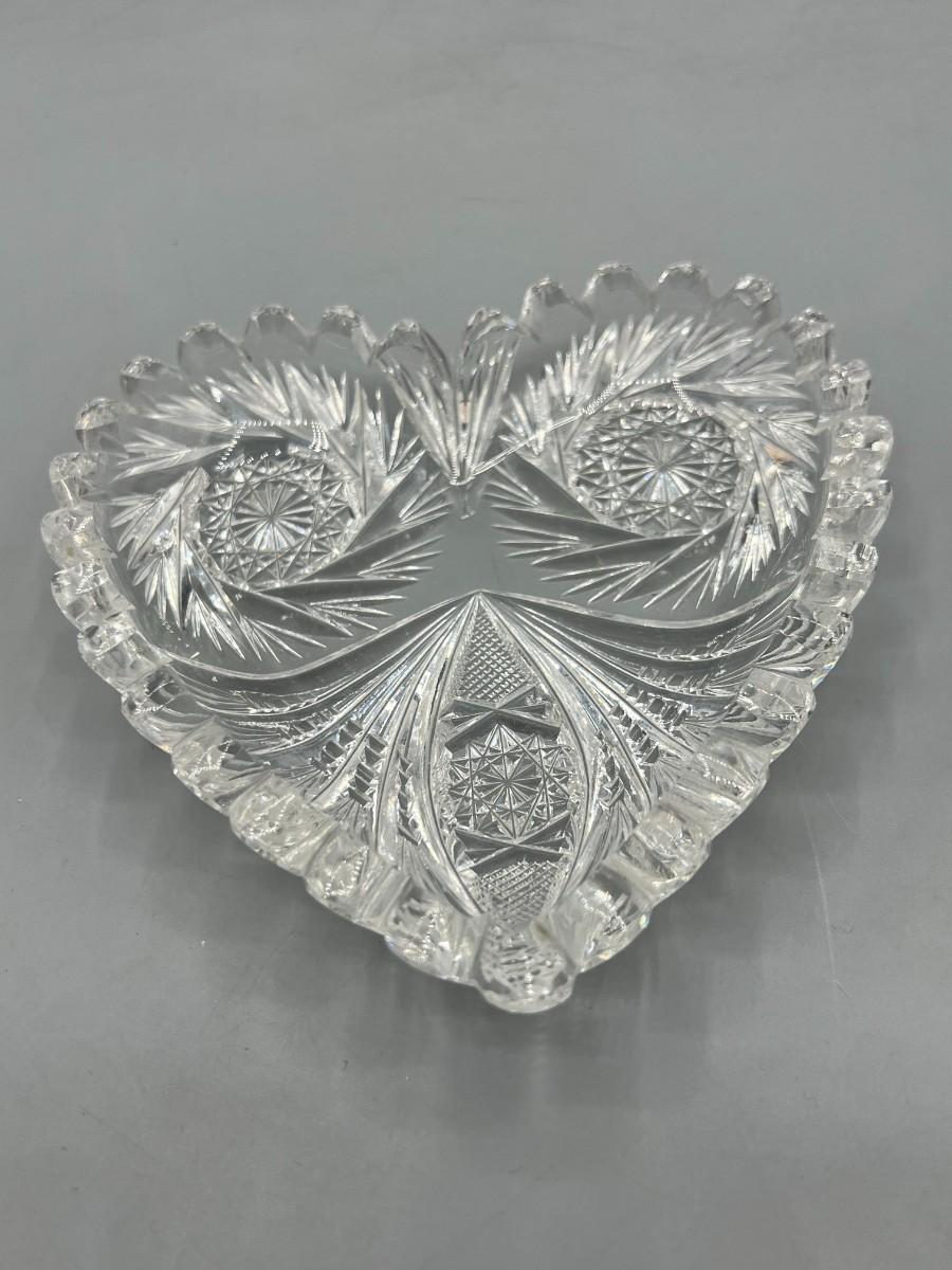 Vintage Crystal Glass Sawtooth Edge Swirl Geometric Designs Heart Shaped Dish