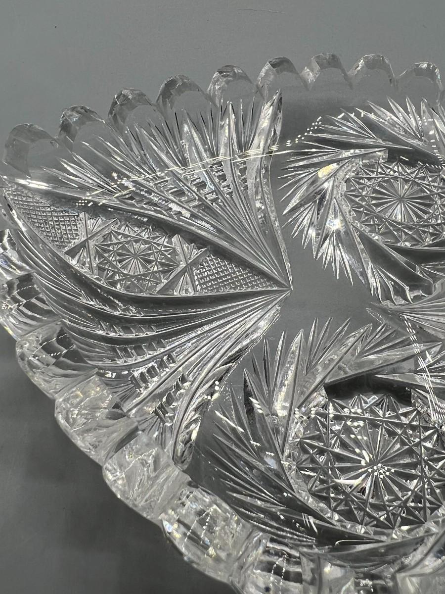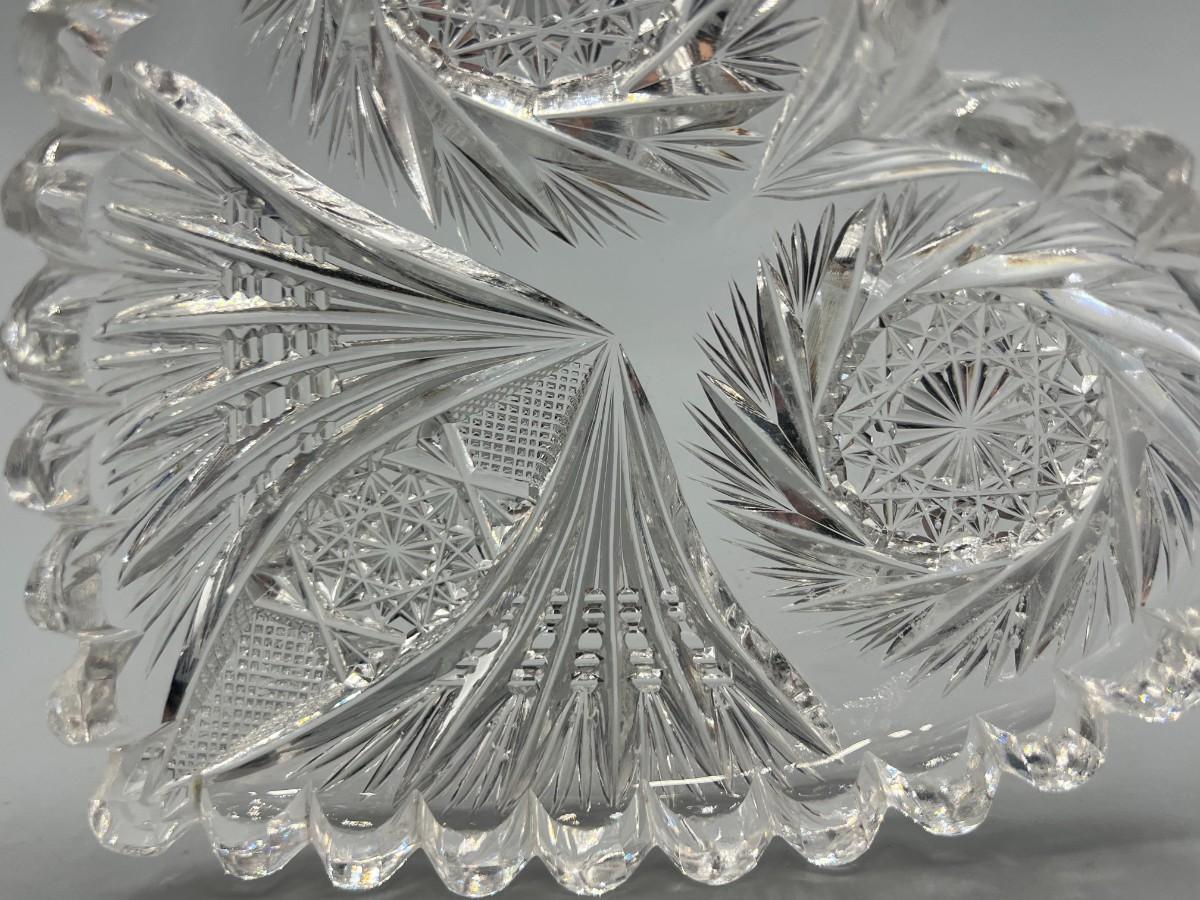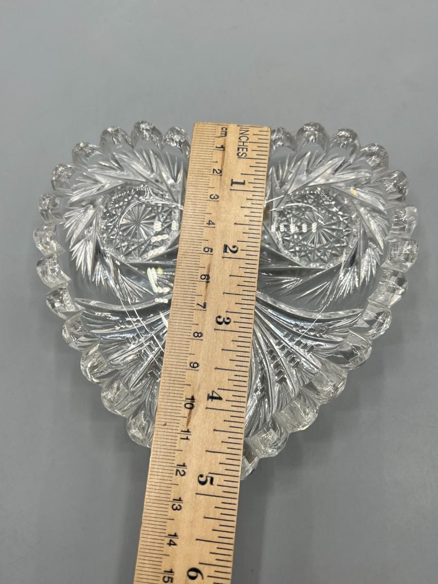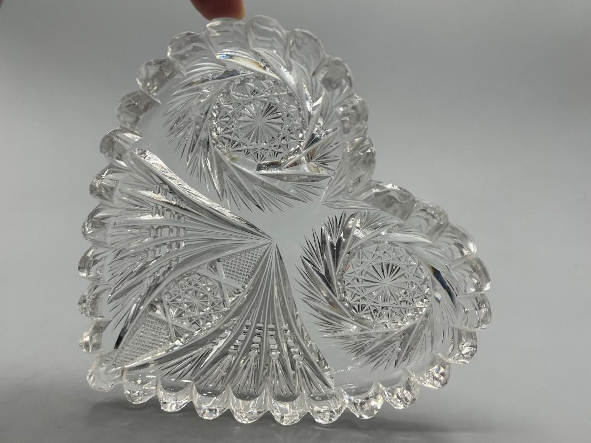Vintage Crystal Glass Sawtooth Edge Swirl Geometric Designs Heart Shaped Dish
