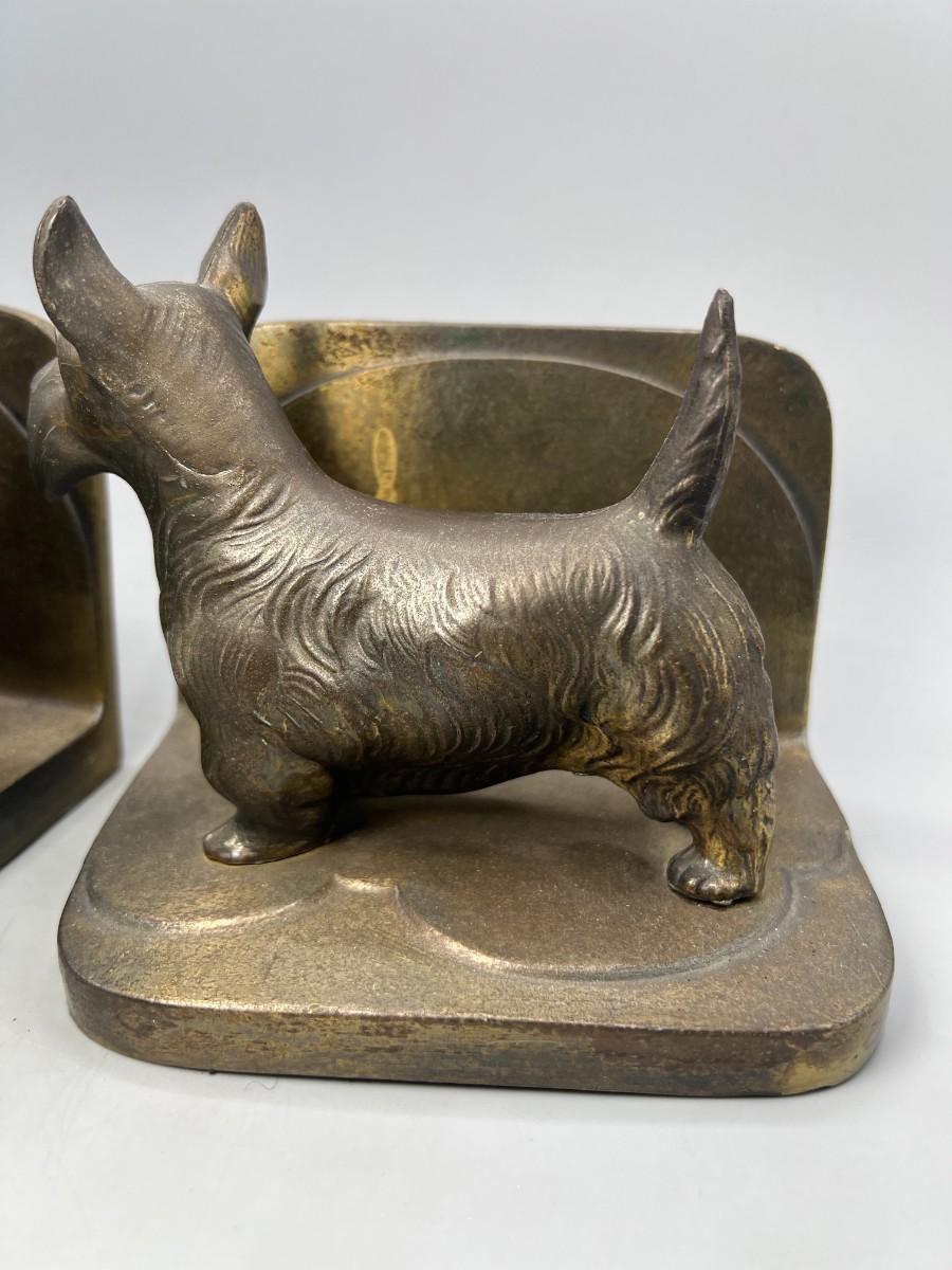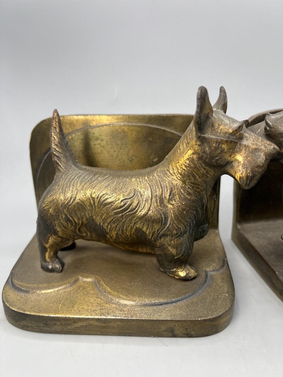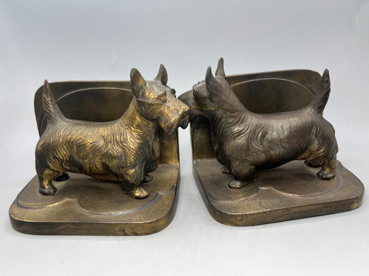 Pair of Vintage Art Deco Frankart Inc. Scottie Dog Cast Metal Brass Bookends