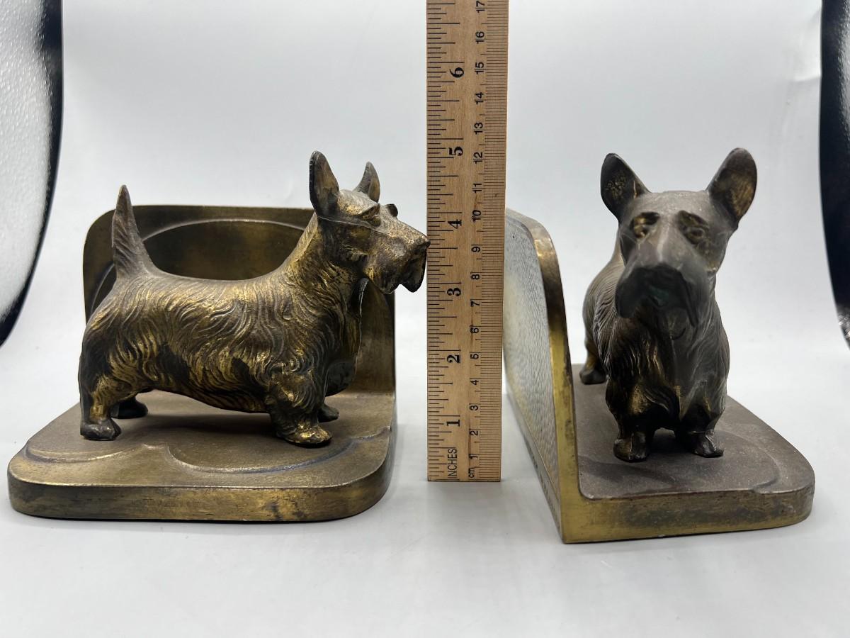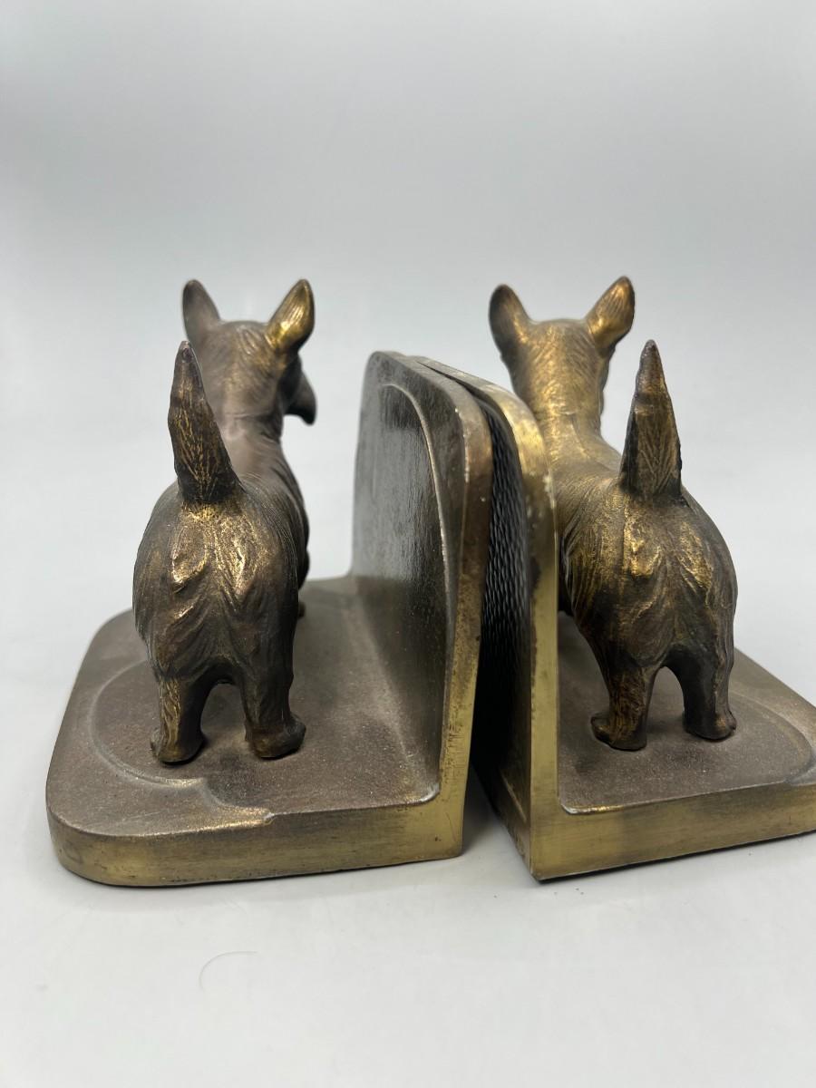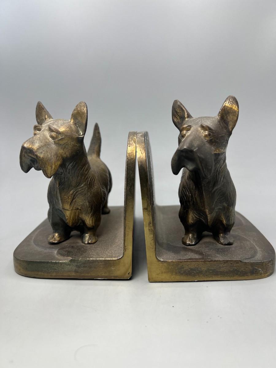 Pair of Vintage Art Deco Frankart Inc. Scottie Dog Cast Metal Brass Bookends