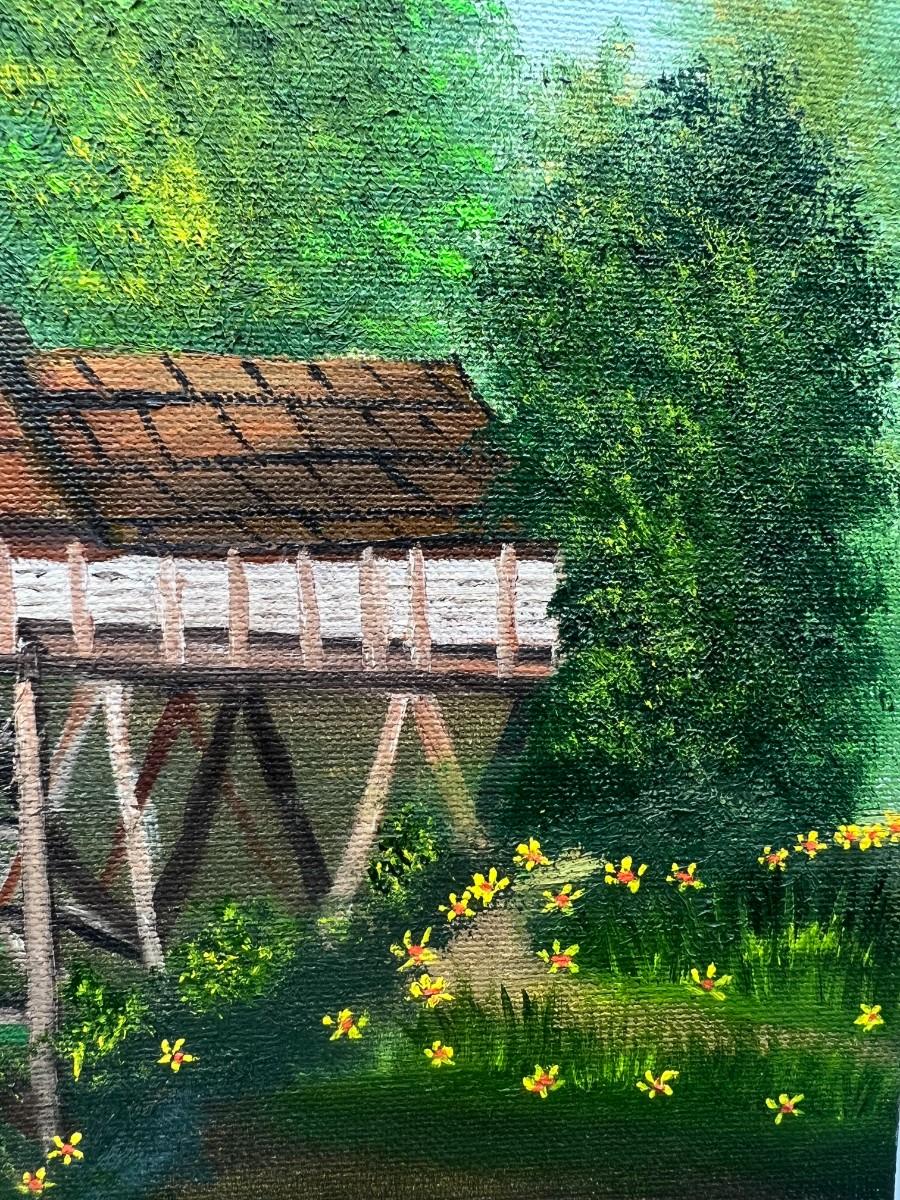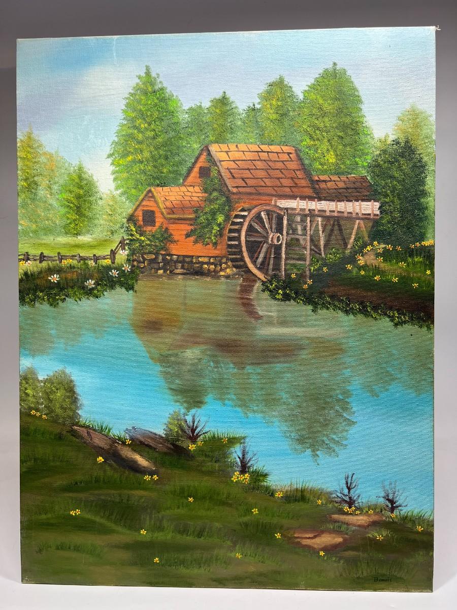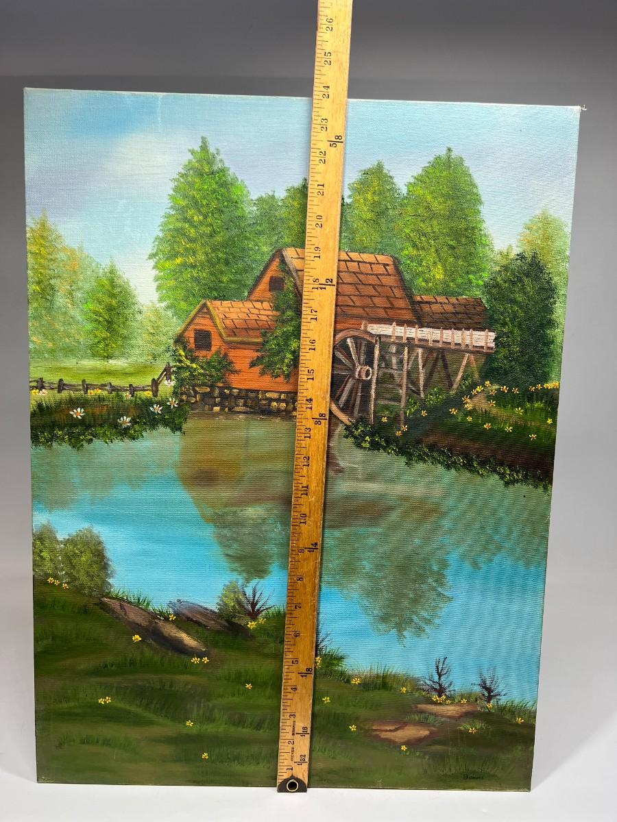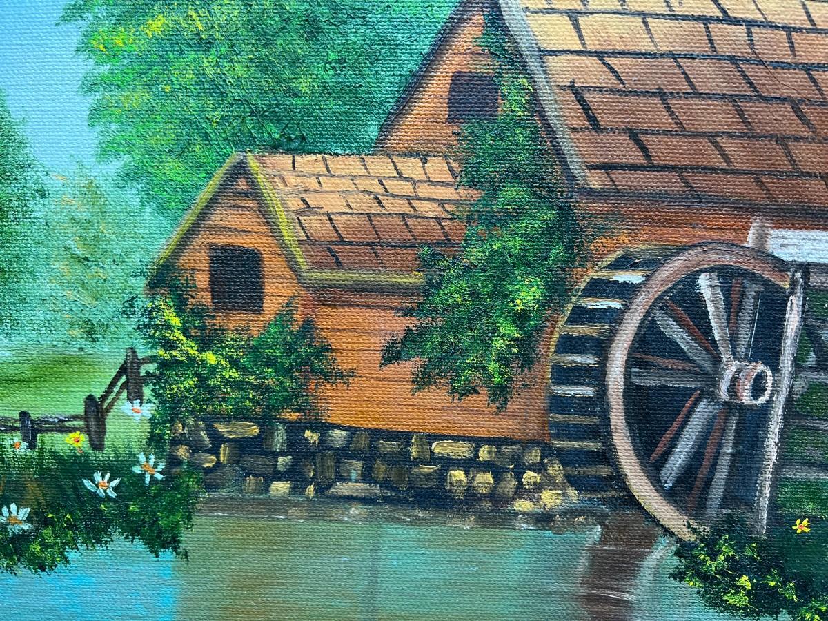 Retro Amateur Artist Water Mill Cottagecore Scenery Landscape Painting