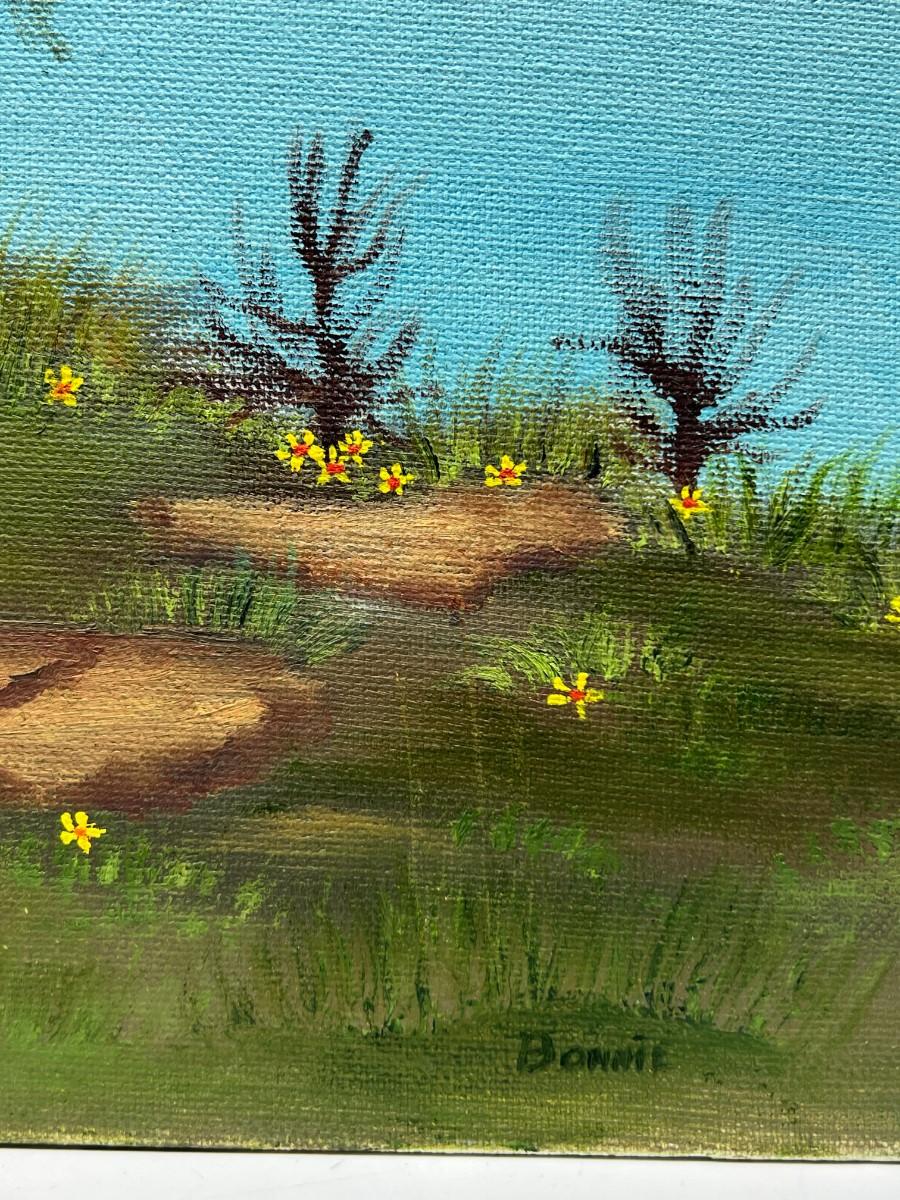 There is no significant damage to the canvas and is in overall good collectible or displayable condition. Check pictures for more details and for sizing.