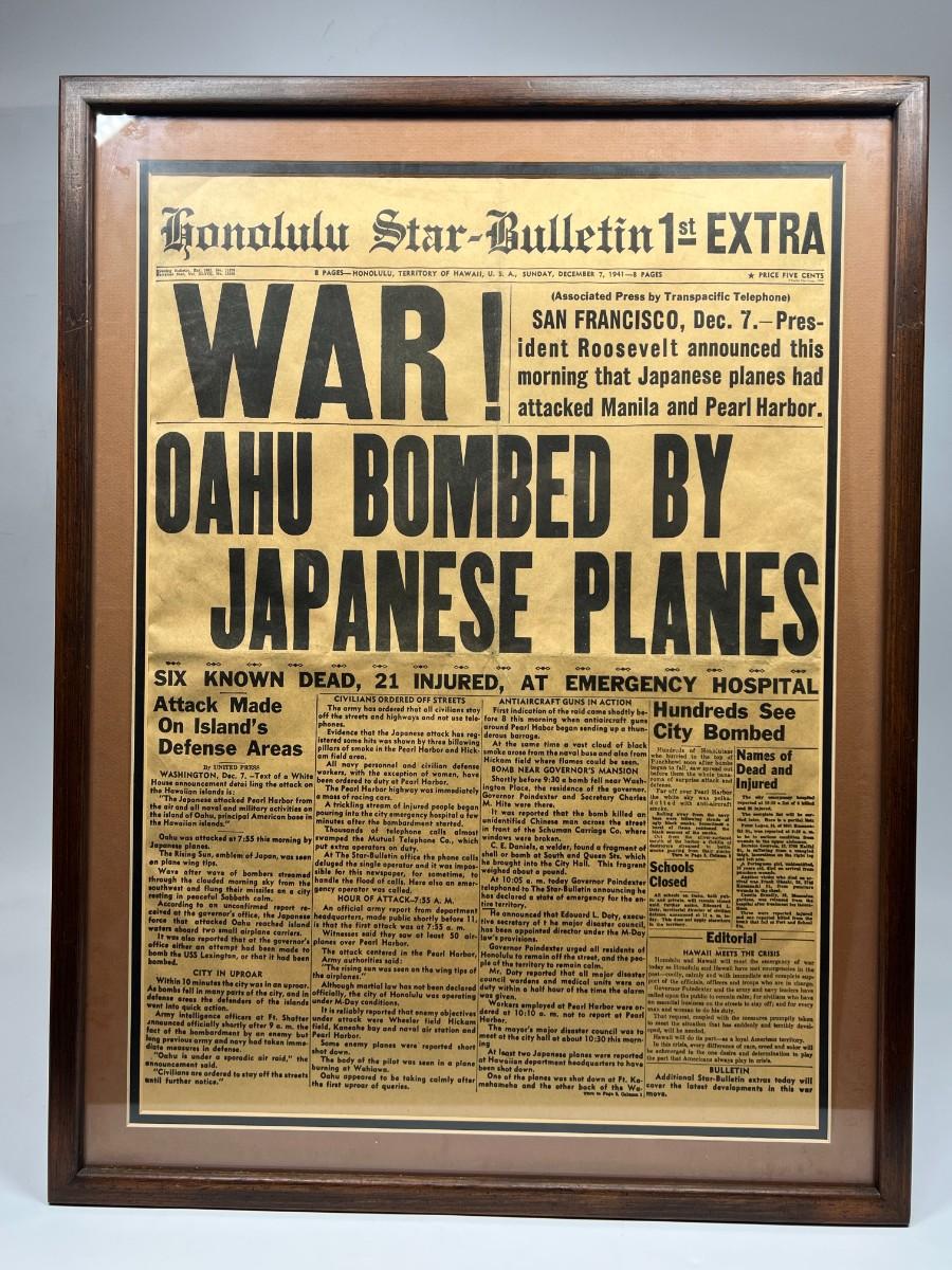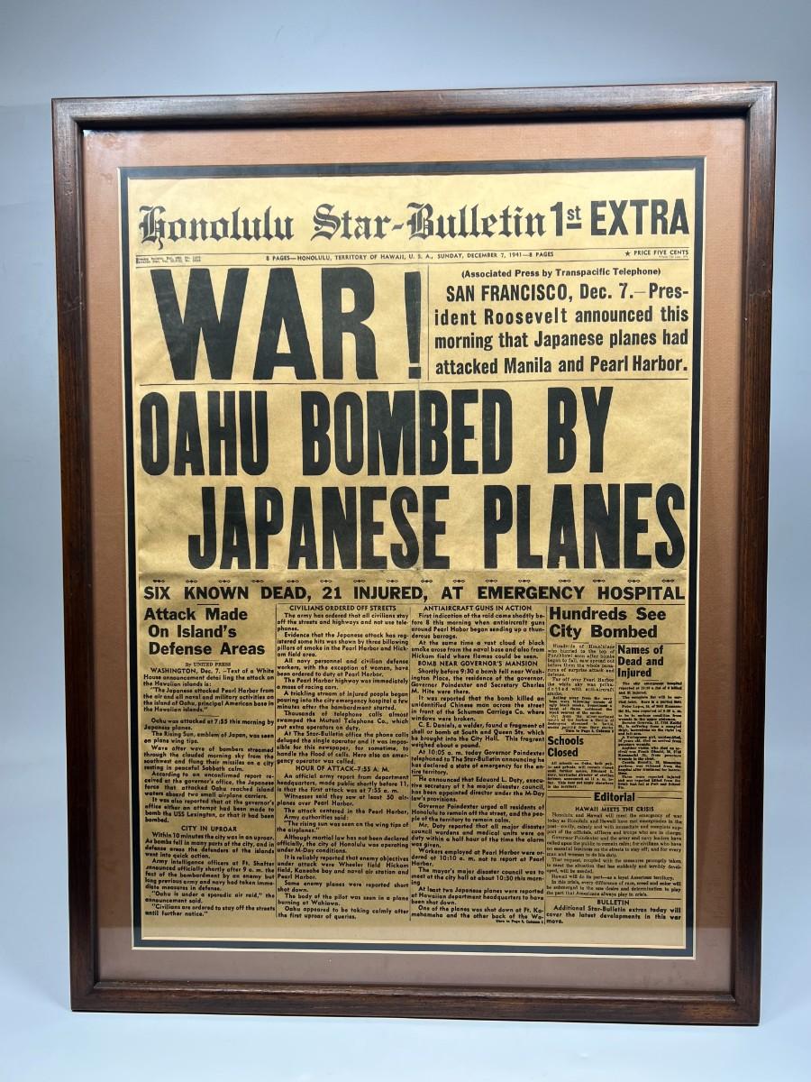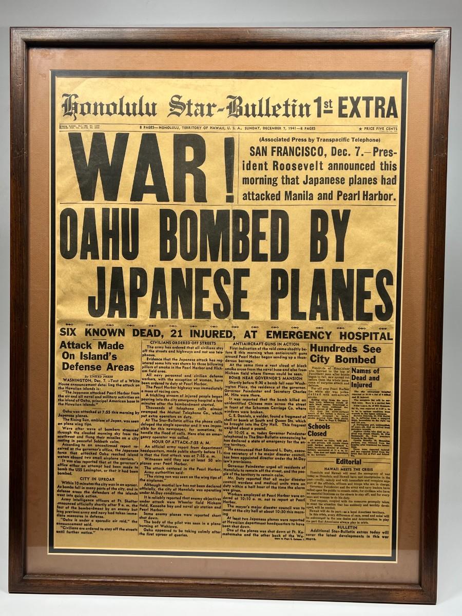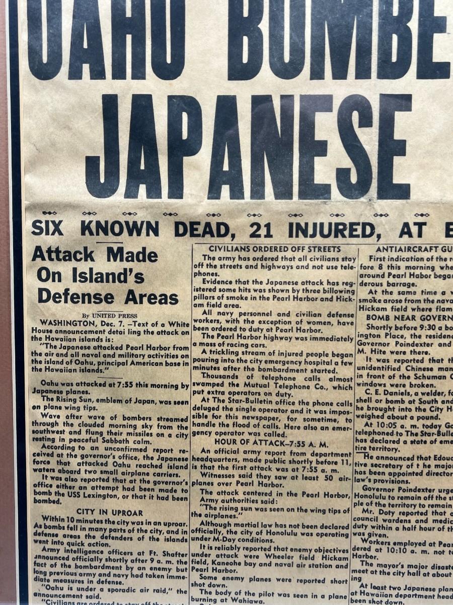 Vintage Honolulu Star Bulletin Oahu Bombed by Japanese Planes Front Page Newspaper Article