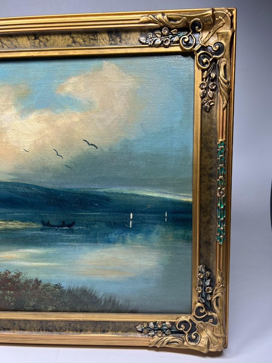 Vintage Oil Painting Impressionist Landscape Nature Coast Soft Scenery in Art Deco Style Frame