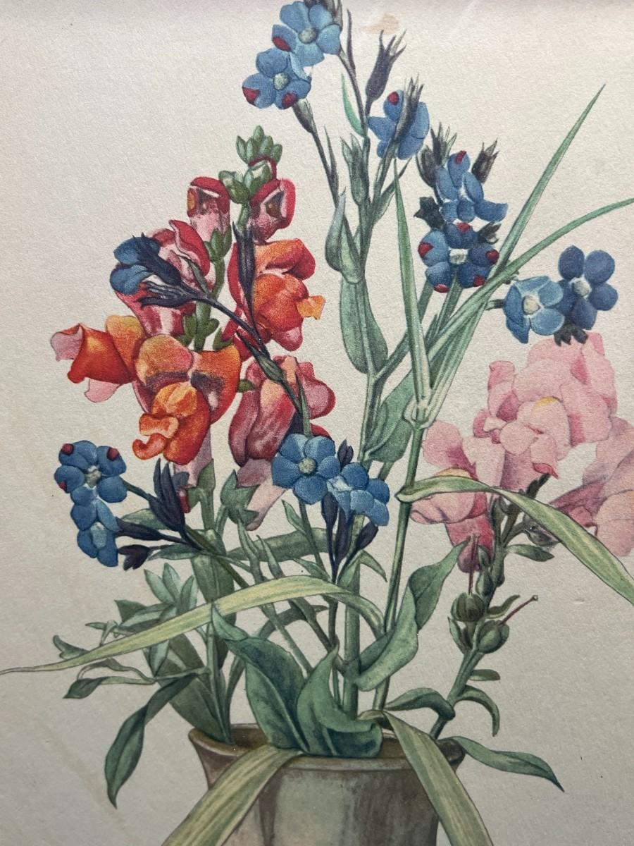 Retro Laurence Perugini Flower Bouquet Floral Painting Framed Color Art Print