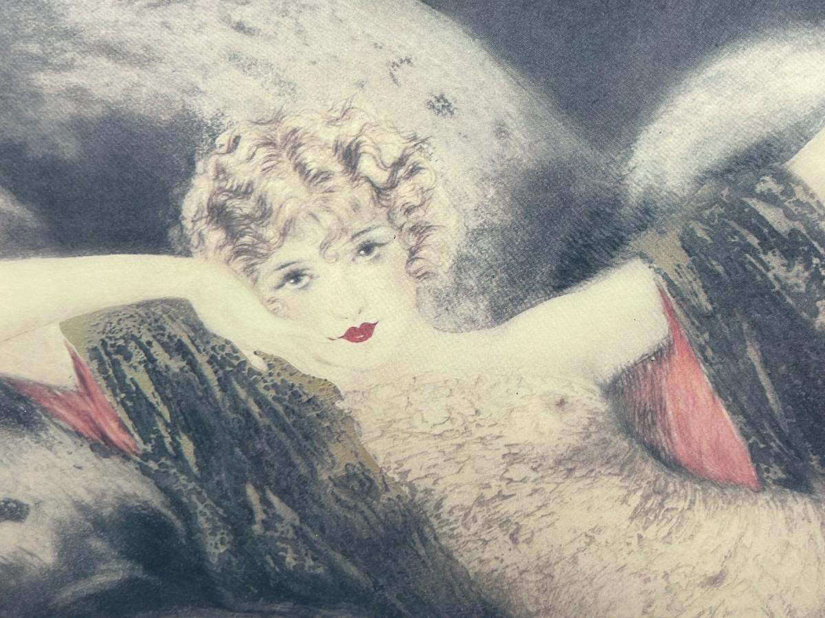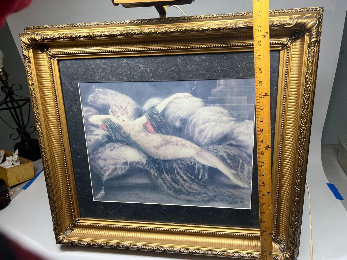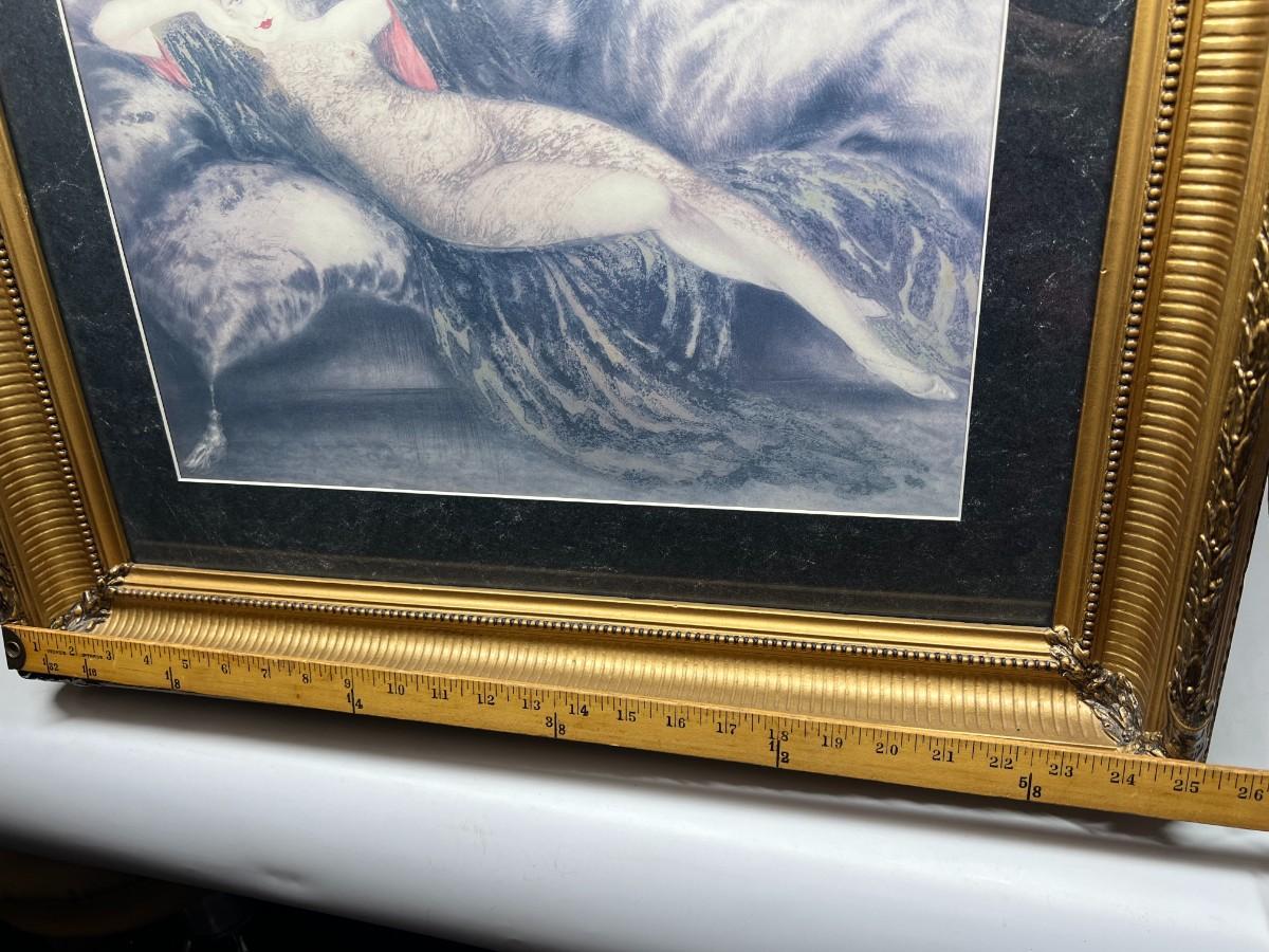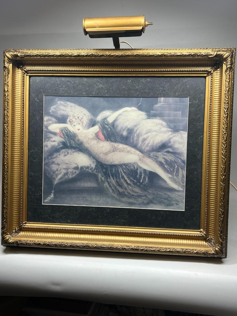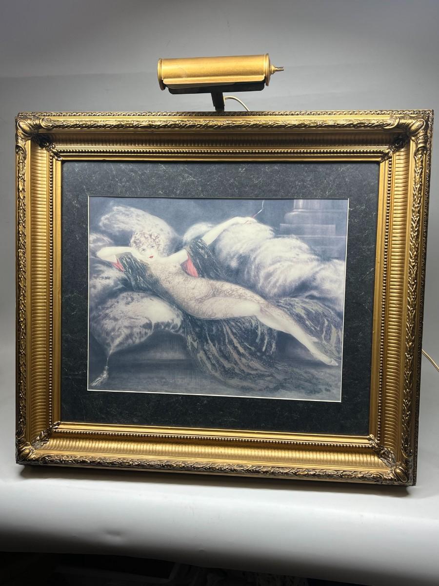 Vintage Art Print Louis Icart Meditation Golden Veil Art Deco Style Piece in Elegant Thick Frame