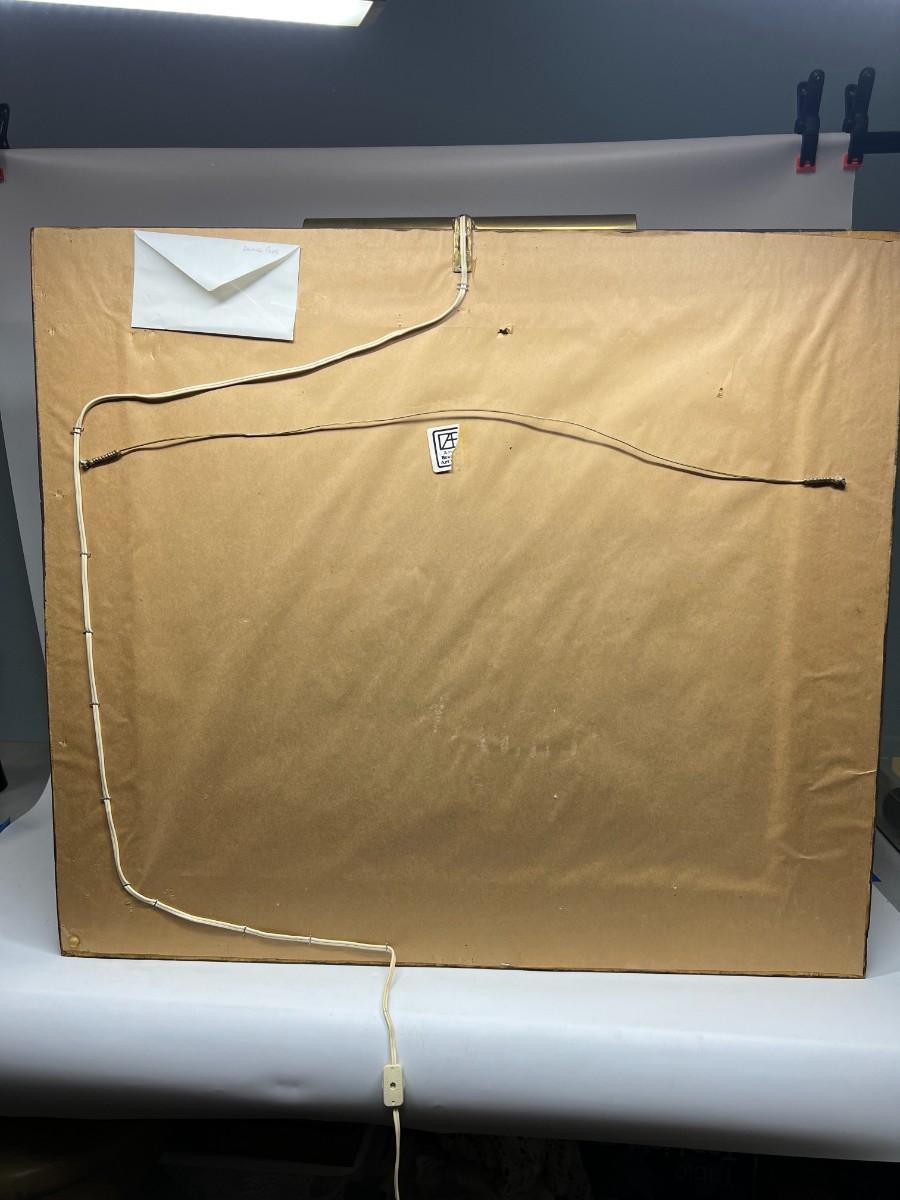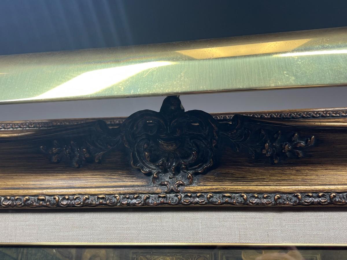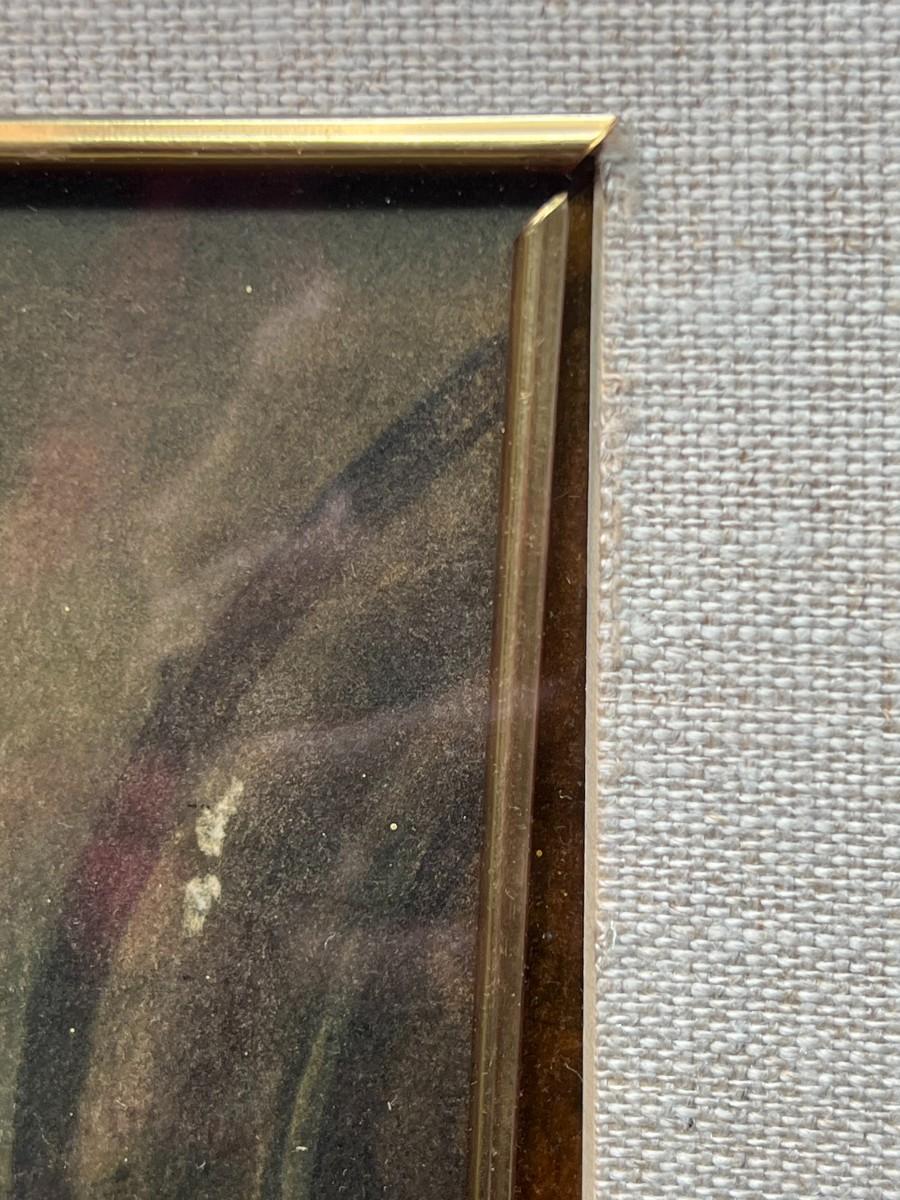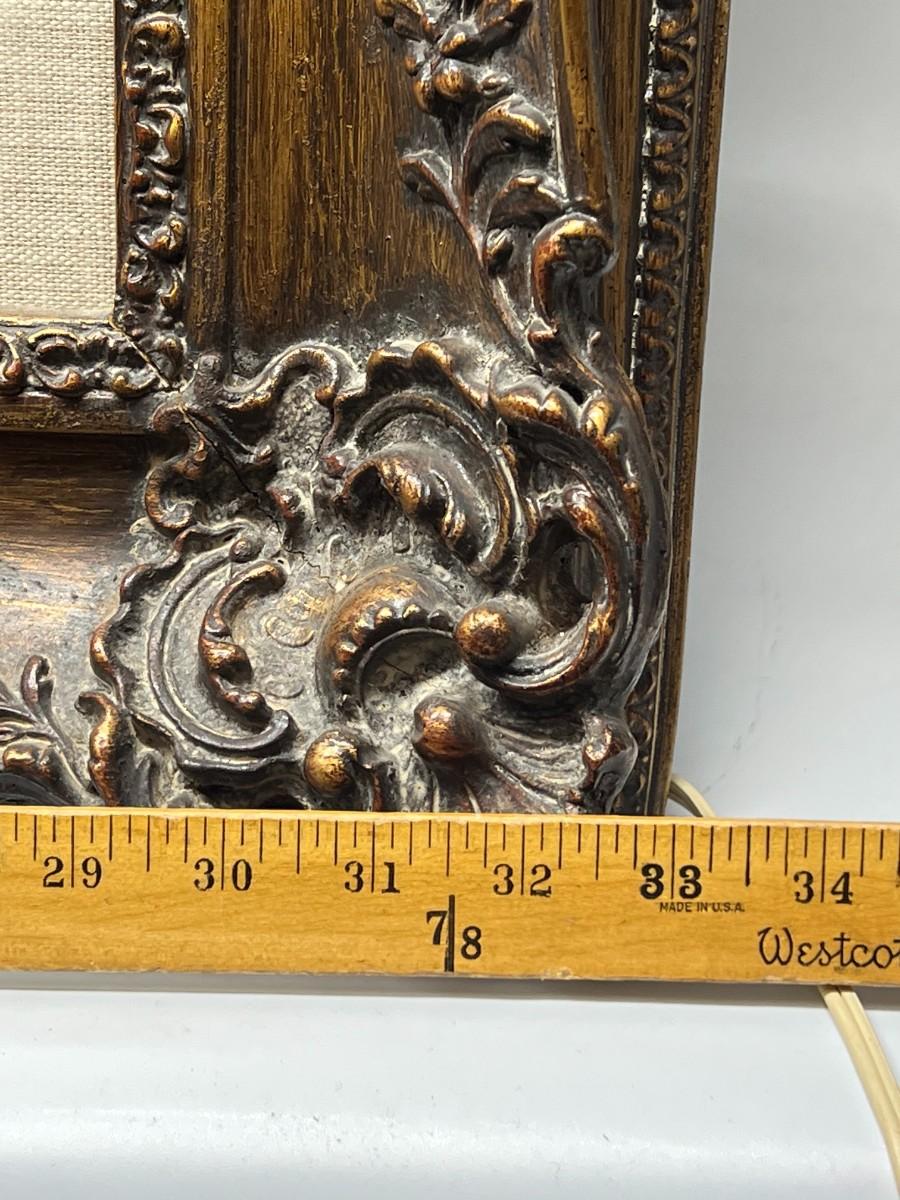 The gold framing inside the is breaking and falling on the right side, but there is no significant damage and is in overall good displayable or collectible condition. Check pictures for more details and for sizing.