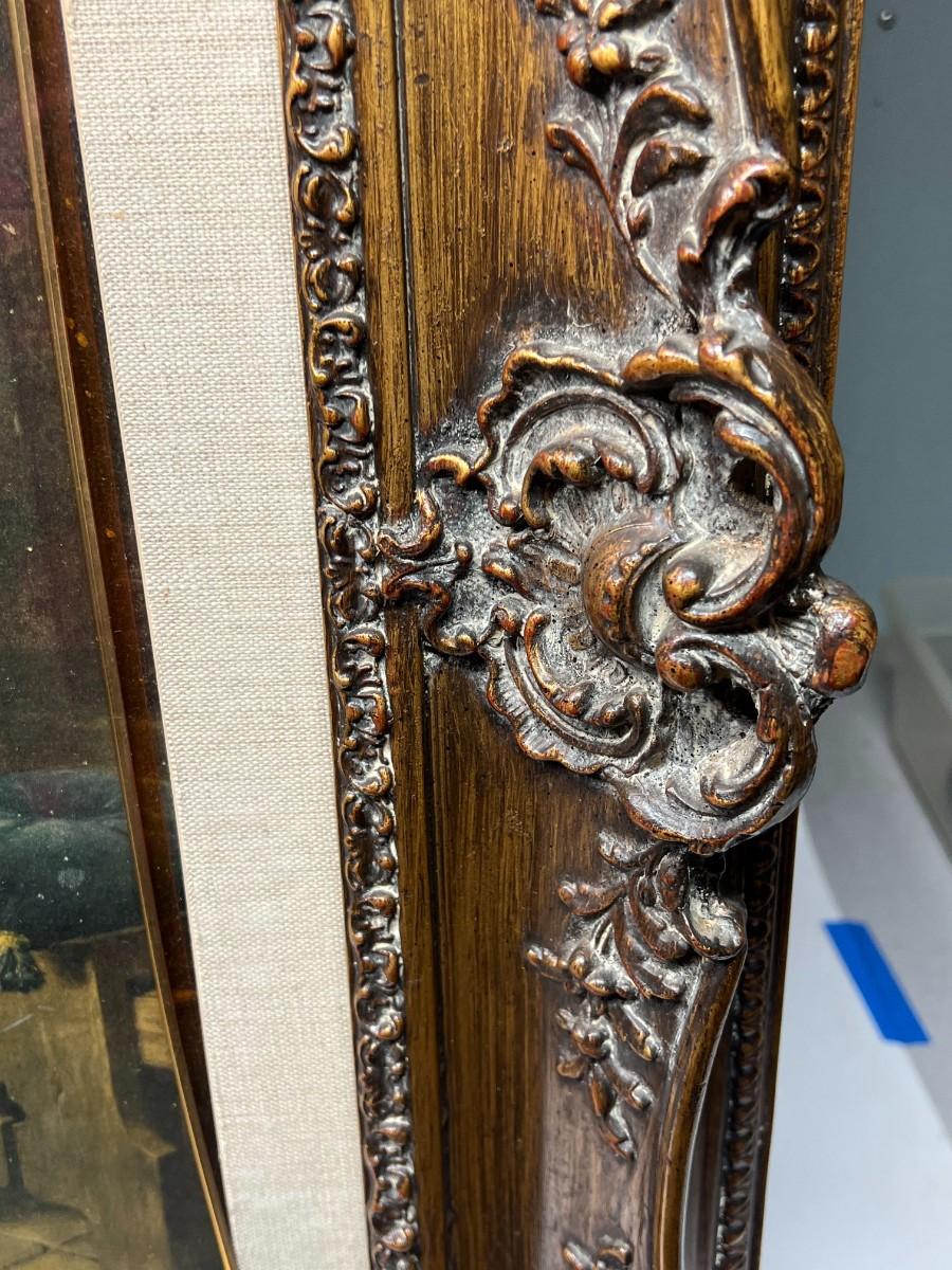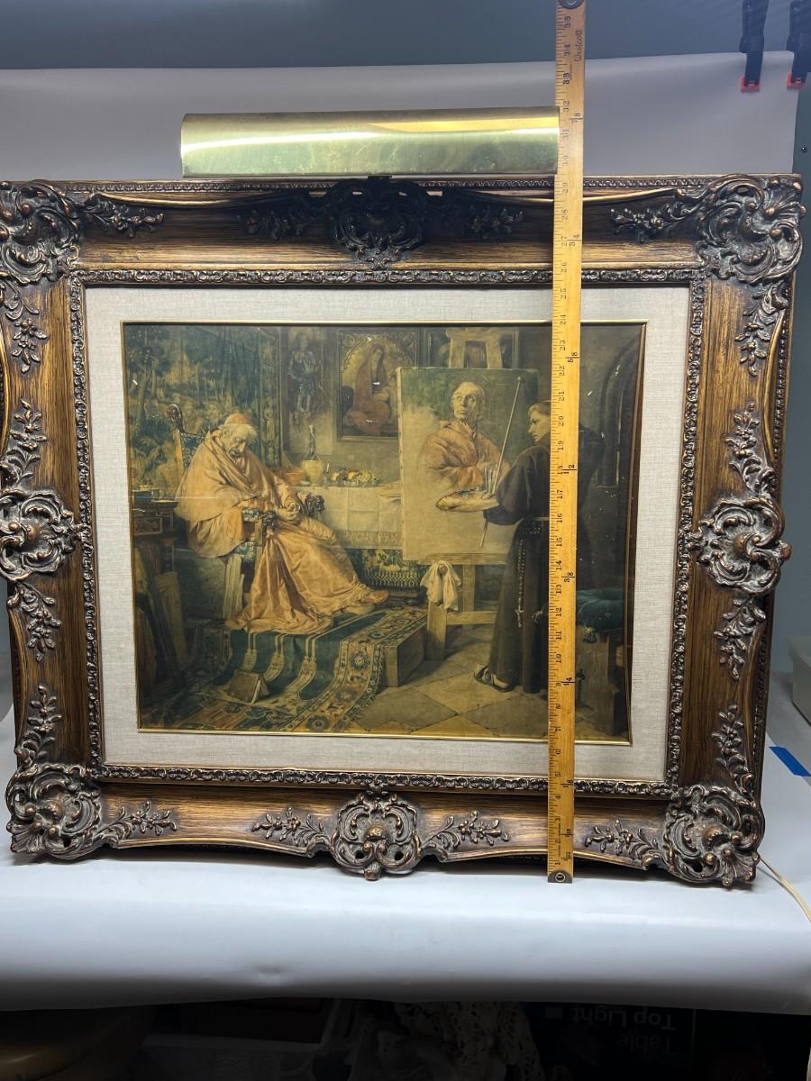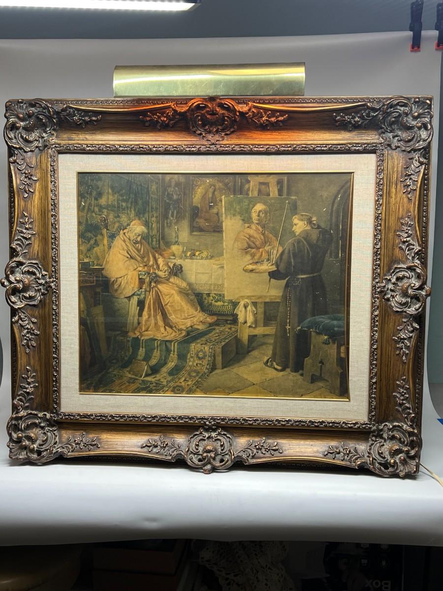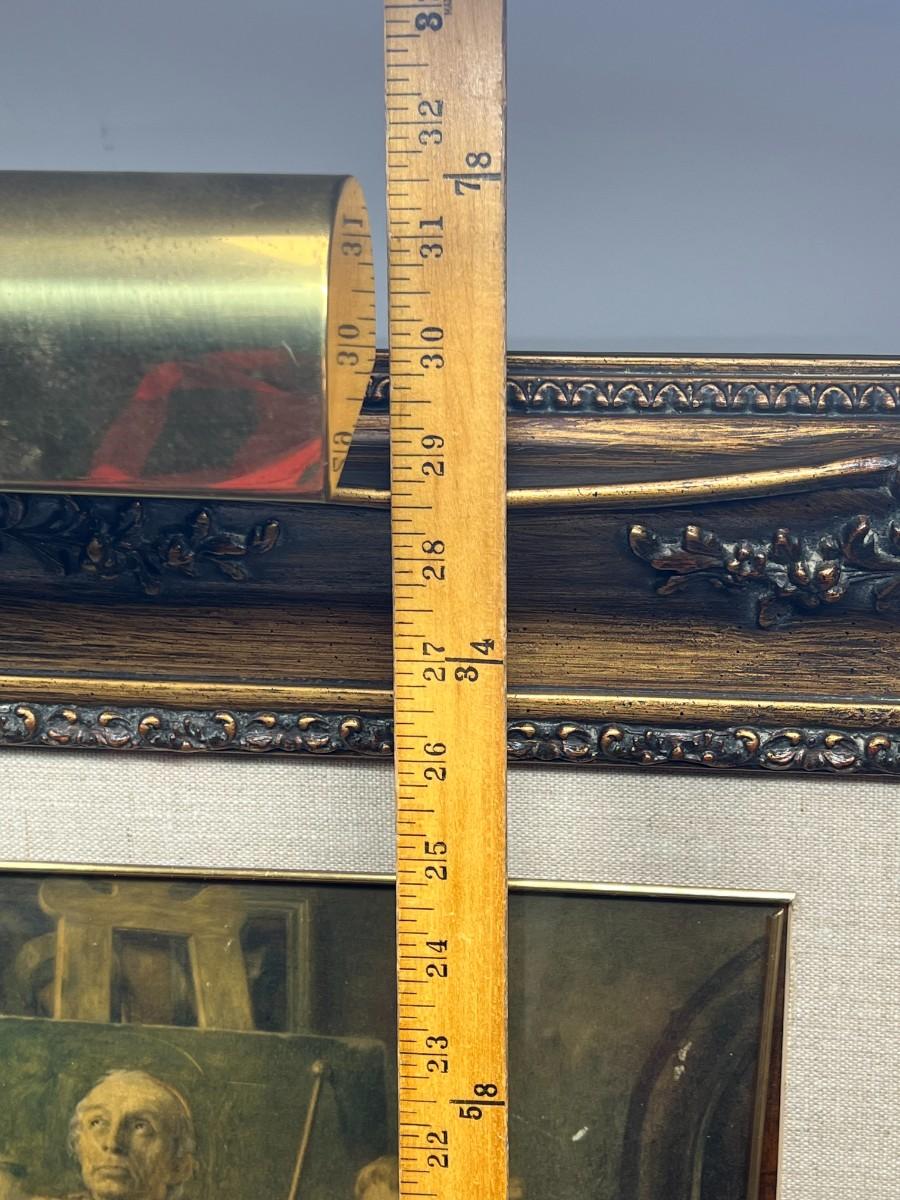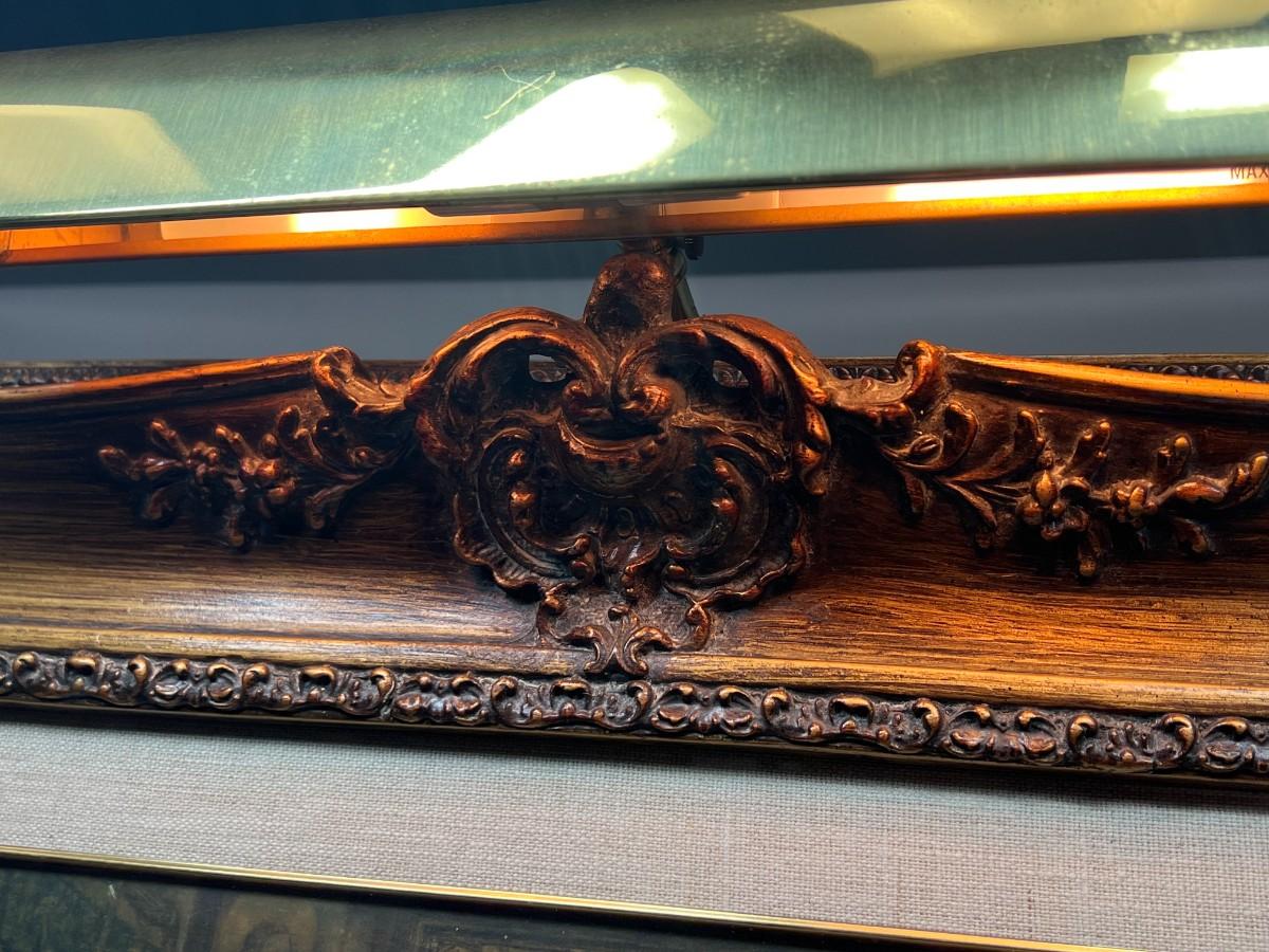 The gold framing inside the is breaking and falling on the right side, but there is no significant damage and is in overall good displayable or collectible condition. Check pictures for more details and for sizing.