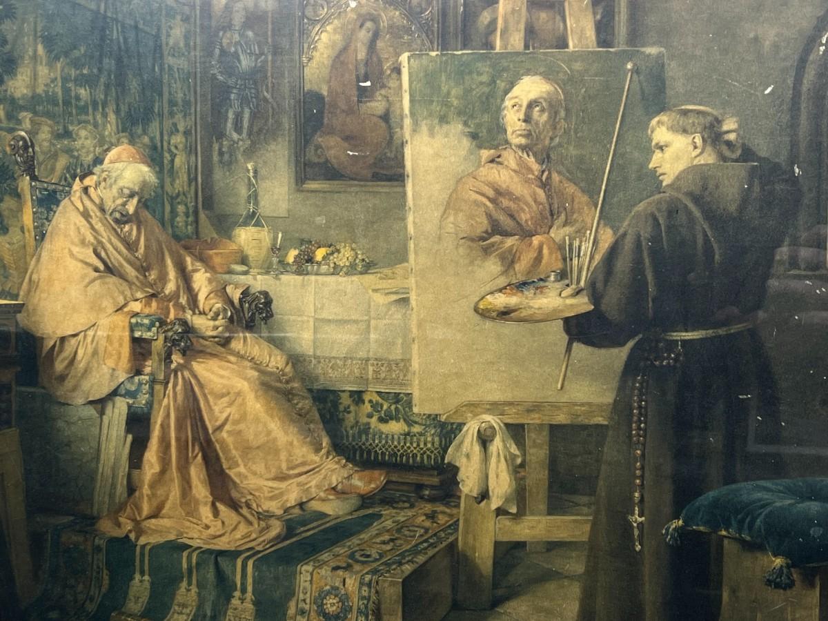 Vintage Art Print Portrait of a Cardinal Italian Painting by Raphael Sanzio da Urbino in Large Elegant Thick Frame