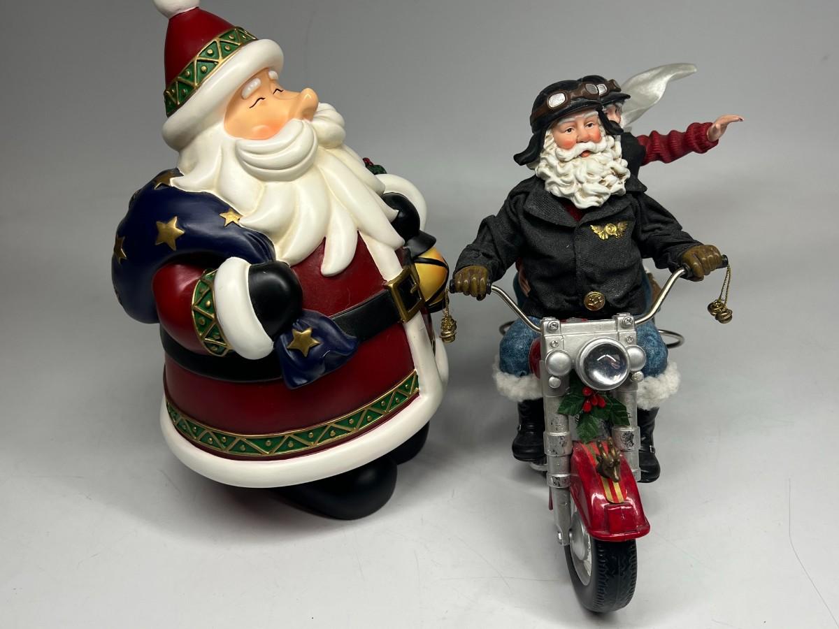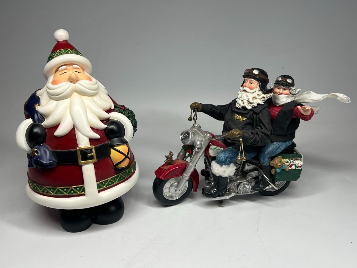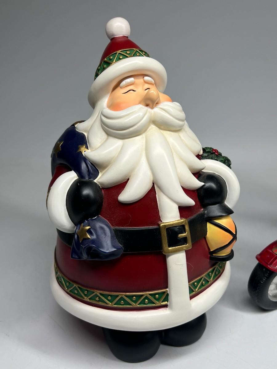 Chubby Jolly Cartoon Santa Claus & Motorcycle Riding Mr.and Mrs. Claus Holiday Christmas Decor Figurines