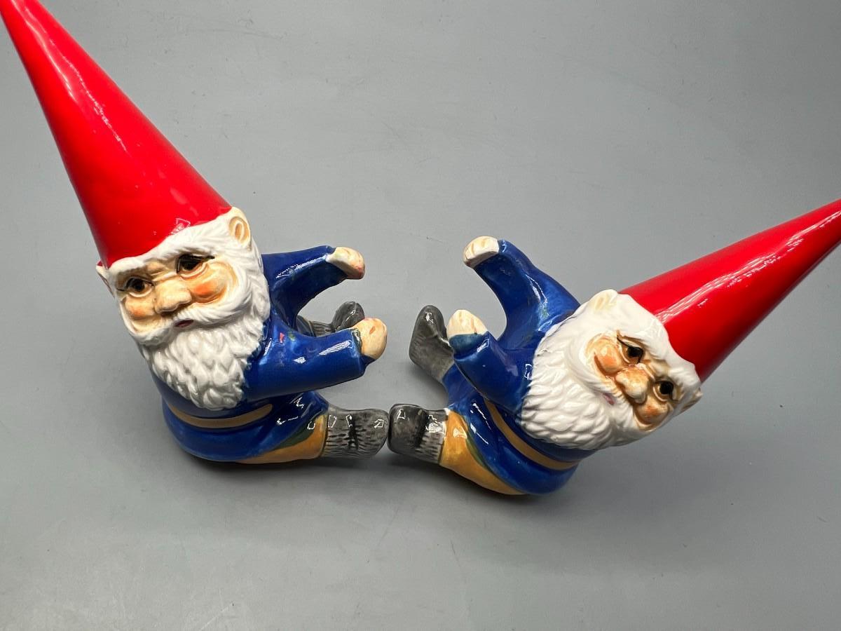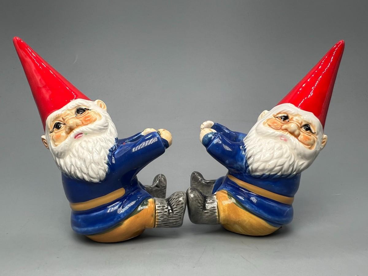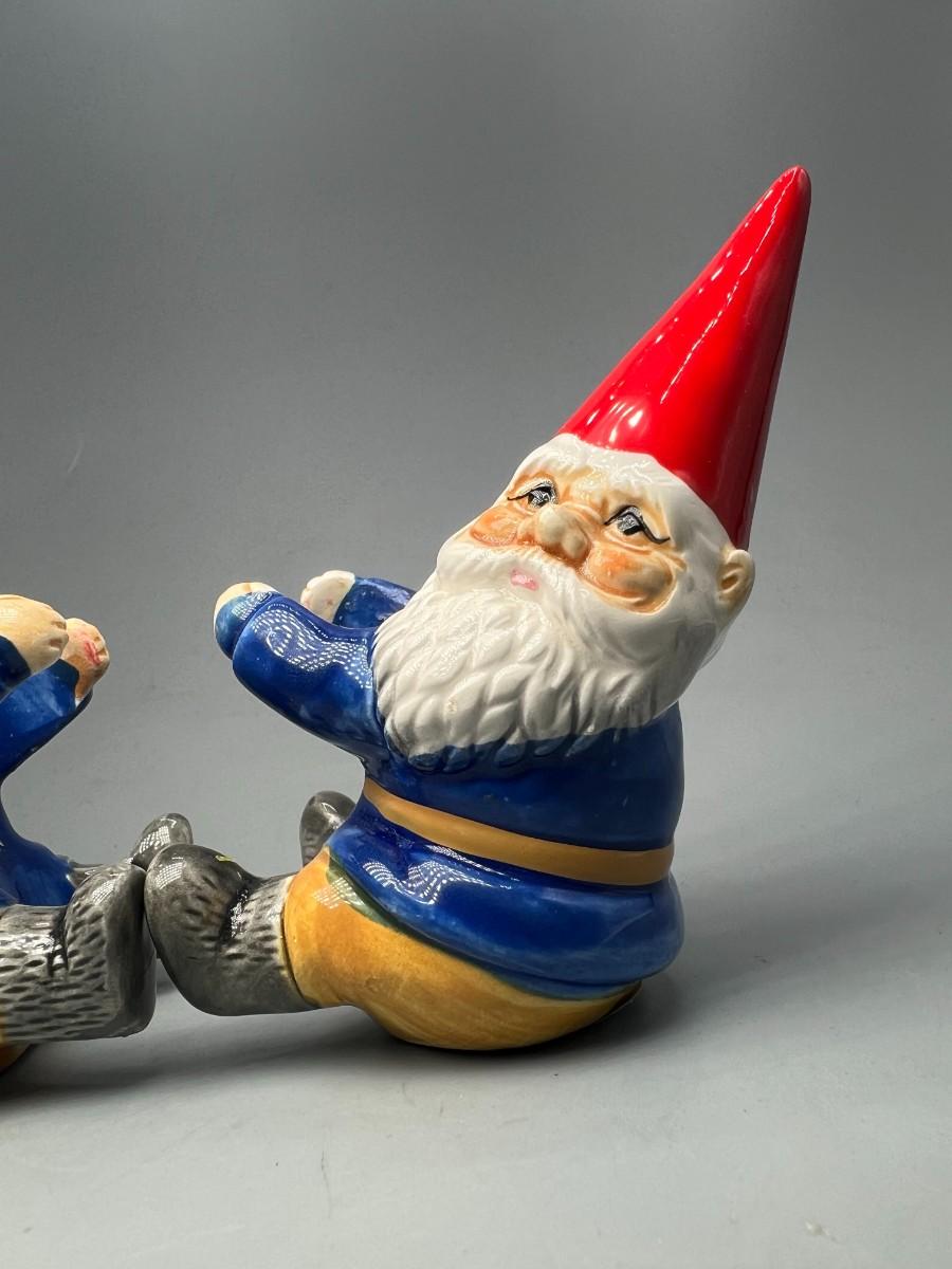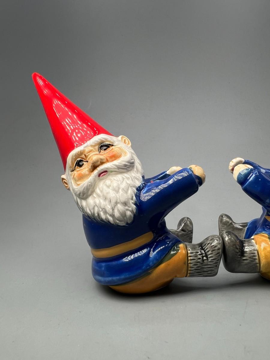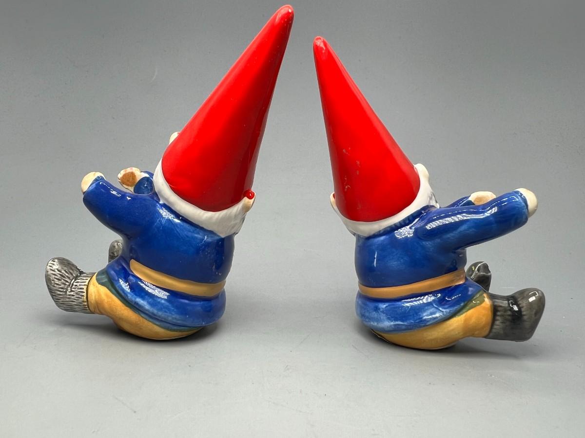 Pair of Vintage Unieboek B V David the Gnome porcelain Candle Holder Huggers Collectible