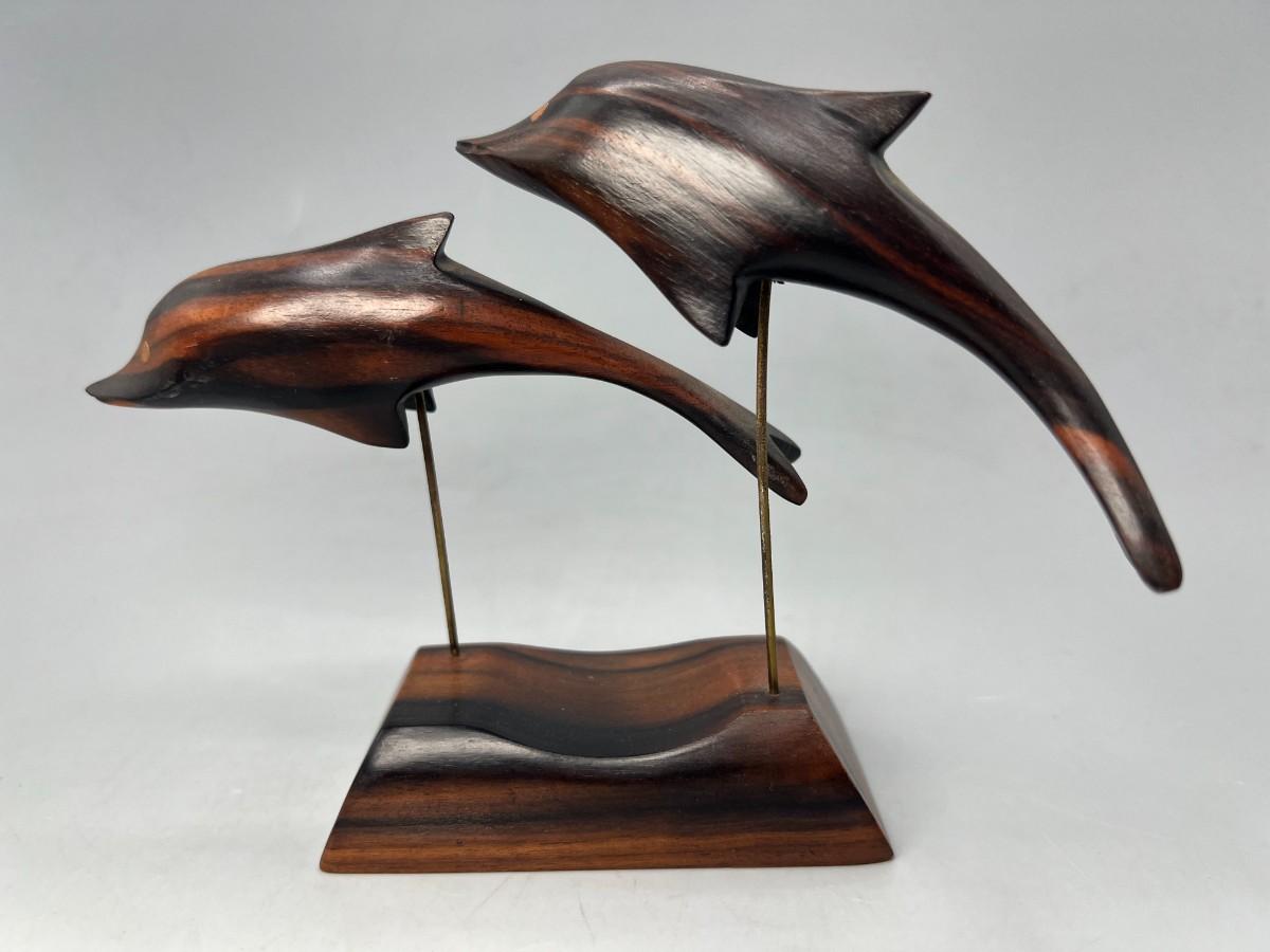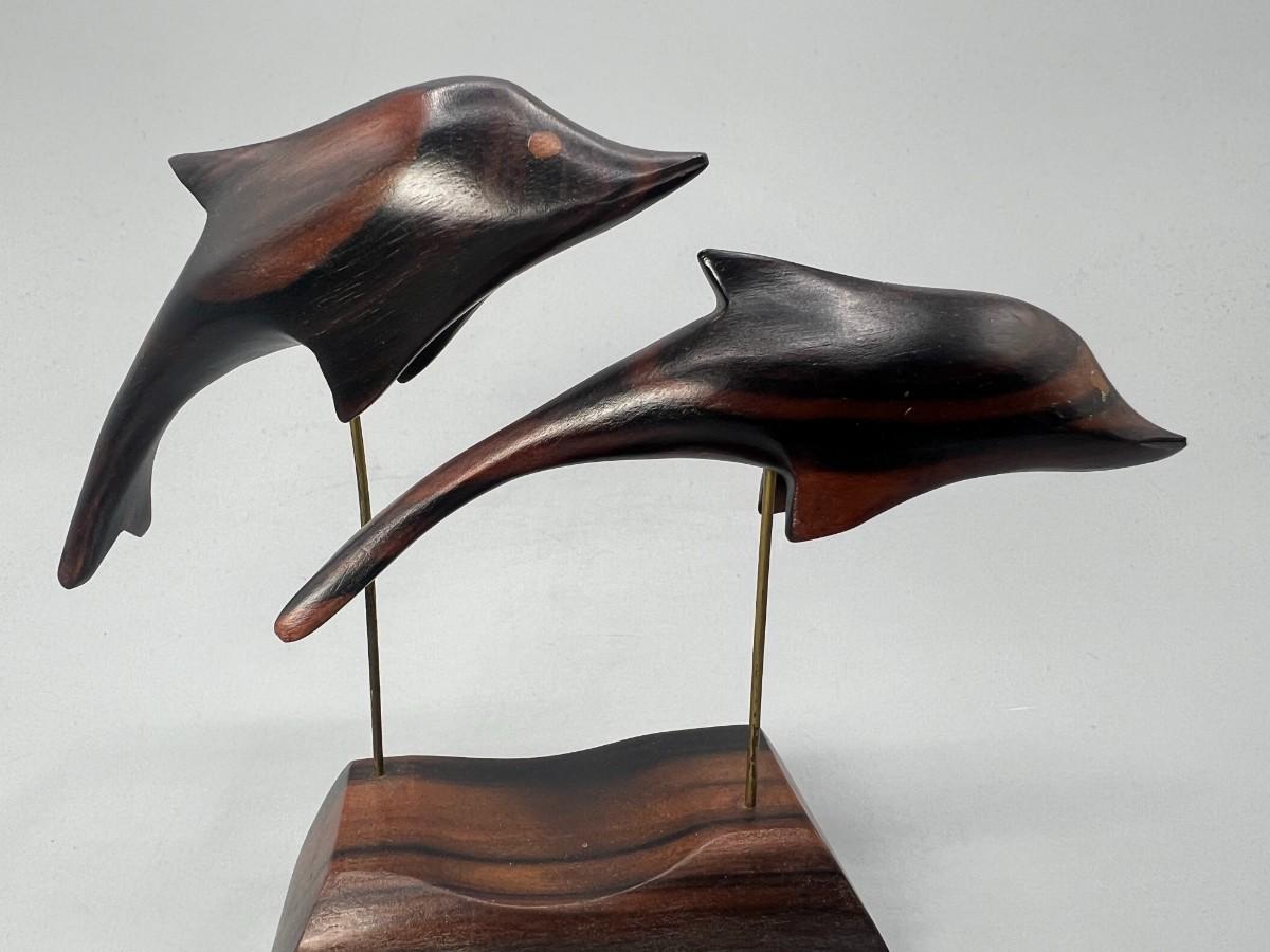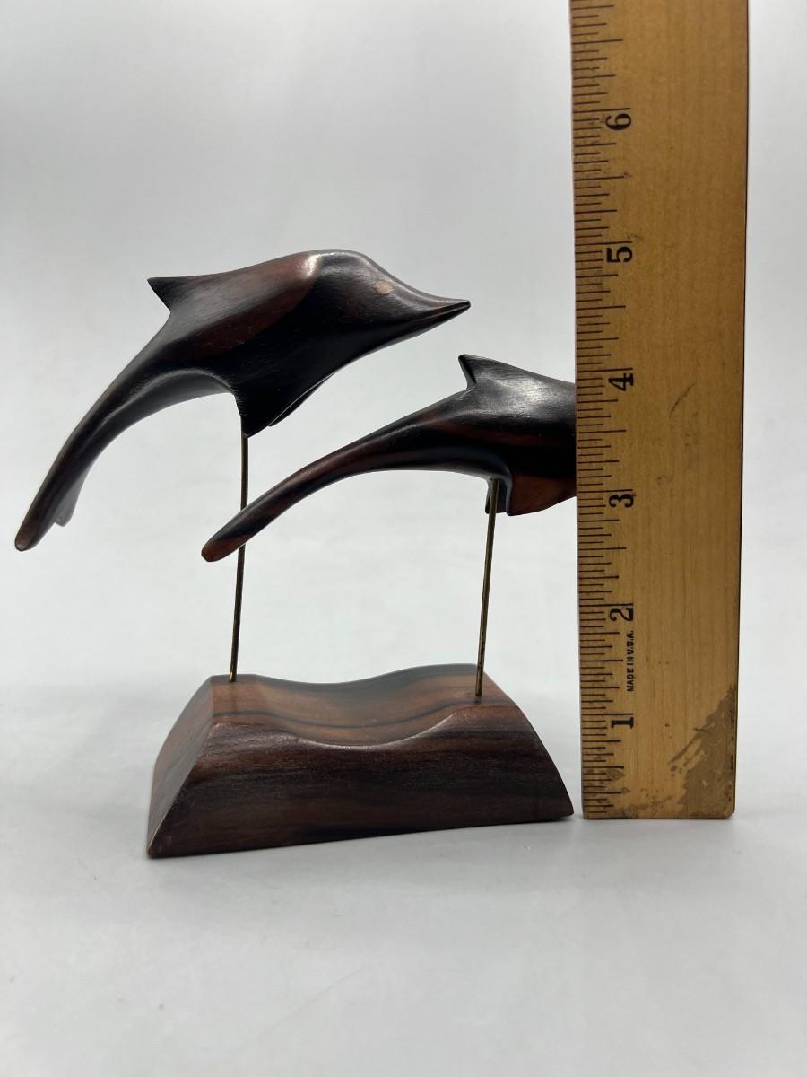 Retro Made in Phillipines Smooth Wood Dolphin Jumping Figurine Statuette