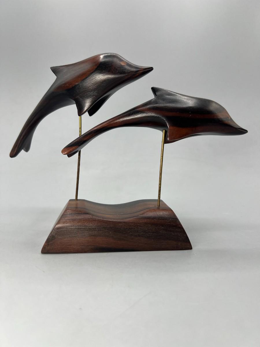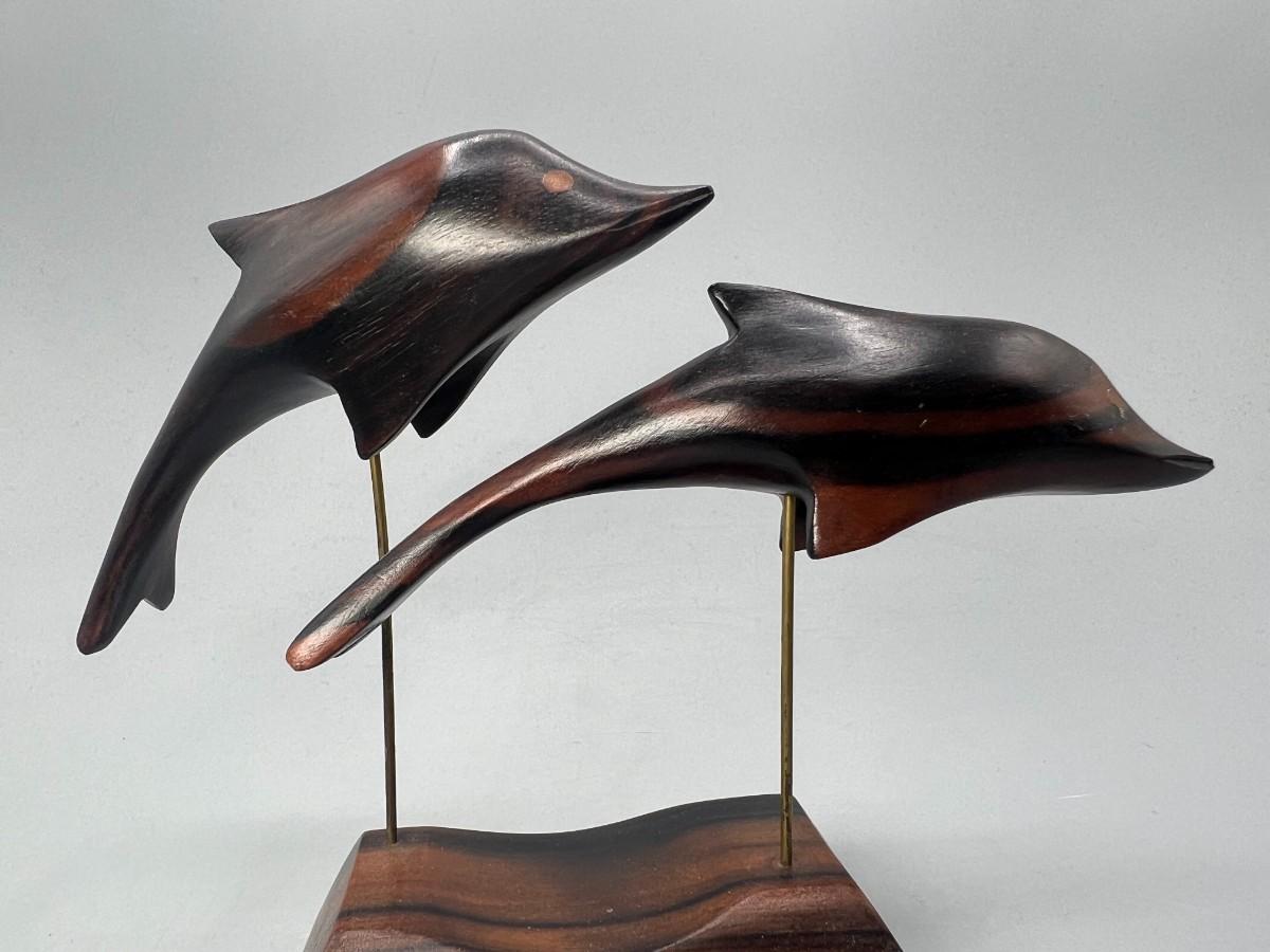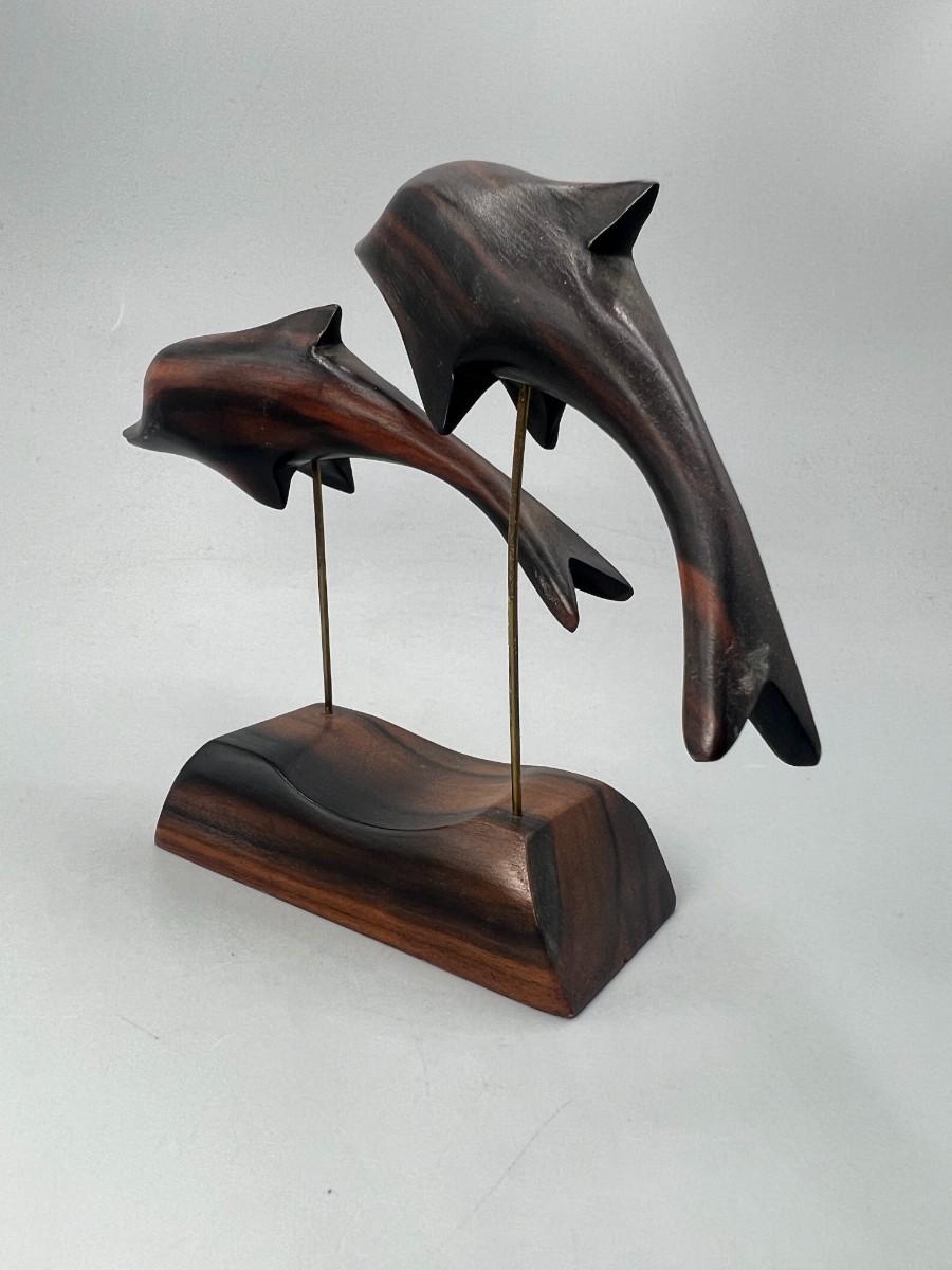 Retro Made in Phillipines Smooth Wood Dolphin Jumping Figurine Statuette