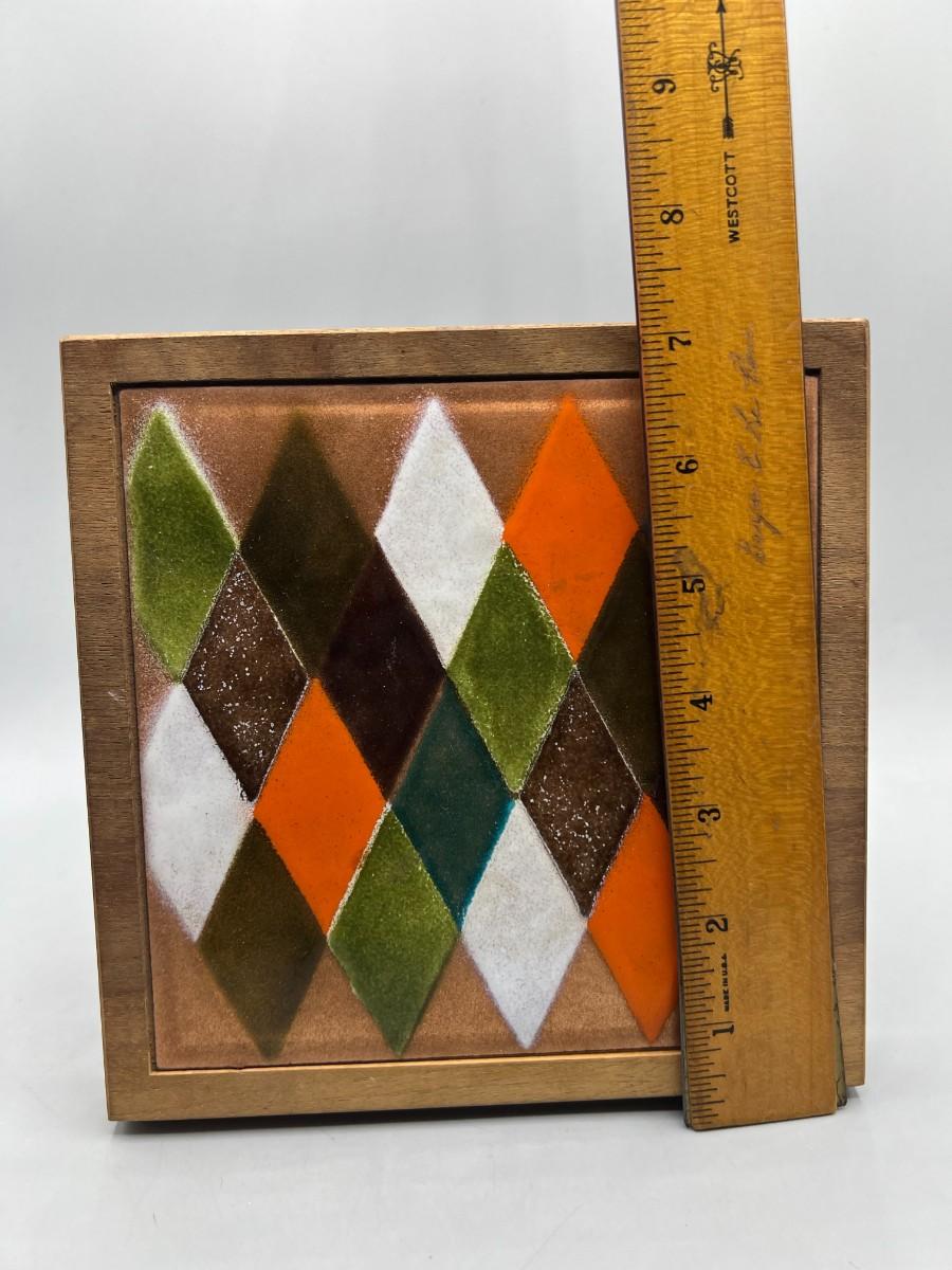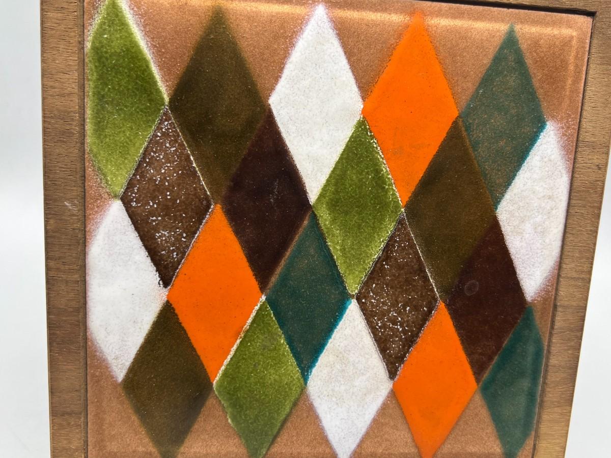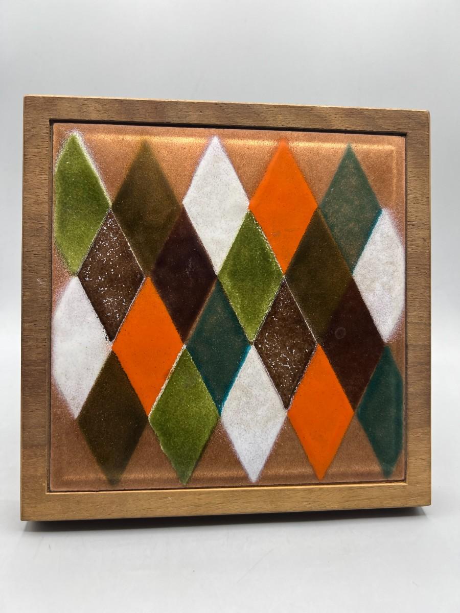 Retro Framed Ceramic Art Tile Argyle Diamond Pattern Inlay Hanging Wallart
