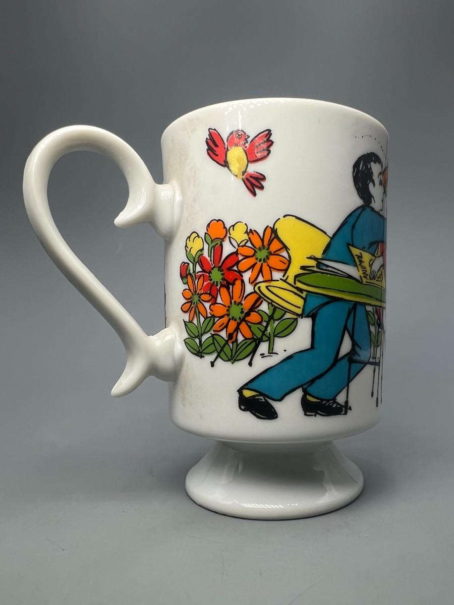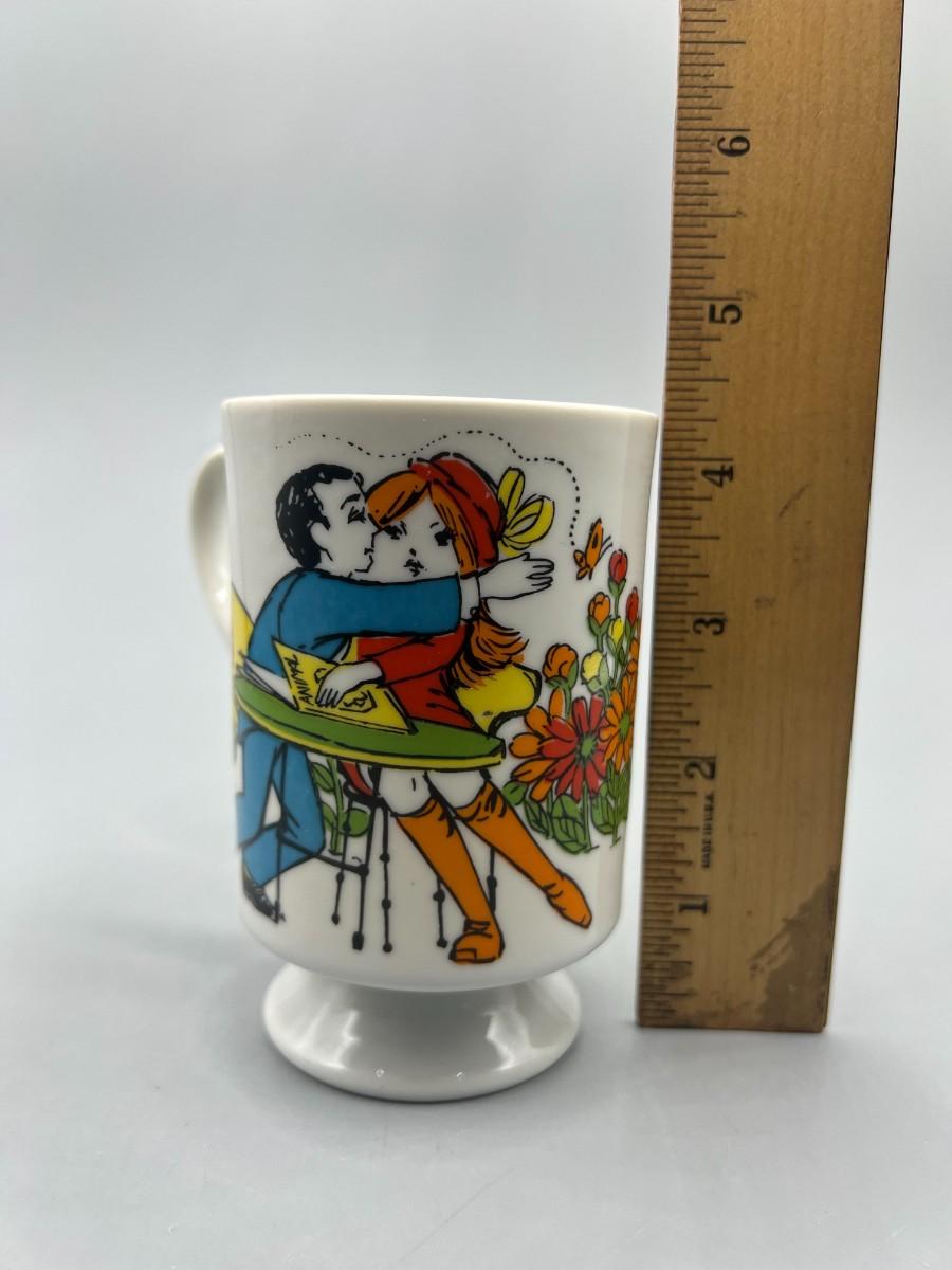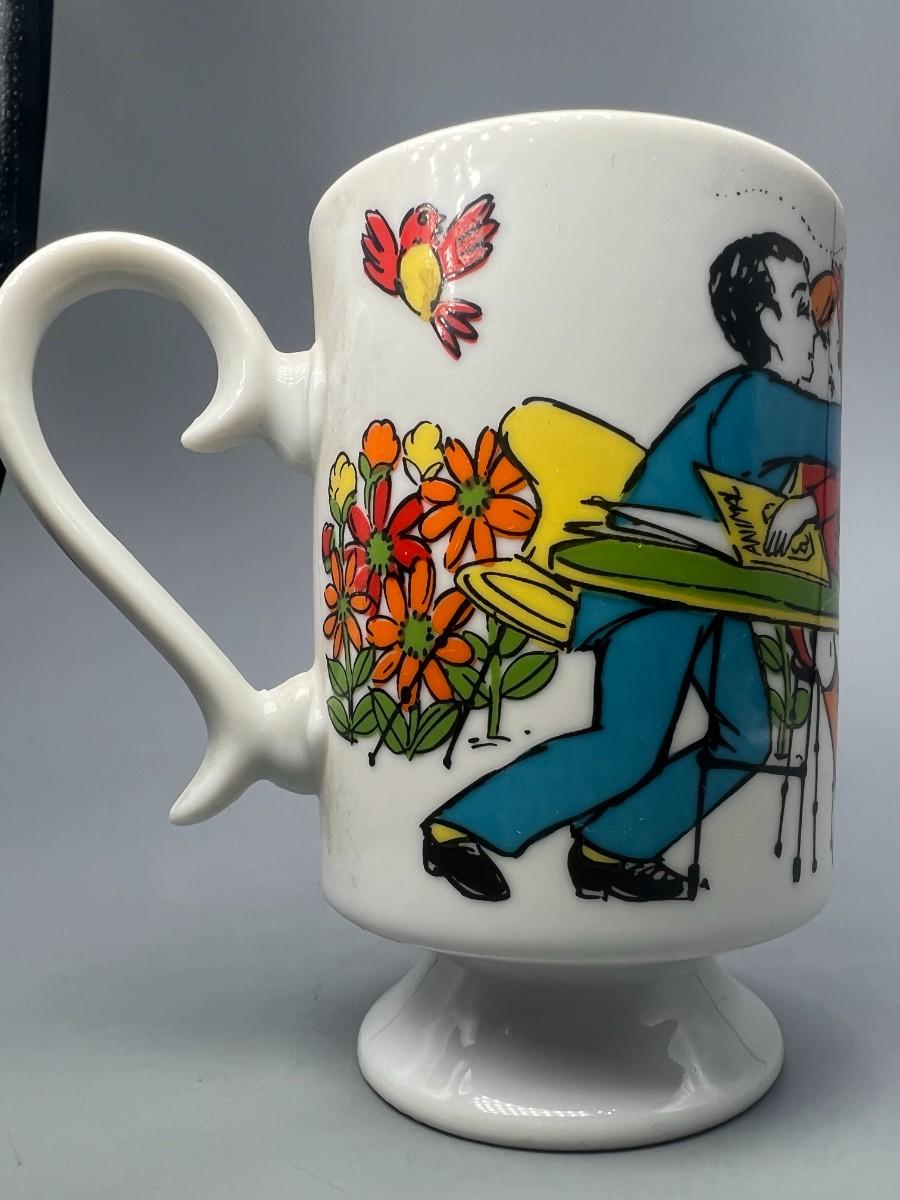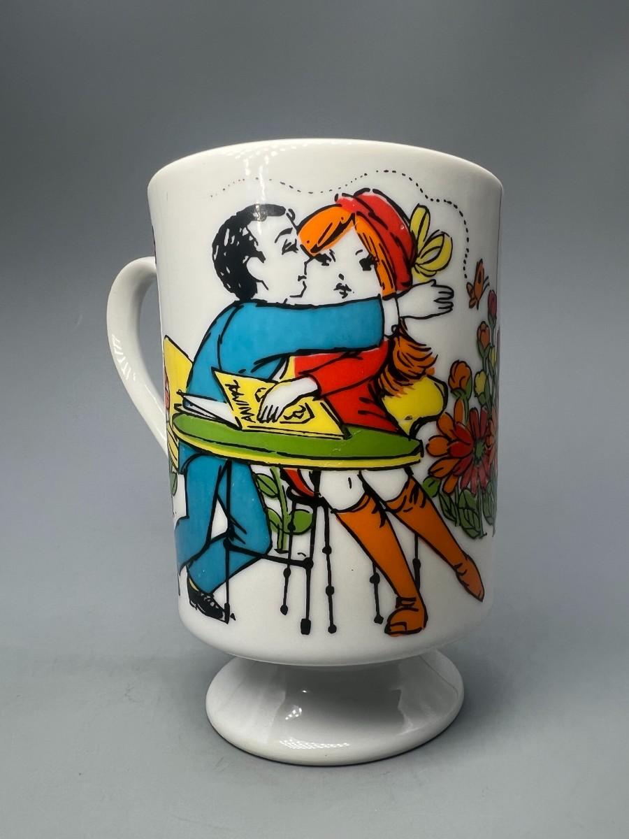 Vintage Romance R6779 Go Go Hippy Mid-Century Graphics Ceramic Pedestal Coffee Cup Mug
