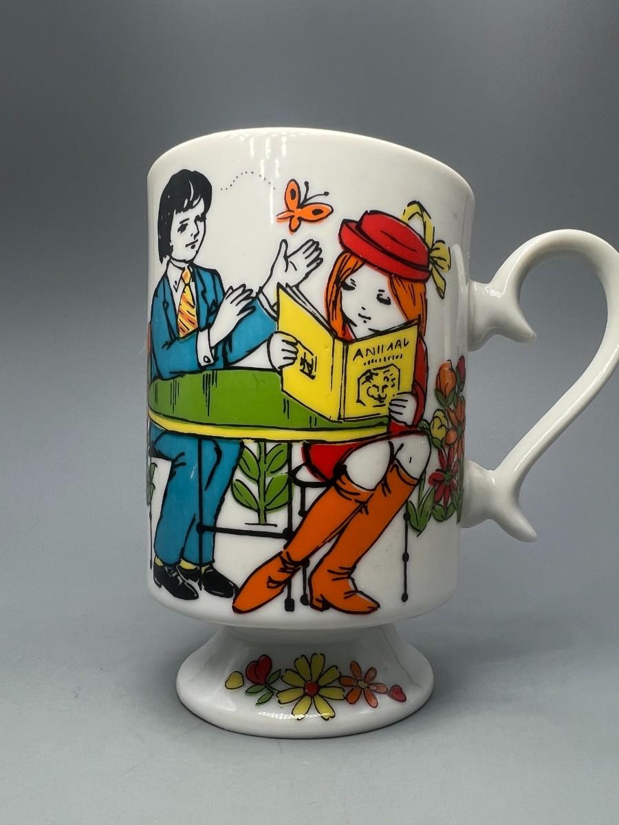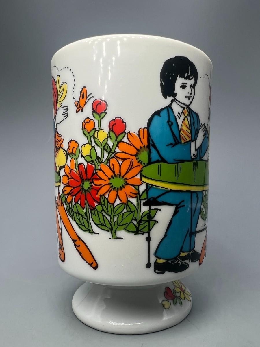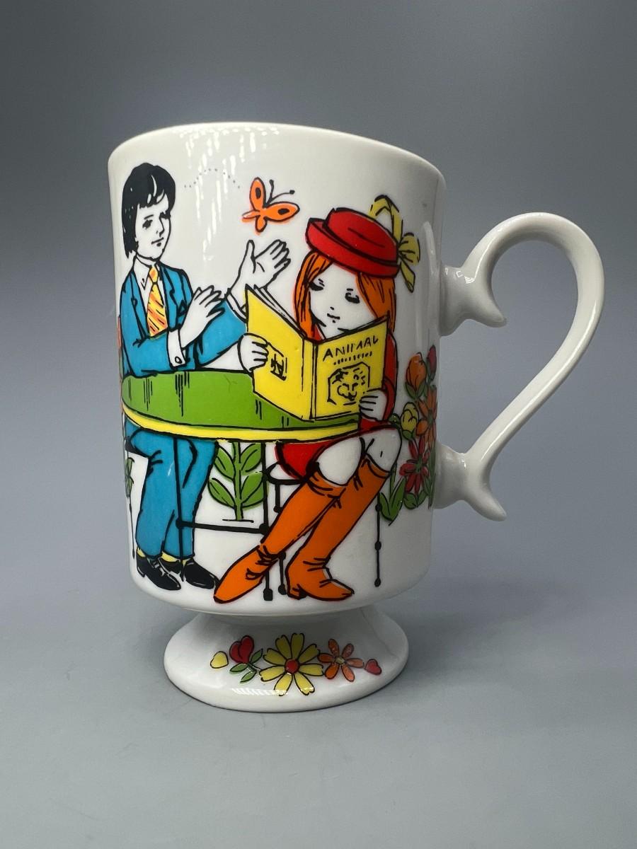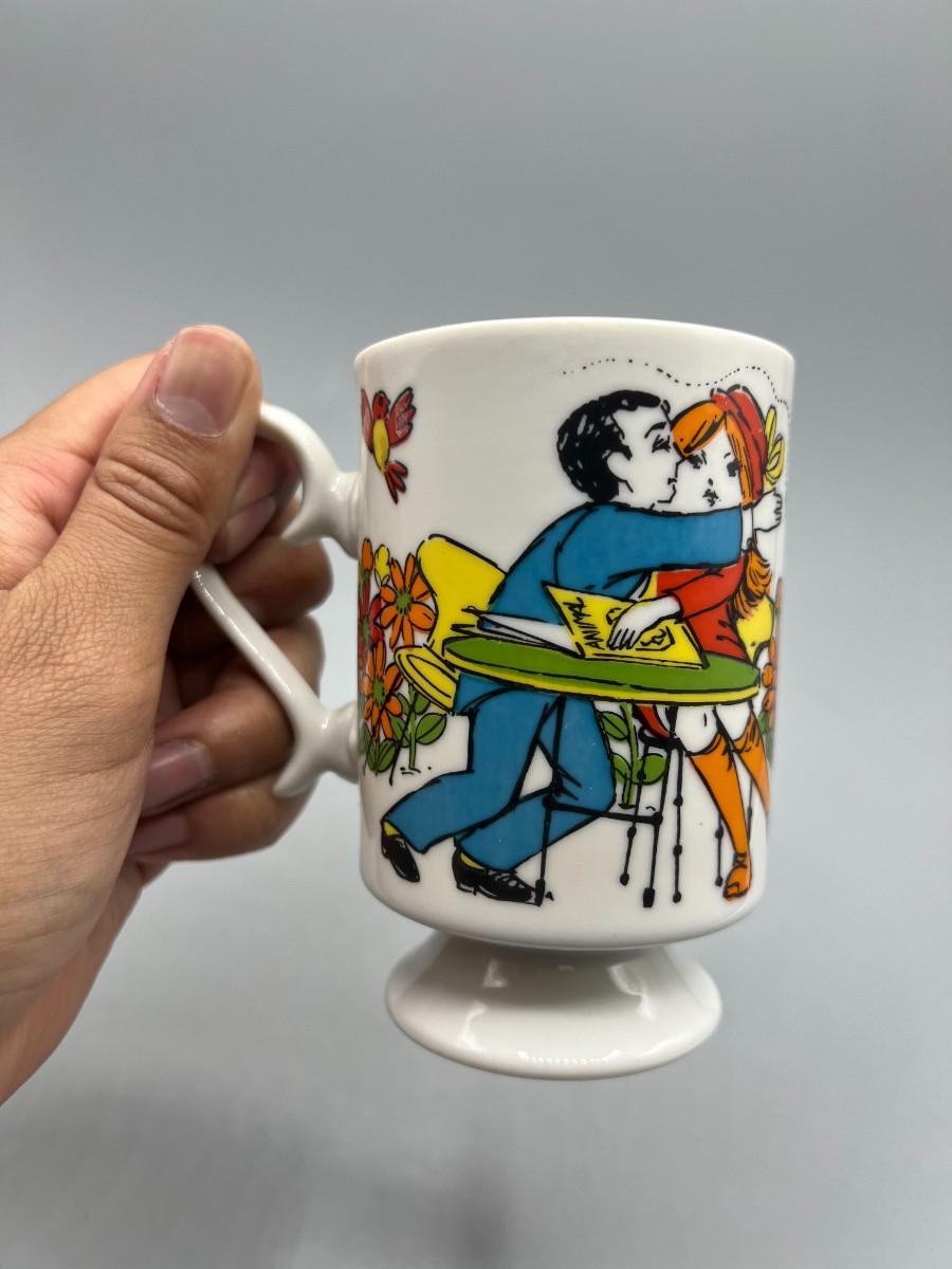 Vintage Romance R6779 Go Go Hippy Mid-Century Graphics Ceramic Pedestal Coffee Cup Mug