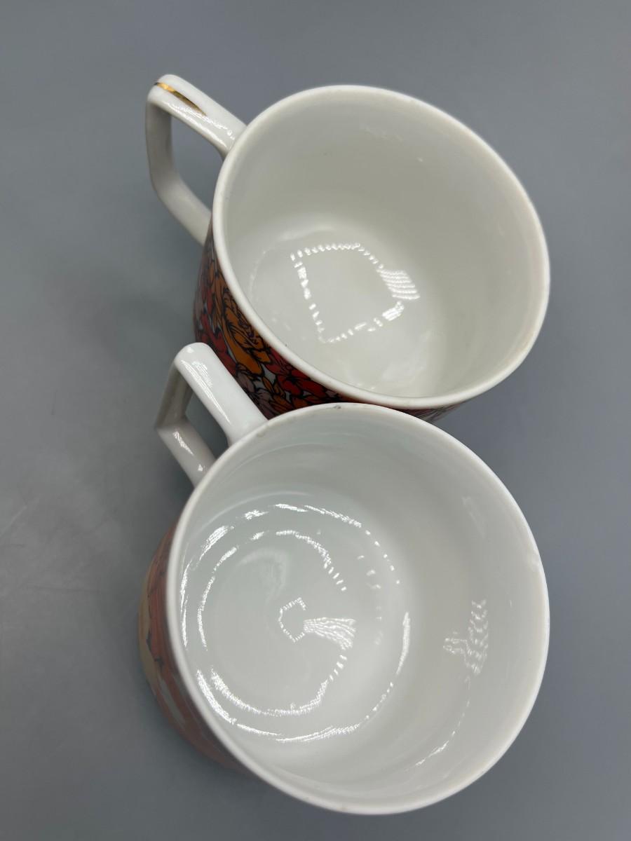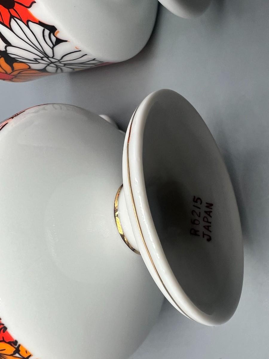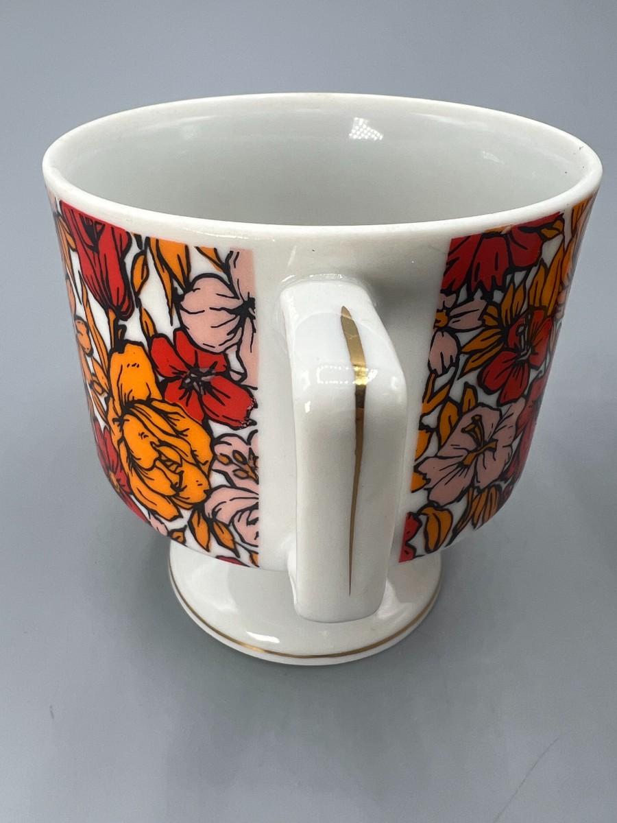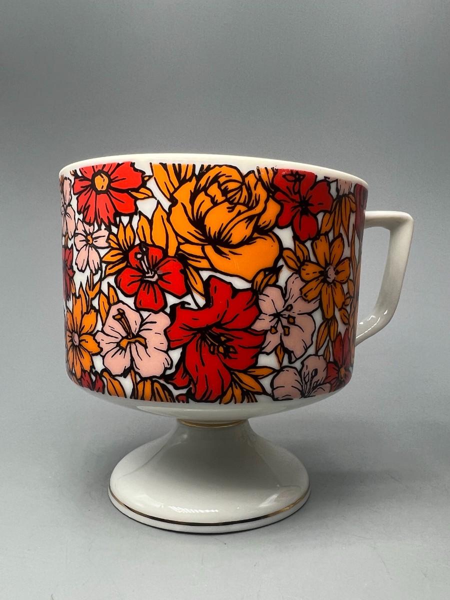 Vintage Hippy 1970's Flowers Groovy Similar Design Ceramic Drinking Cups Pedestal Coffee Mugs