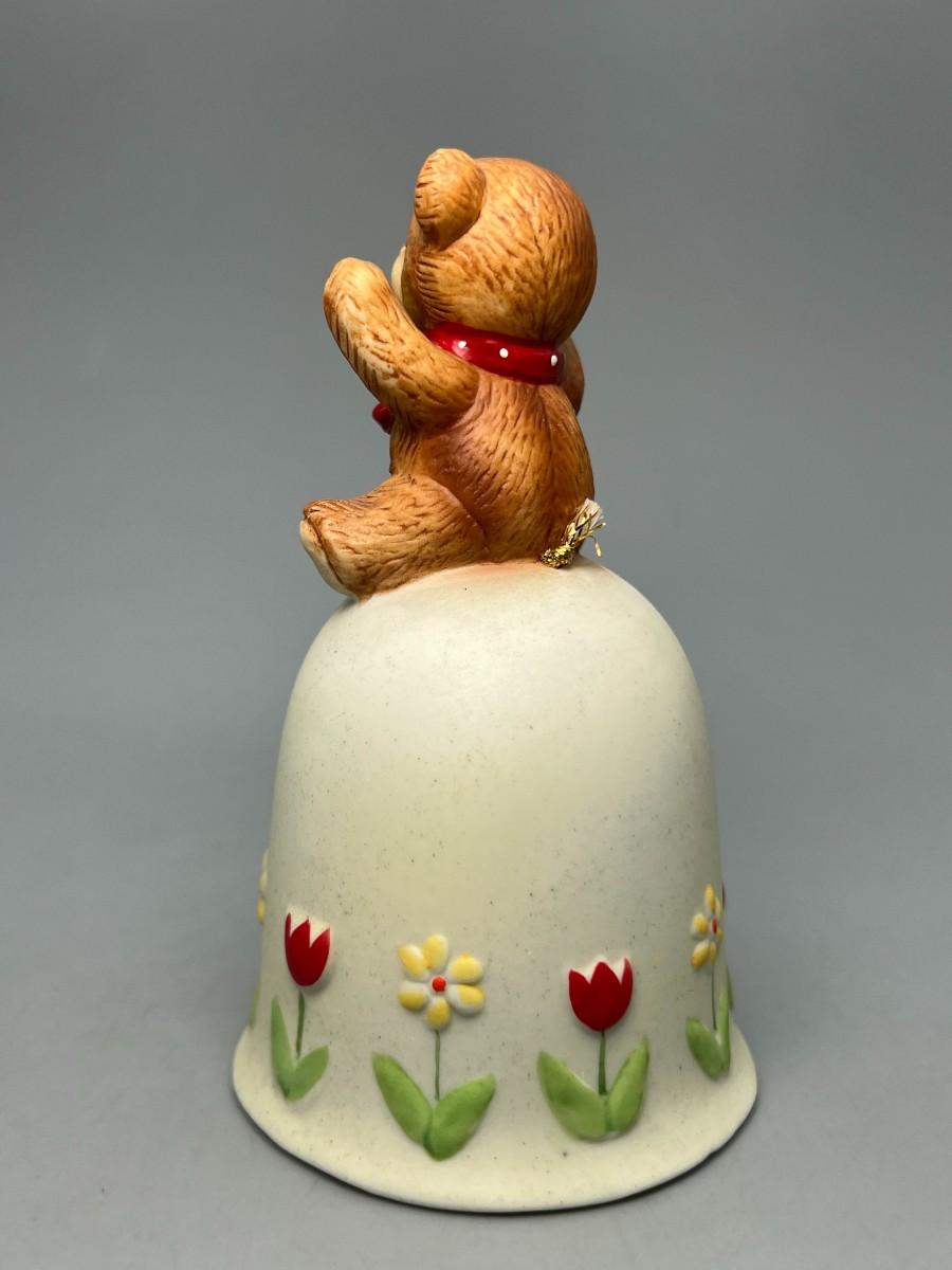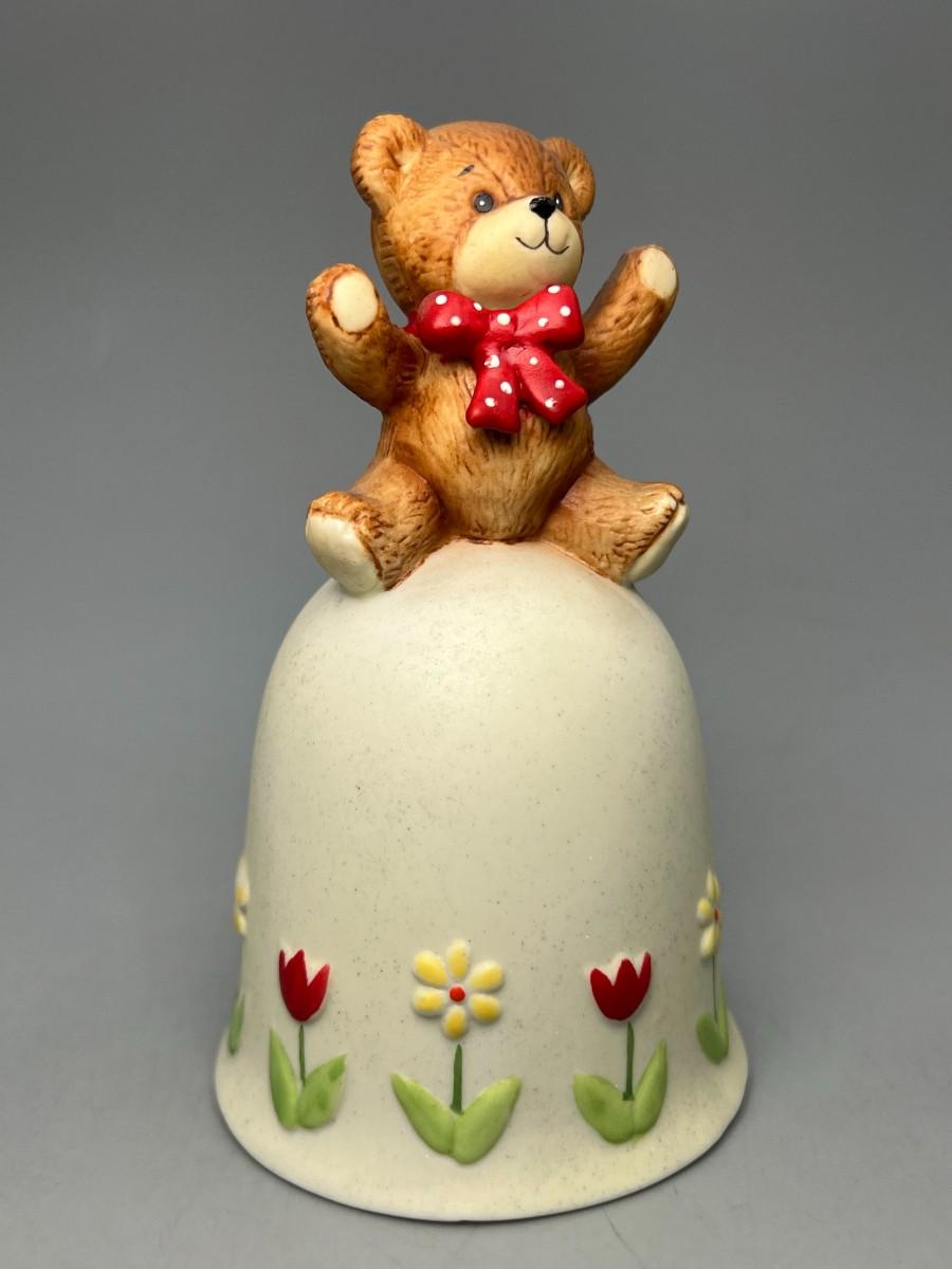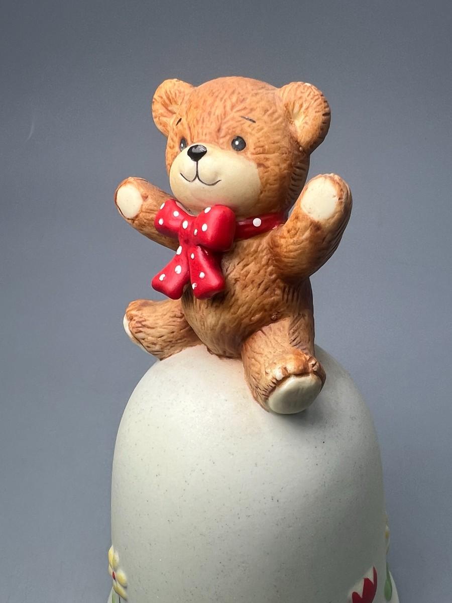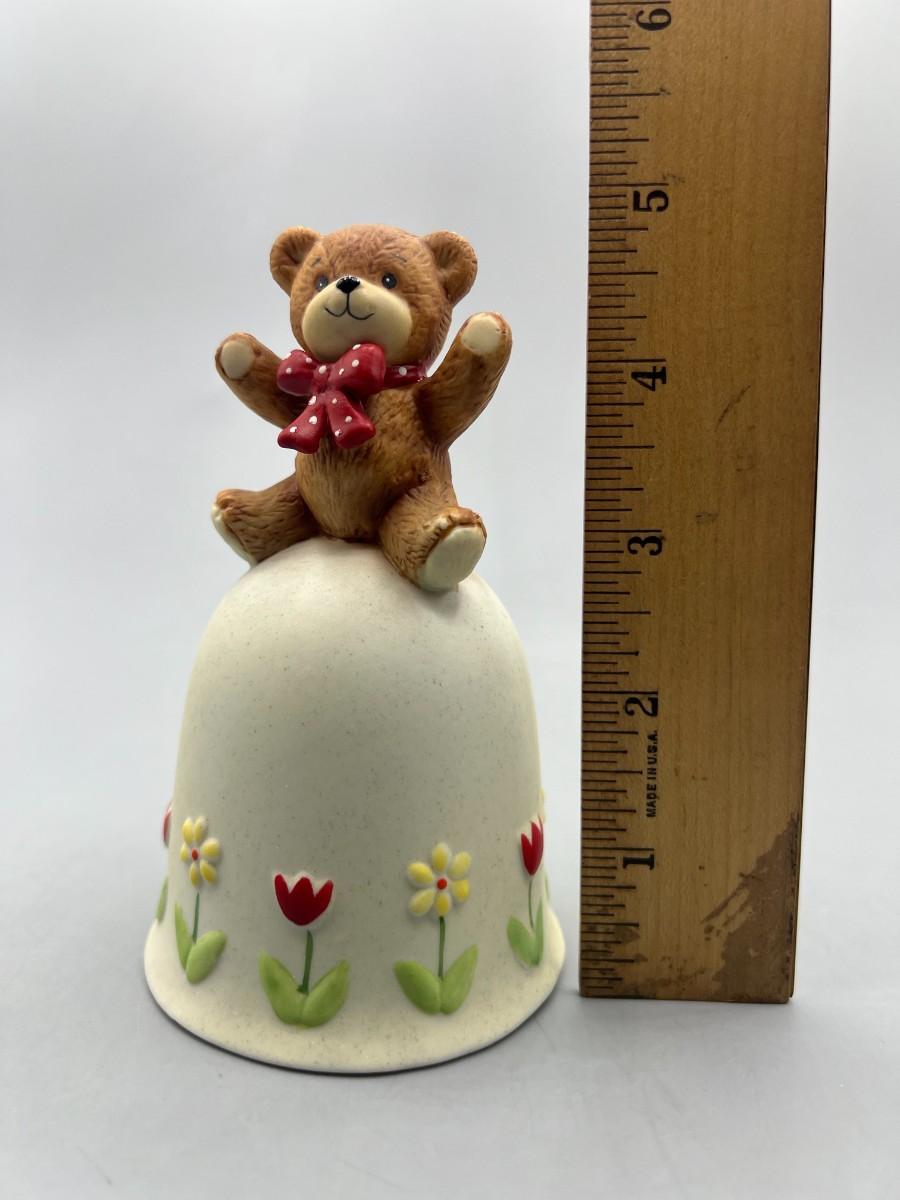 Vintage Enesco Imports Rigglets Red Polka Dot Bow Bear with Flowers Decor Bell