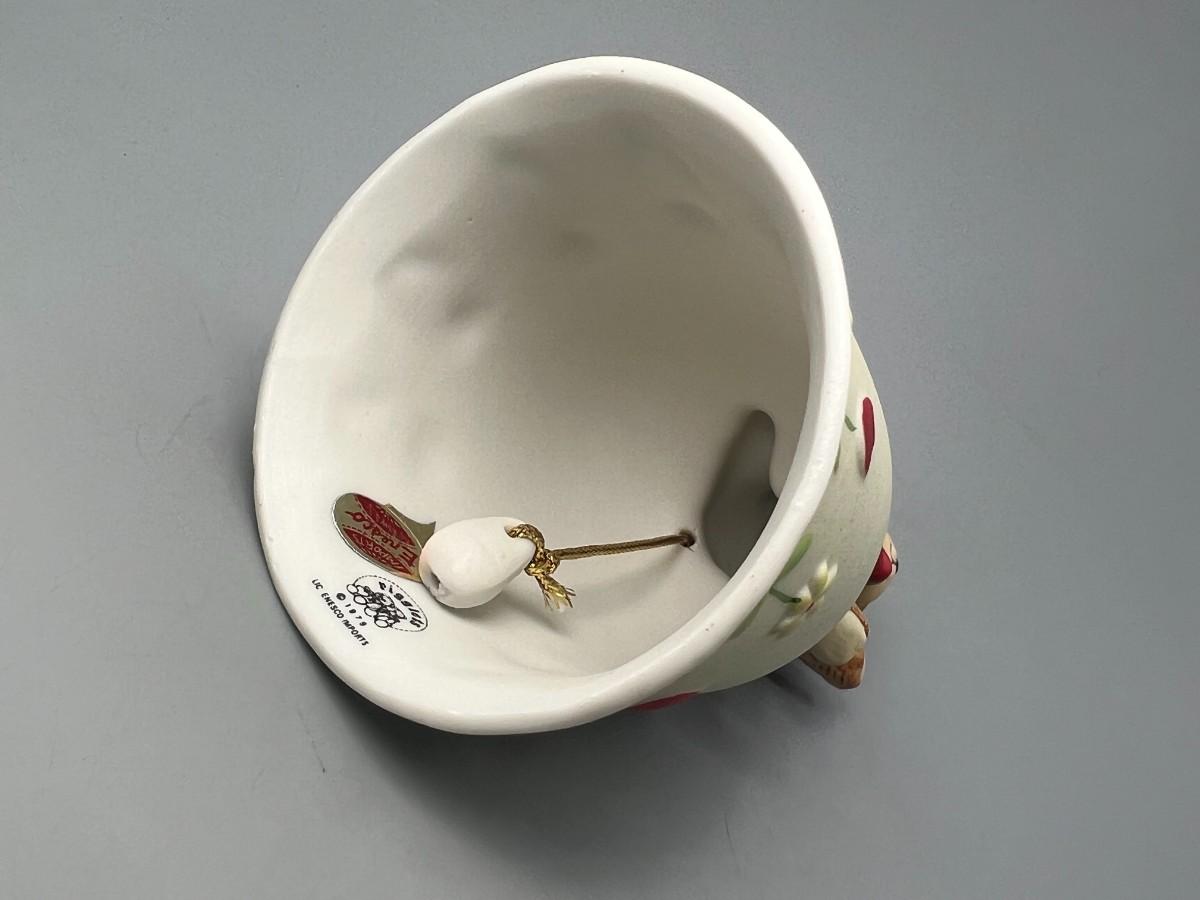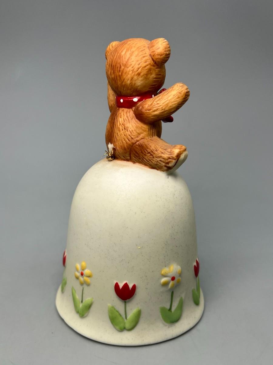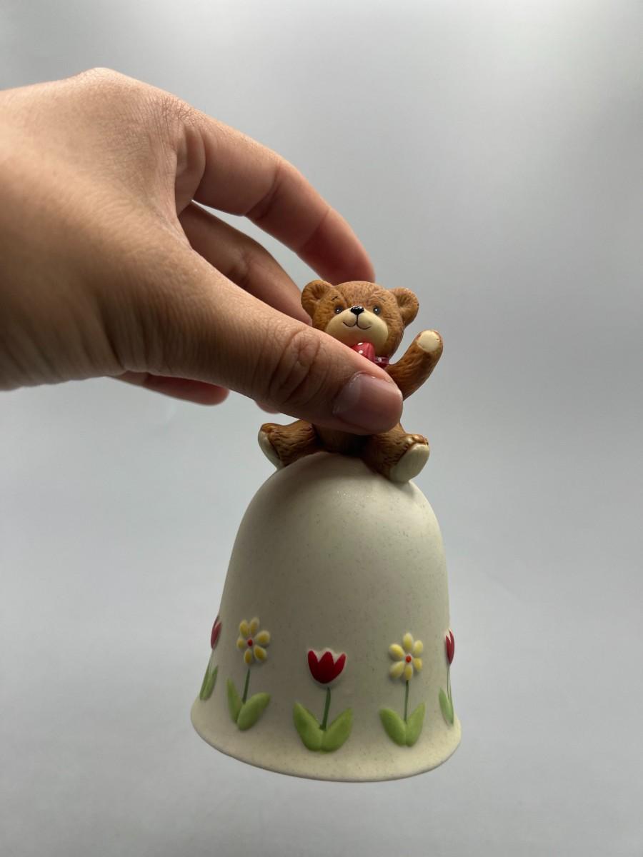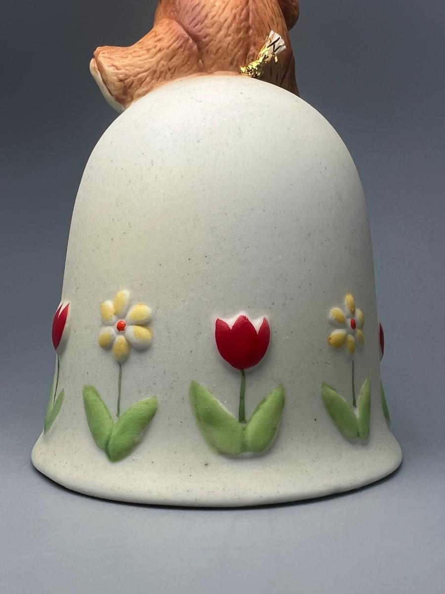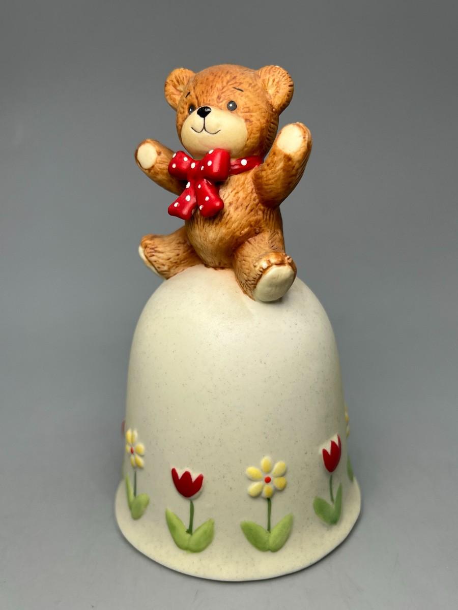 Vintage Enesco Imports Rigglets Red Polka Dot Bow Bear with Flowers Decor Bell
