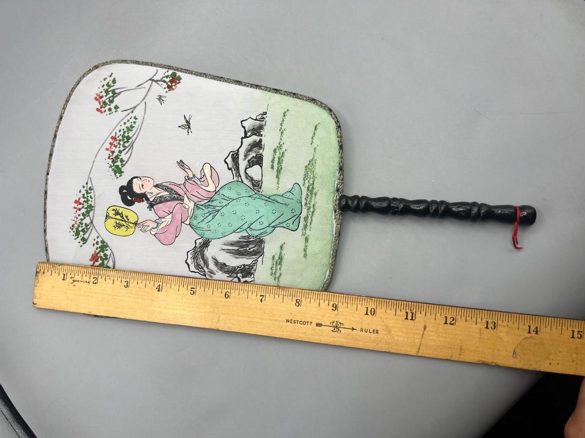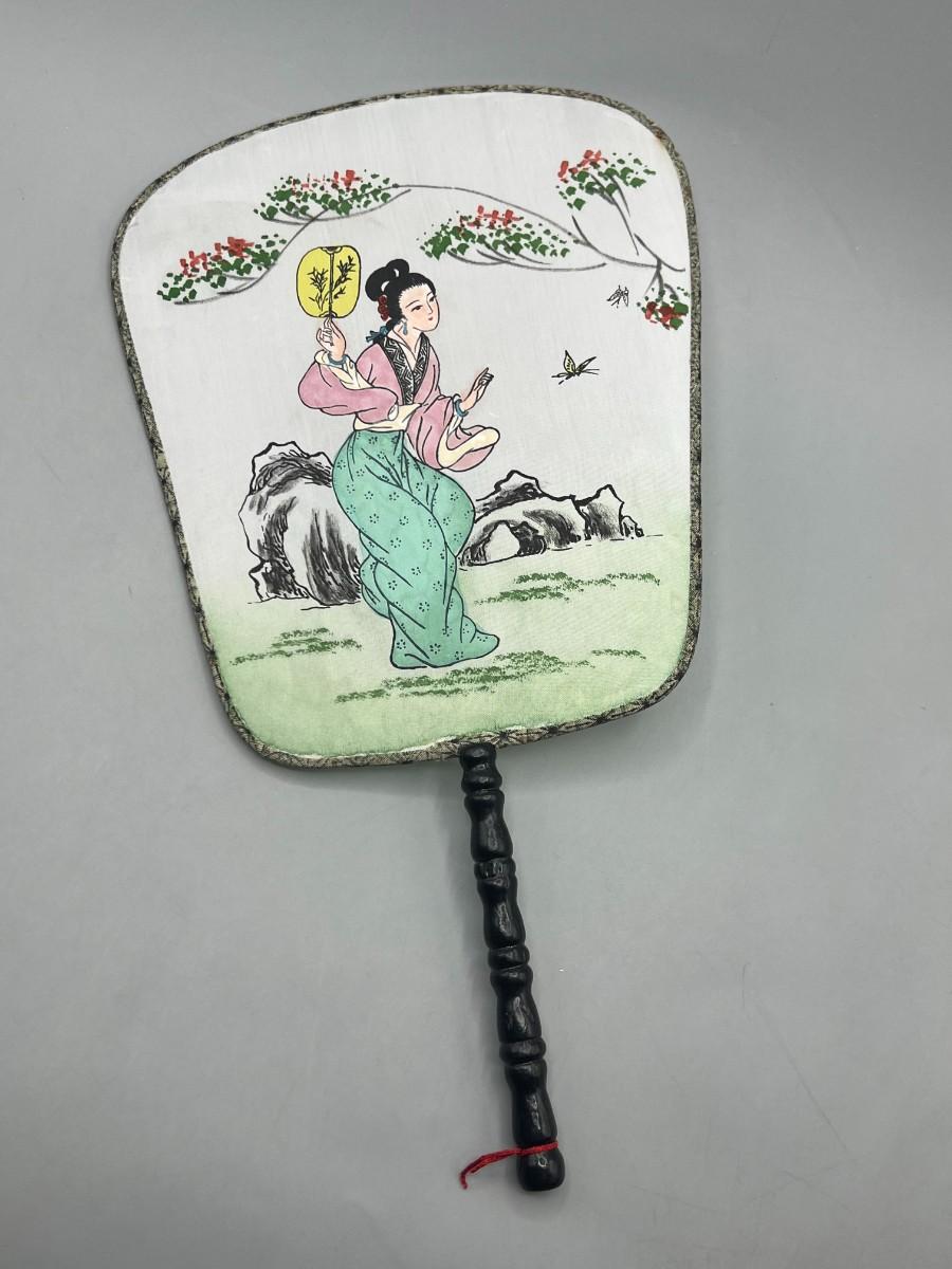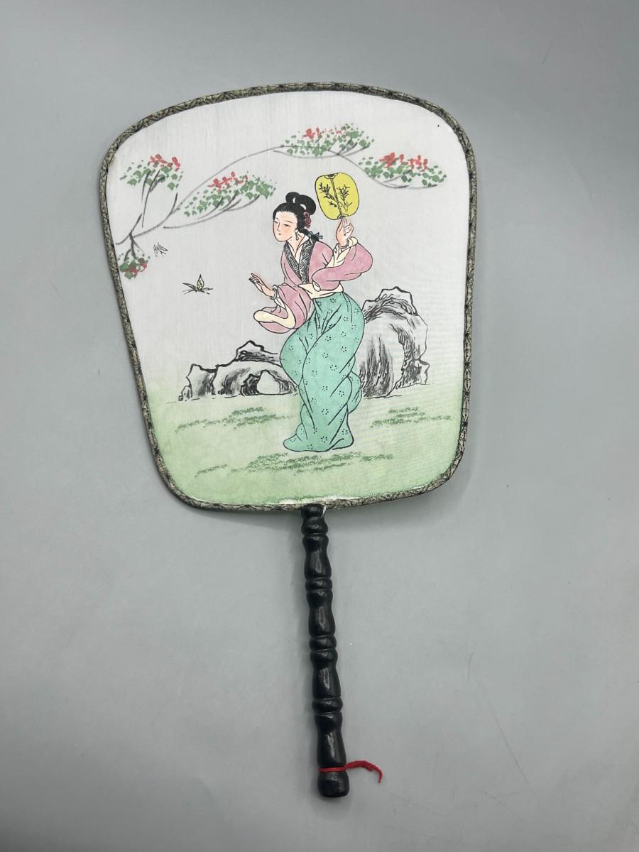 There are no rips or tears to the material on the hand fan and is in overall good collectible or useable condition.