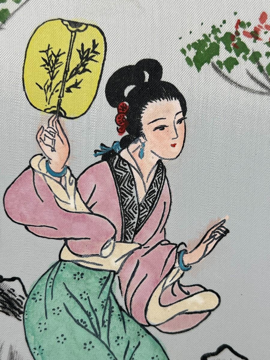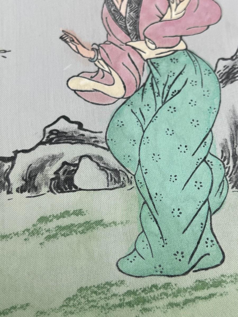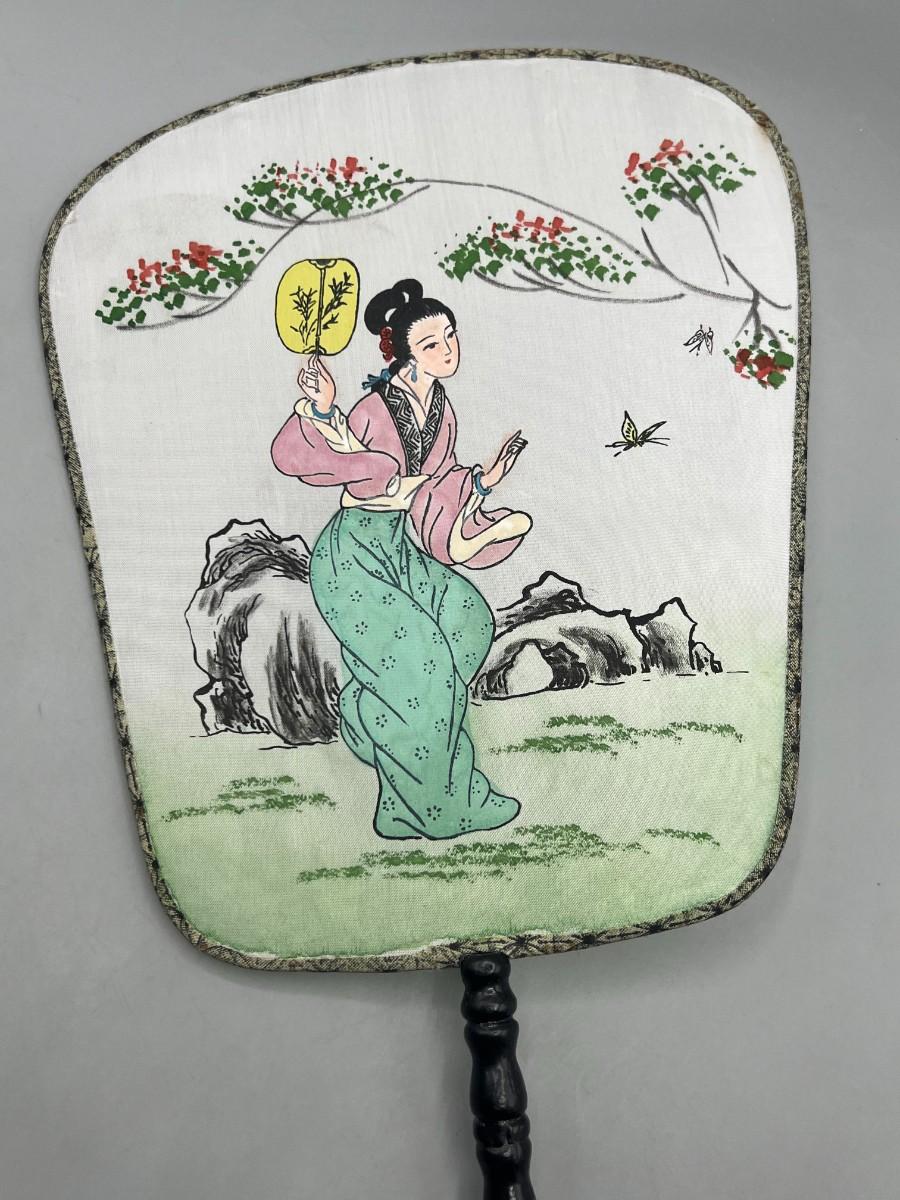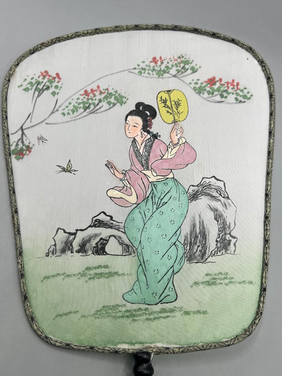 There are no rips or tears to the material on the hand fan and is in overall good collectible or useable condition.