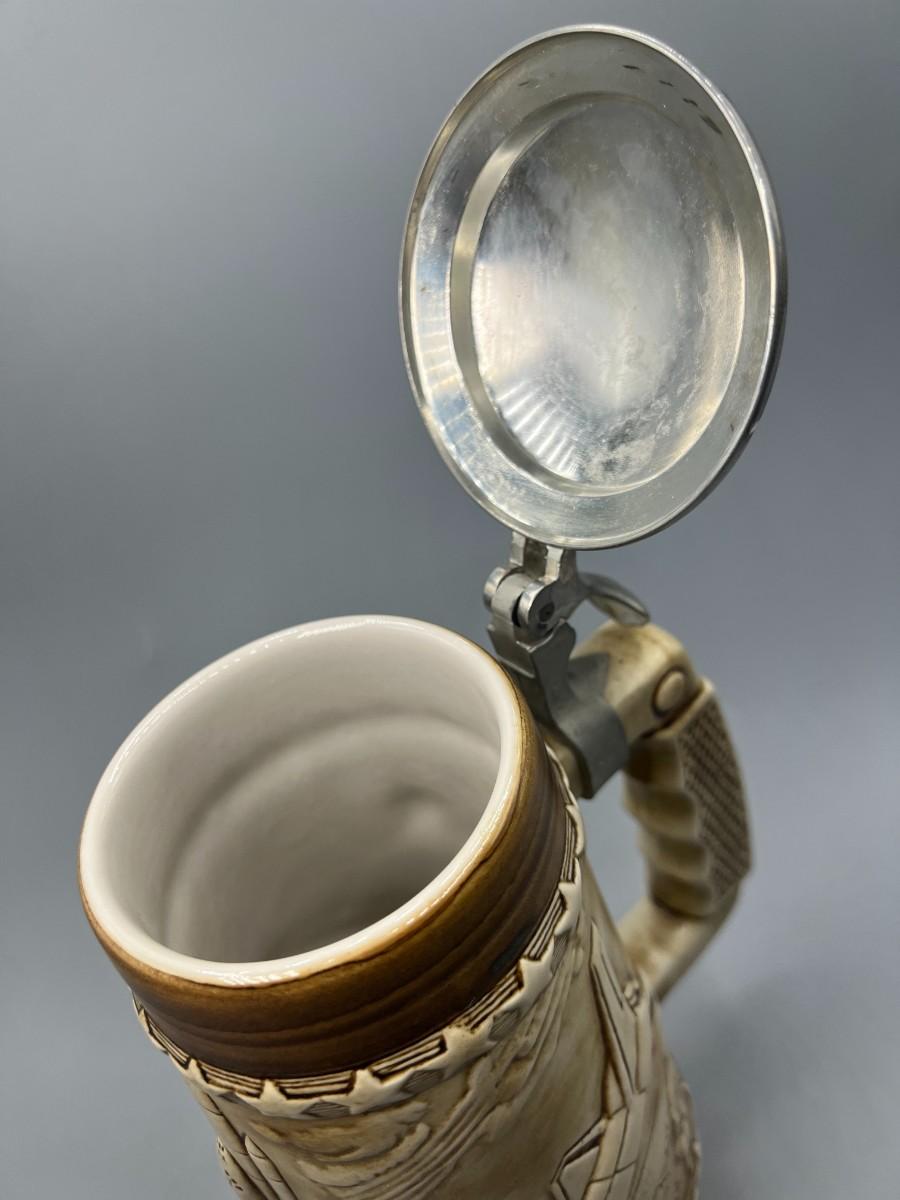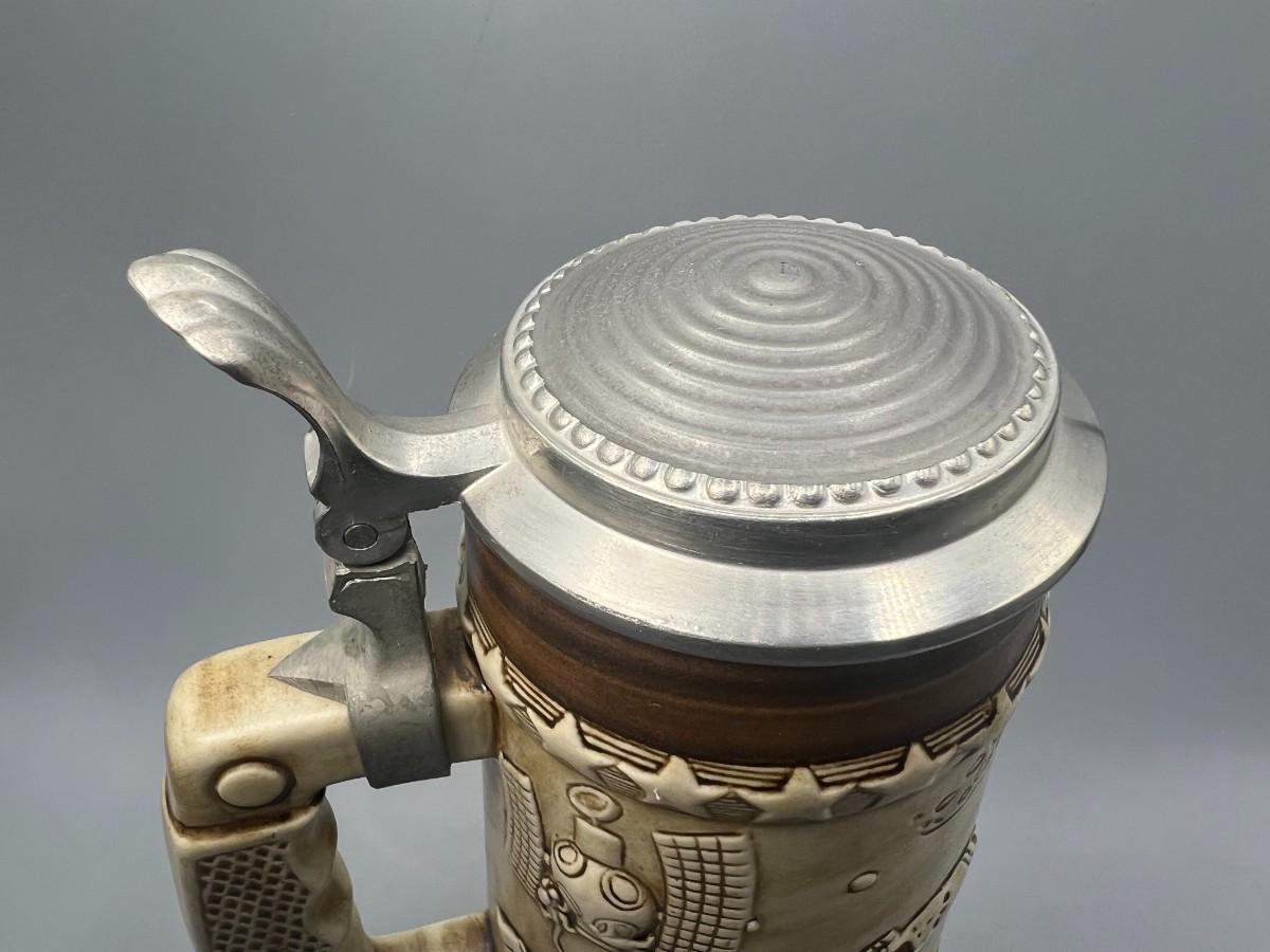 There is no damage to the beer stein and is in perfect useable or collectible condition. Check pictures for more details and for sizing.