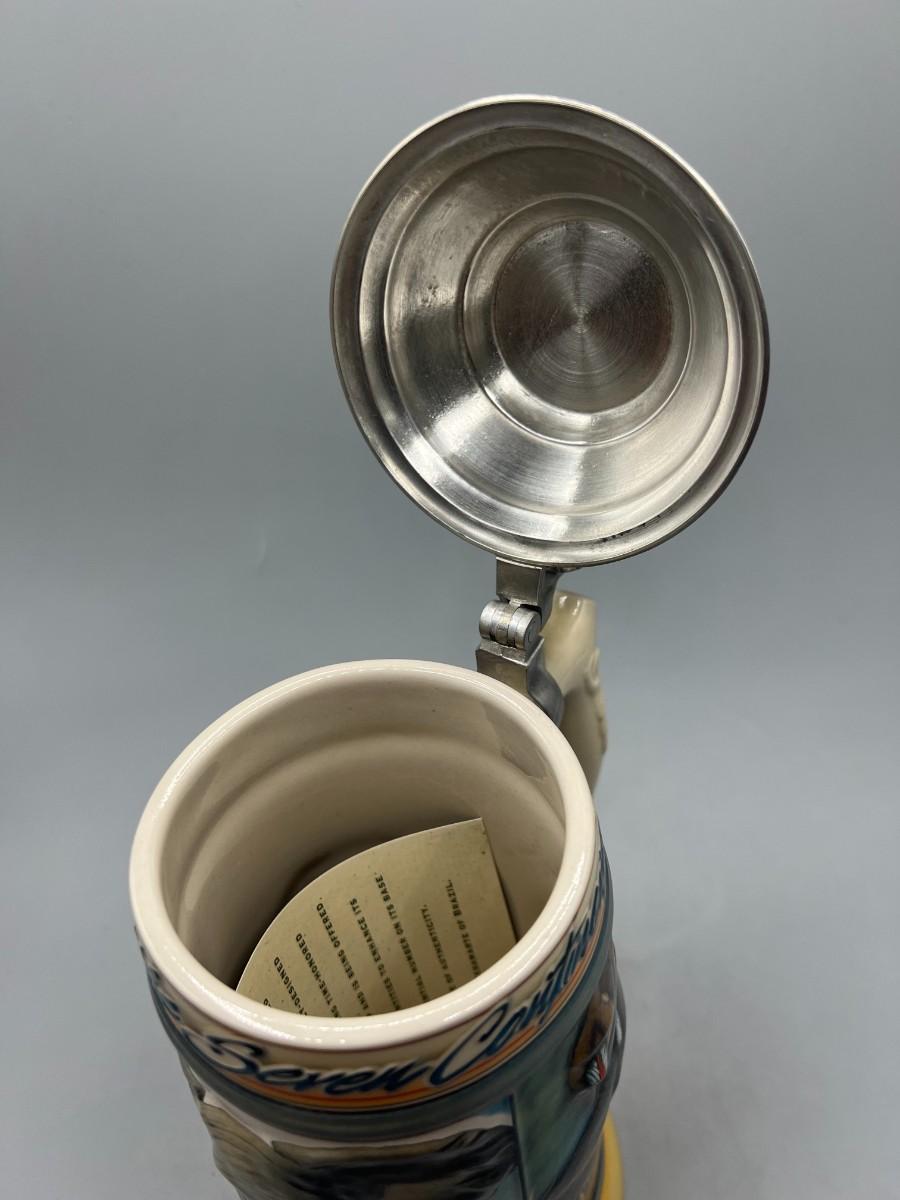 Beautiful vintage graphics on the stein, with detailed pop out textures. There is no damage and in good condition.