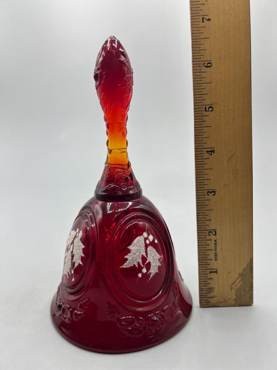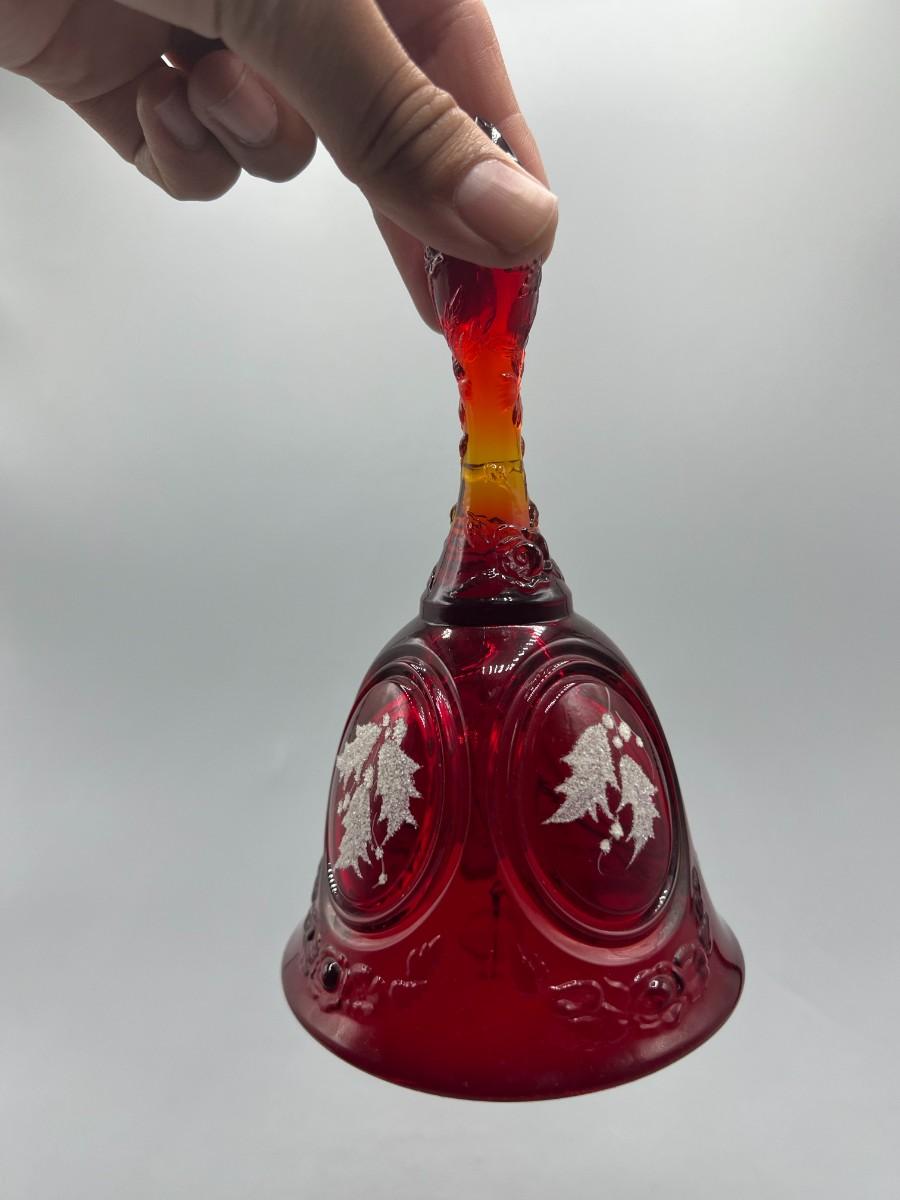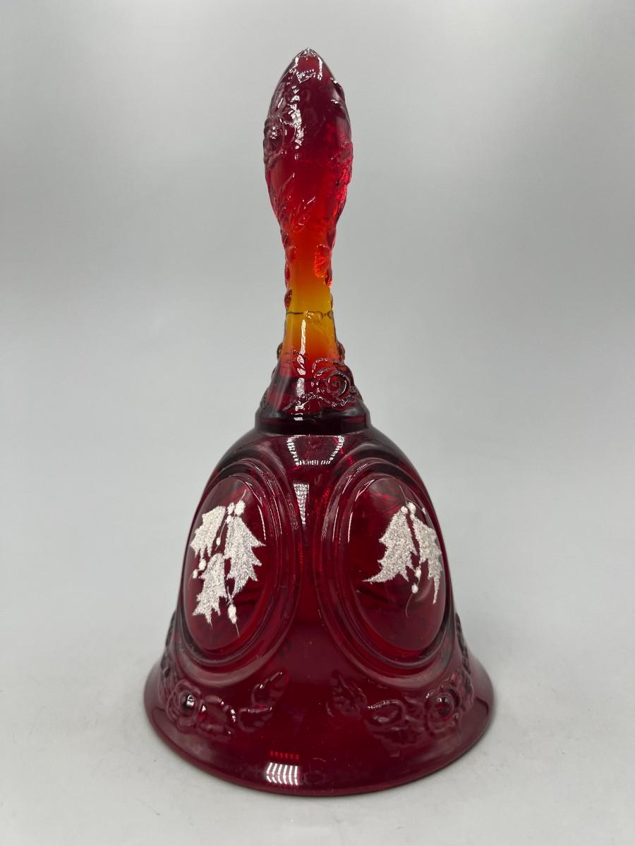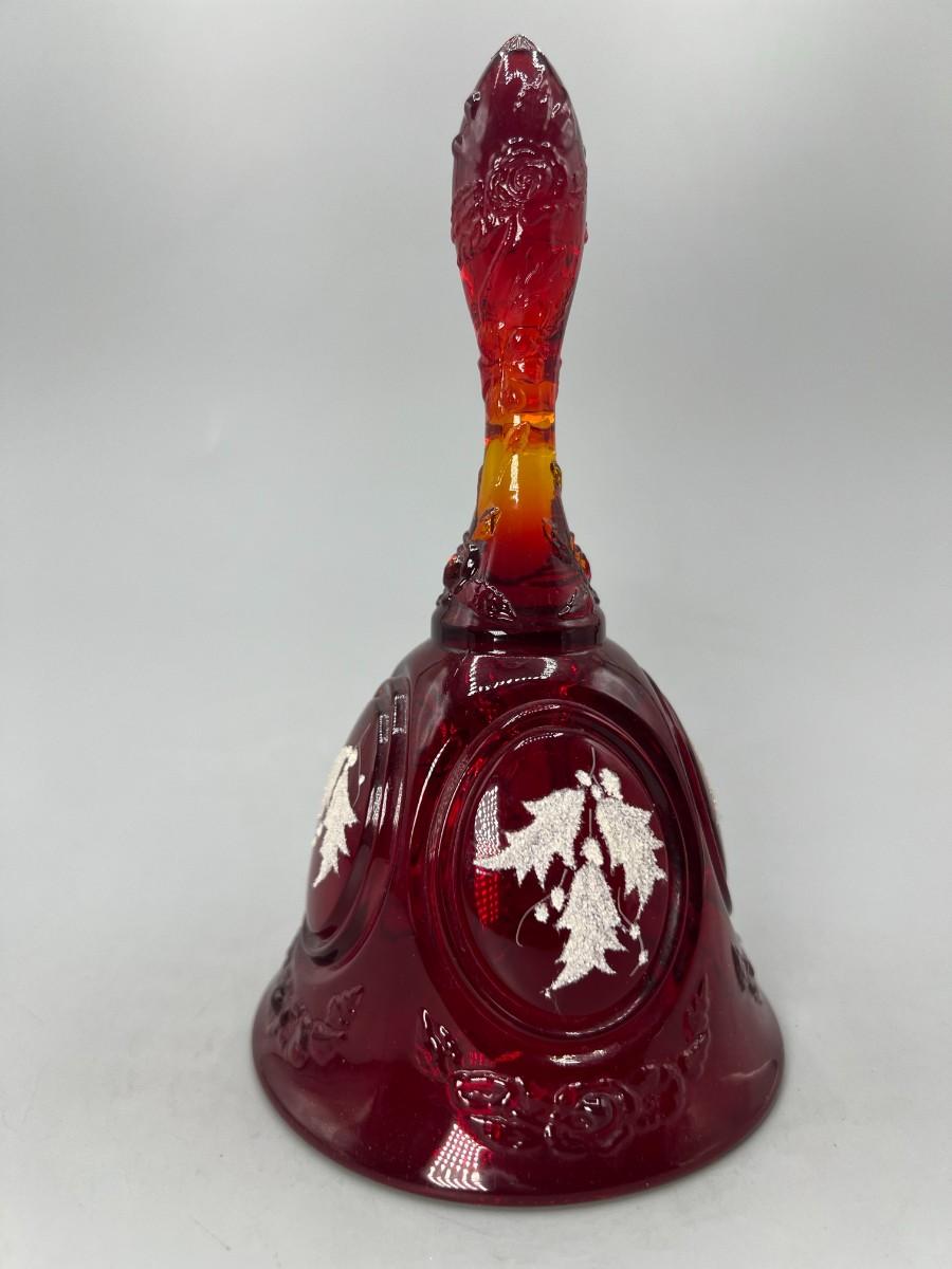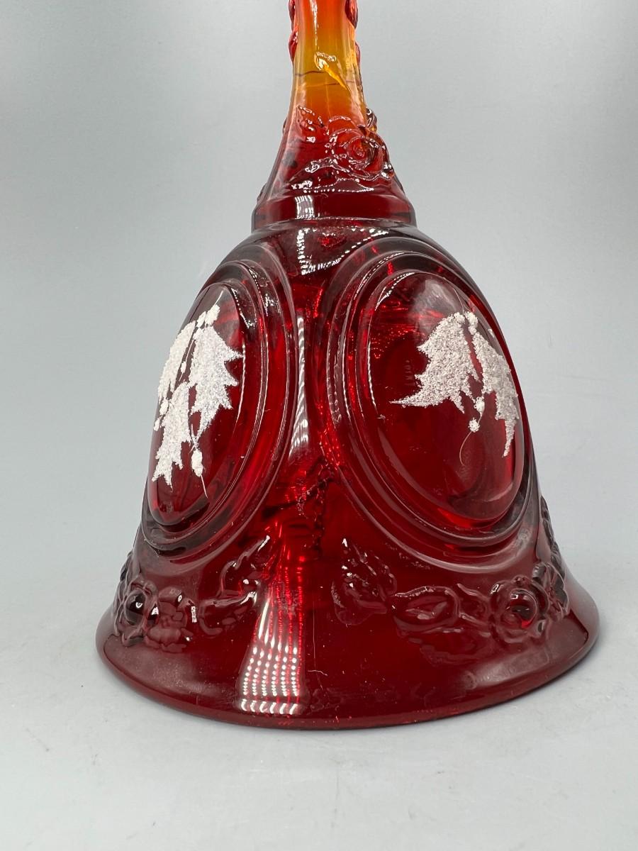 Vintage Fenton Red Art Glass Hand Painted Ruby Red Medallion Bell