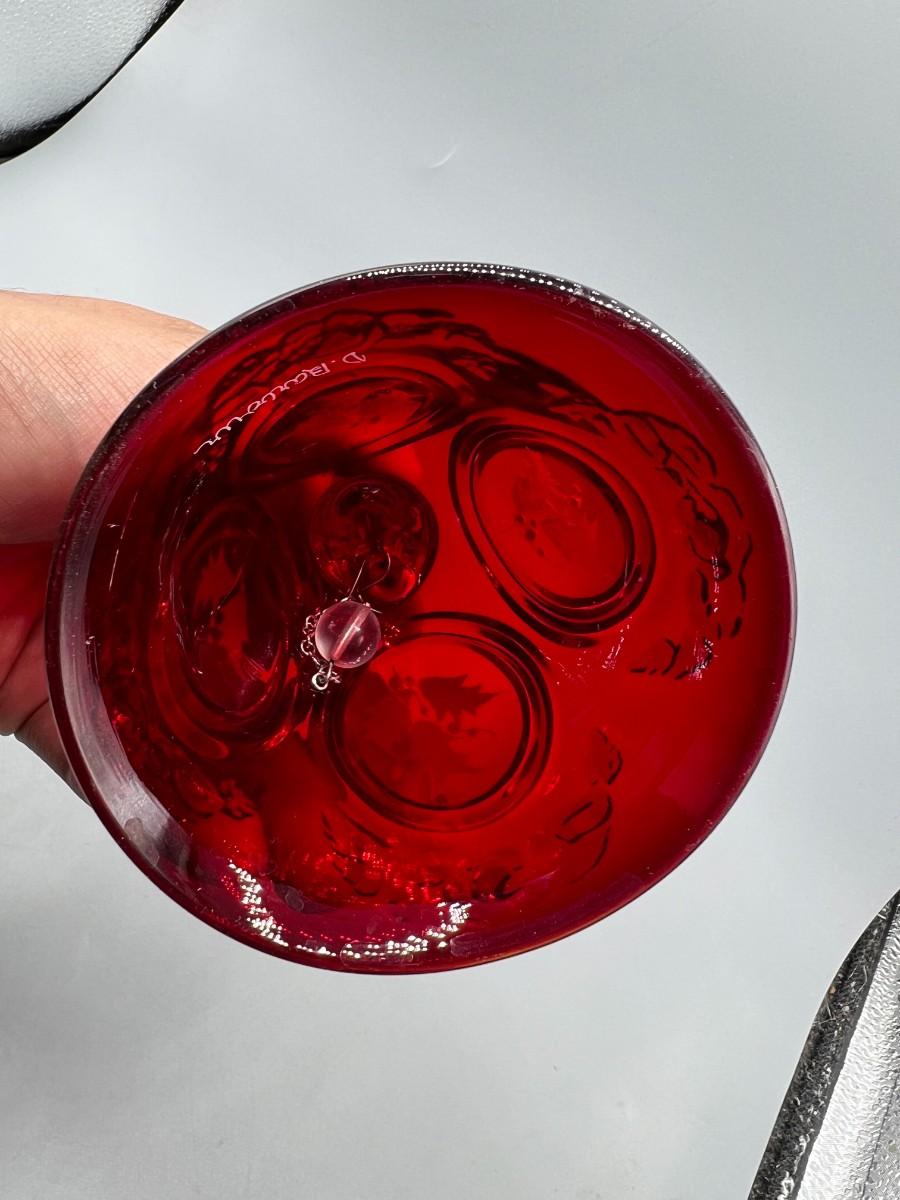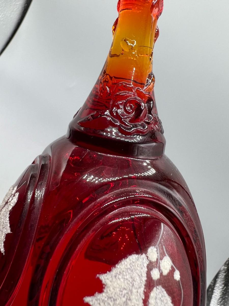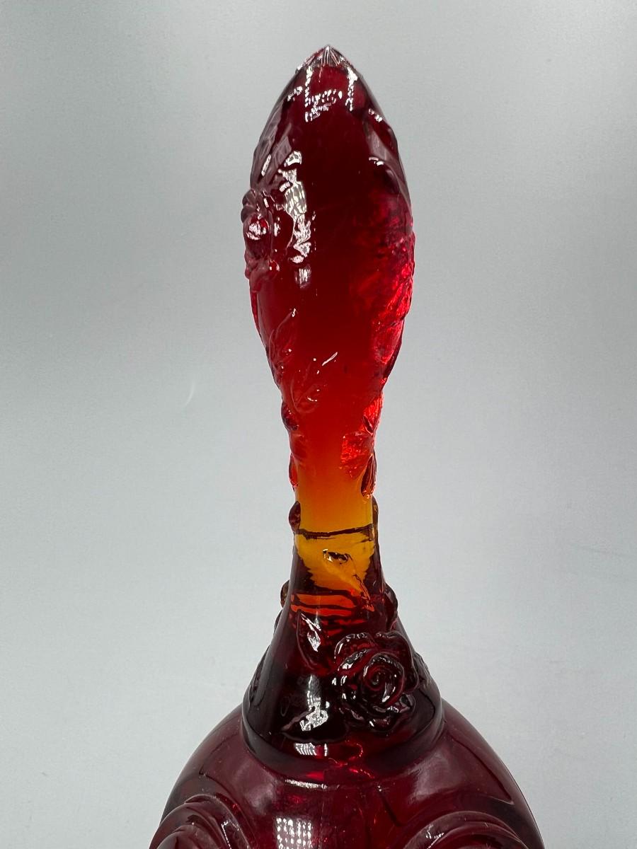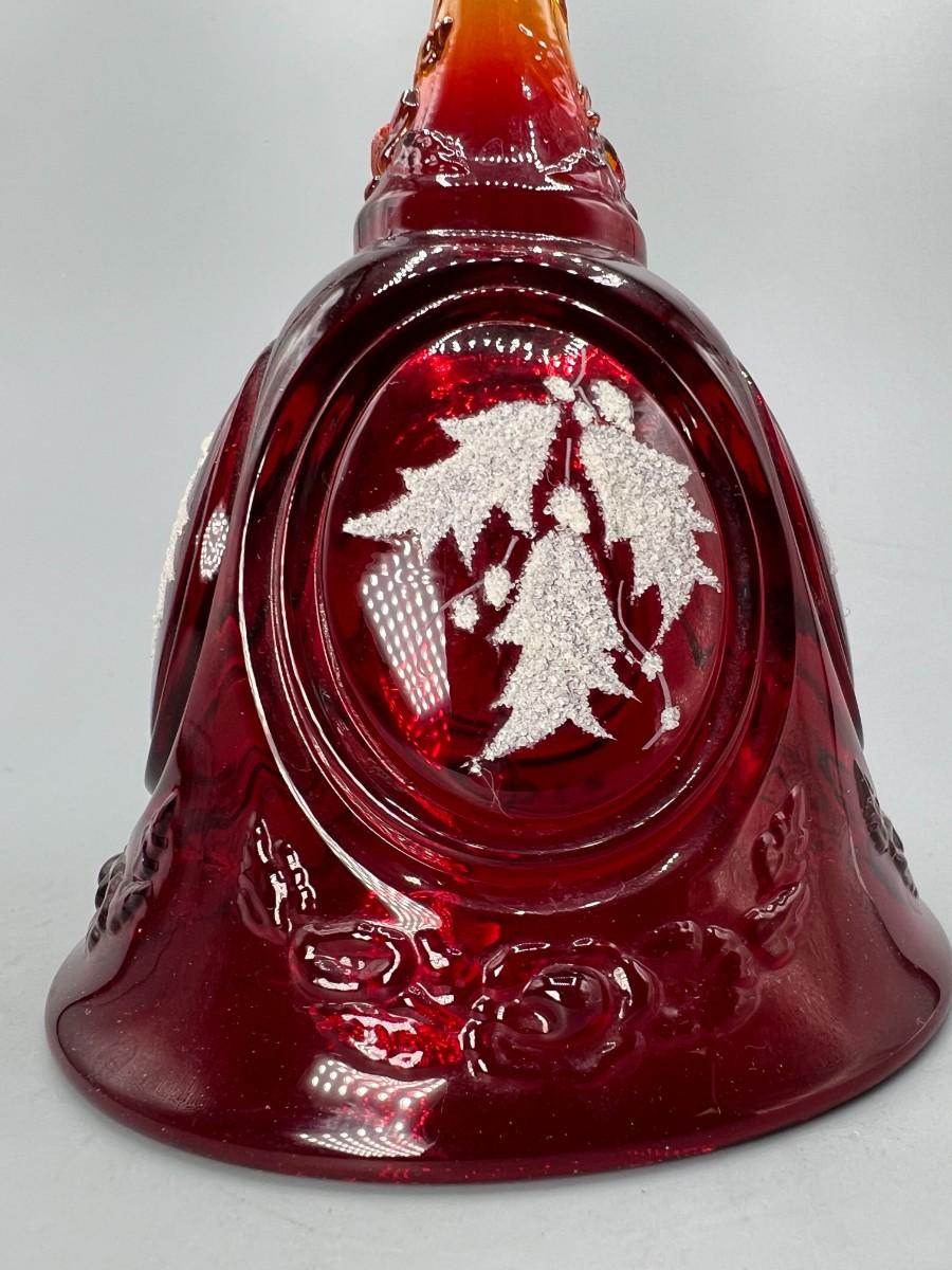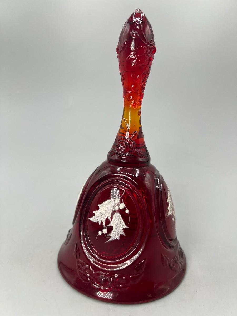 Vintage Fenton Red Art Glass Hand Painted Ruby Red Medallion Bell