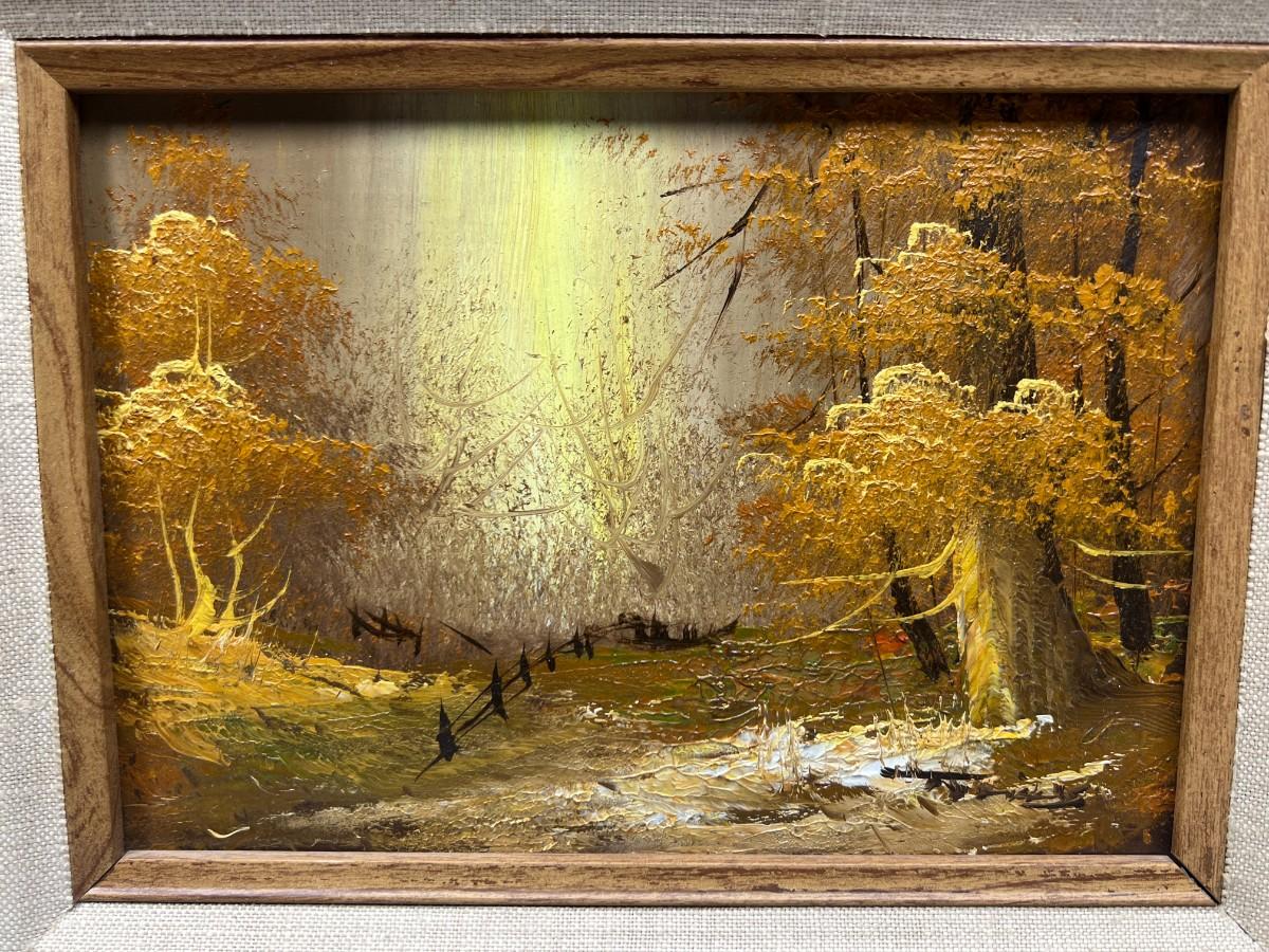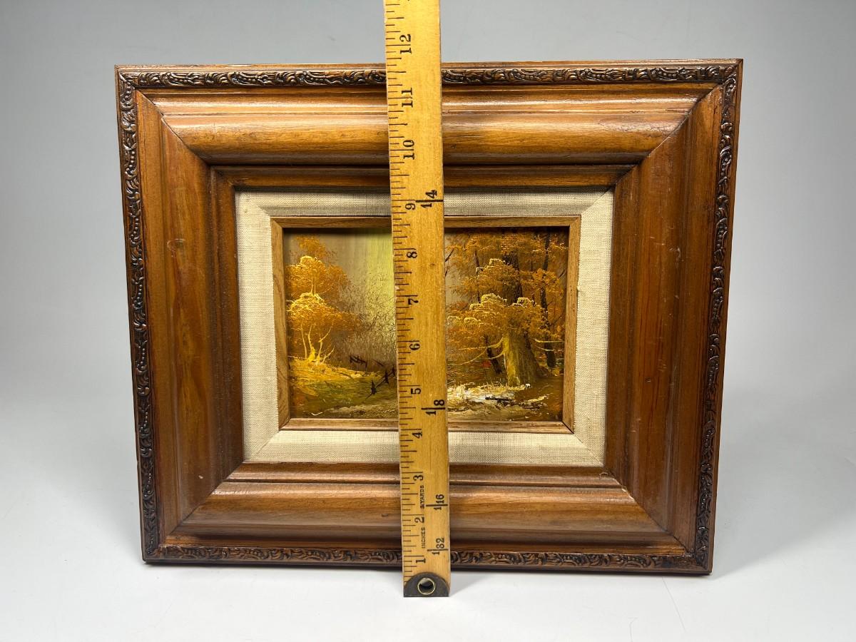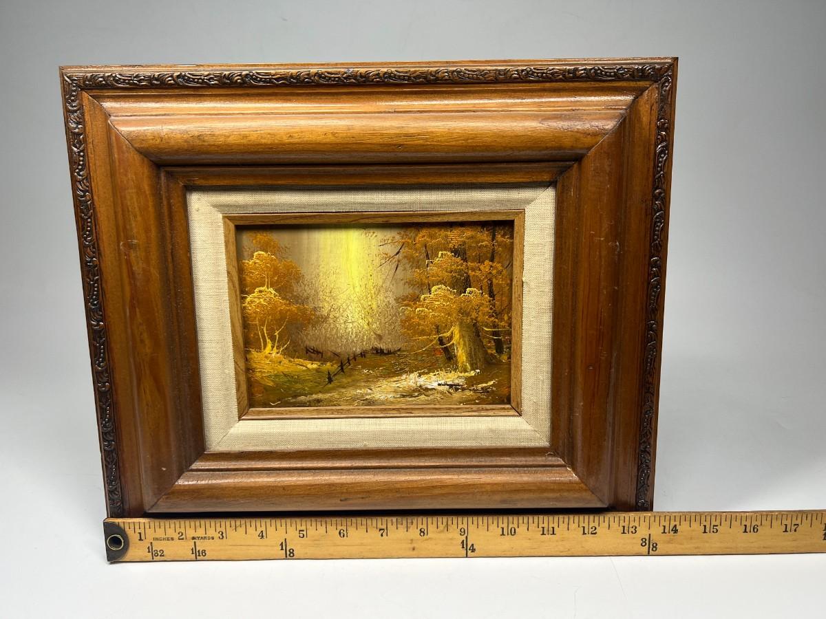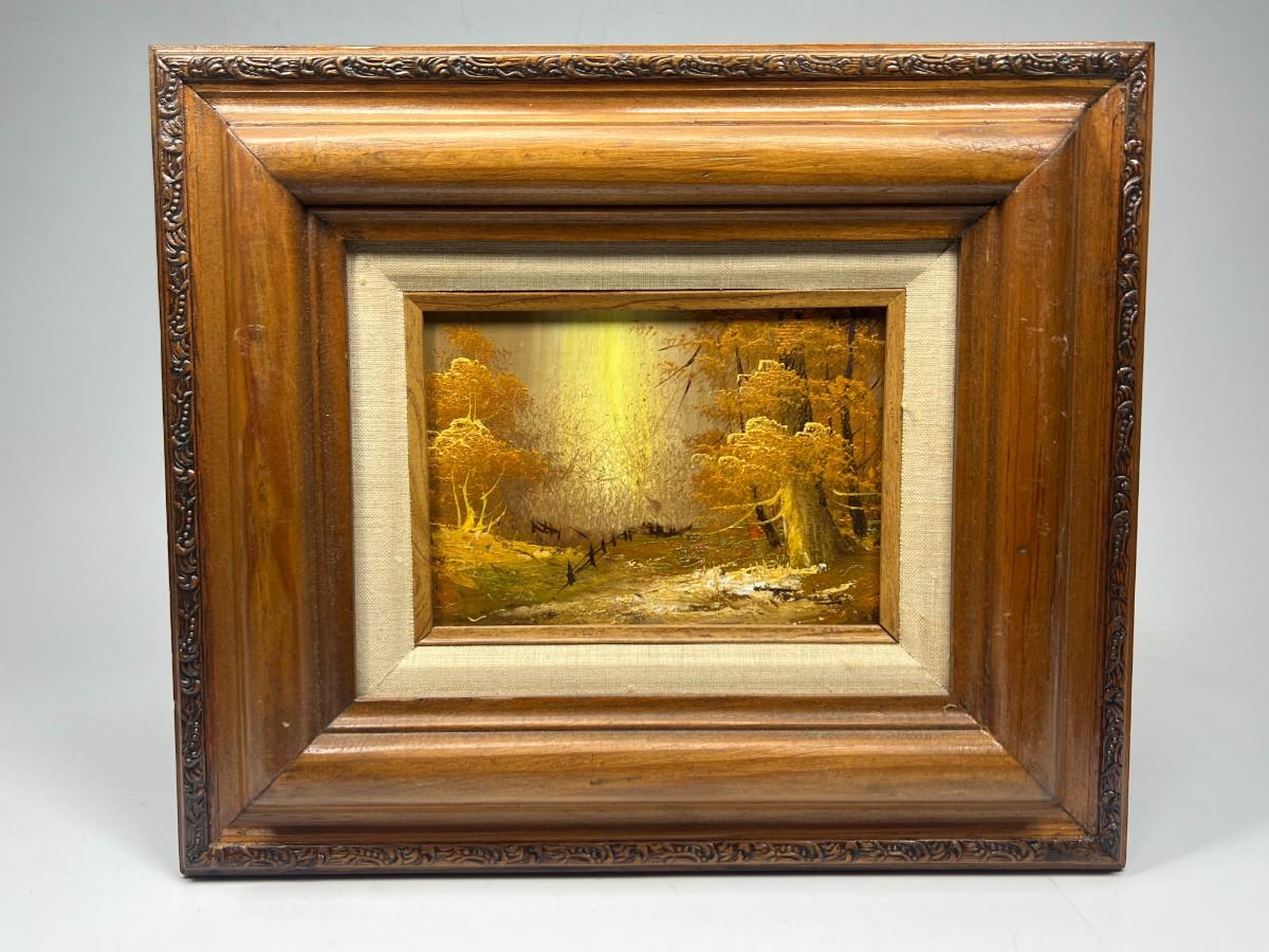 Small Vintage Framed Forest Fall Golden Hour Landscape Original Oil Painting