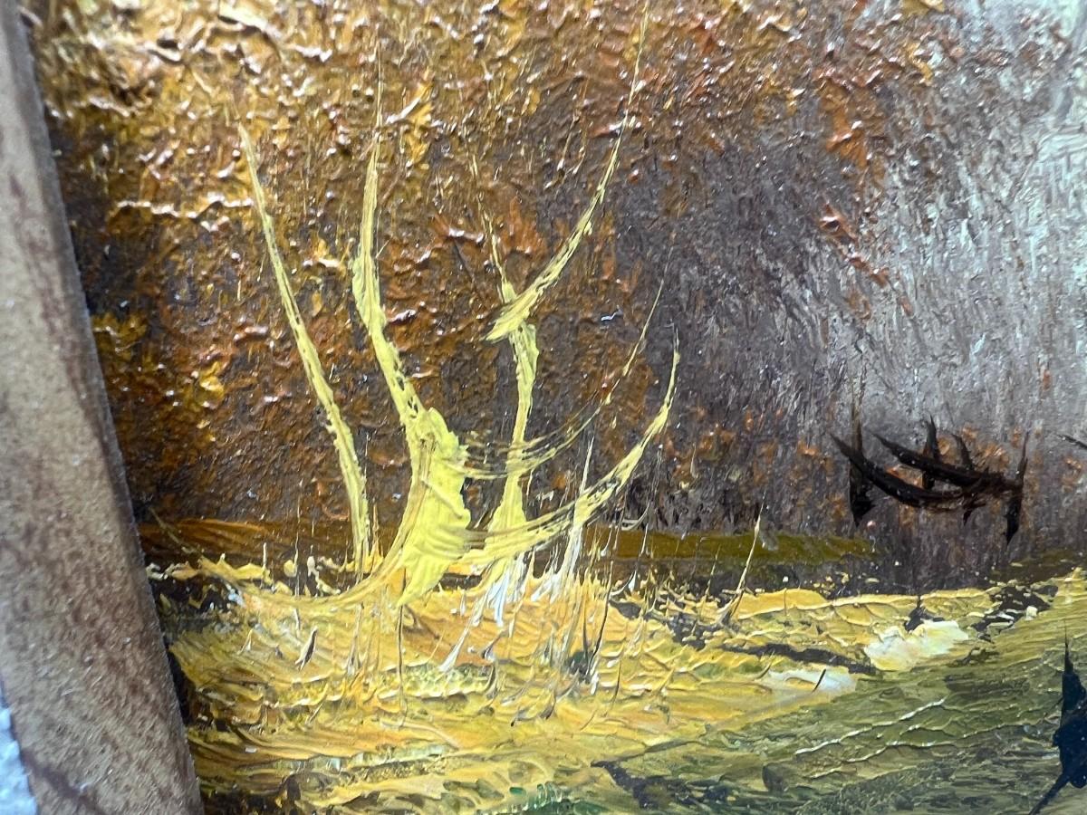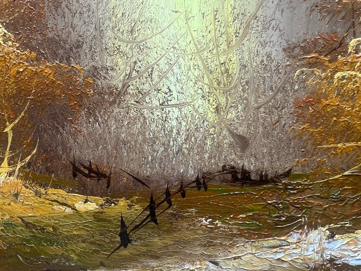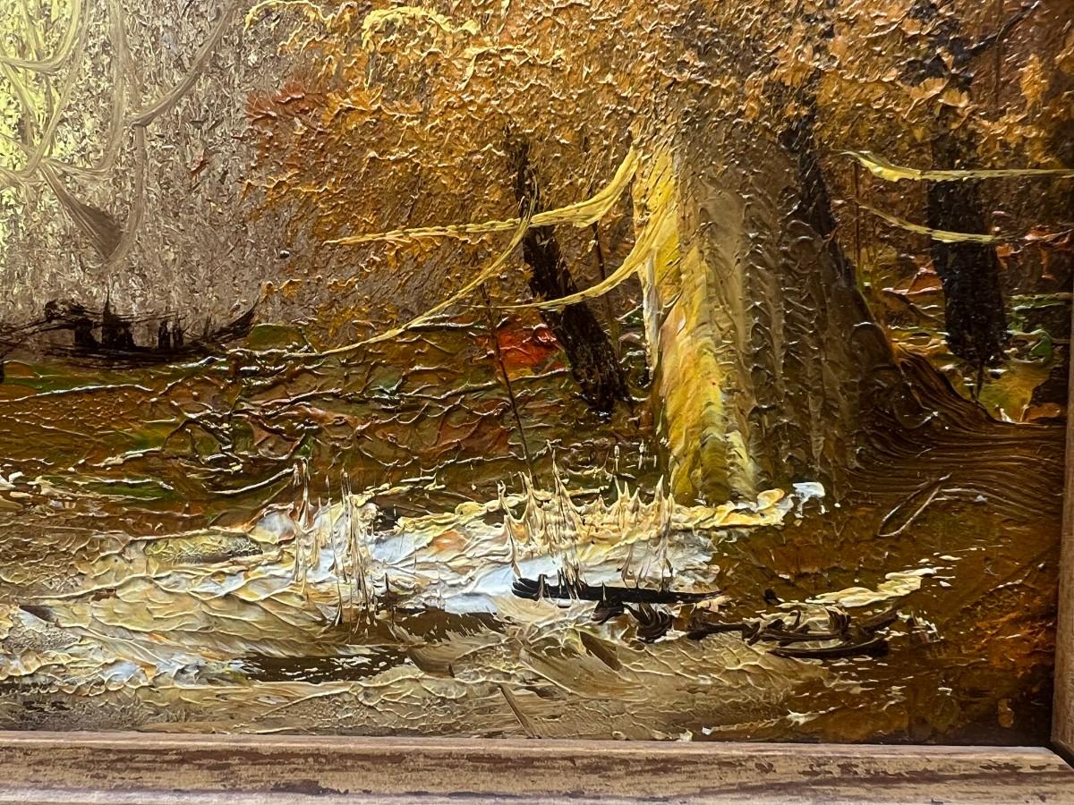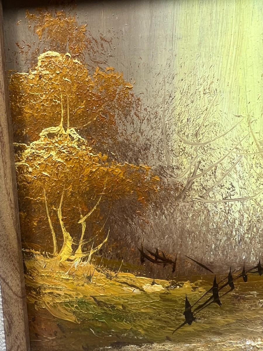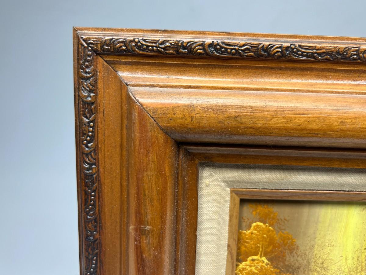 Small Vintage Framed Forest Fall Golden Hour Landscape Original Oil Painting
