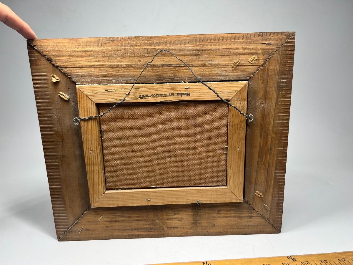 There is no significant damage to the wood frame or the canvas and in good collectible or displayable condition.