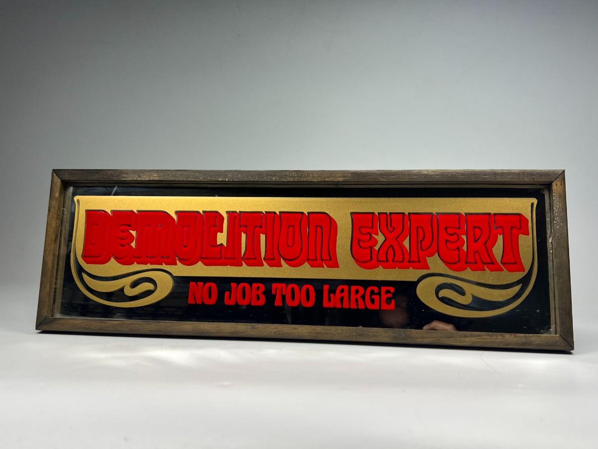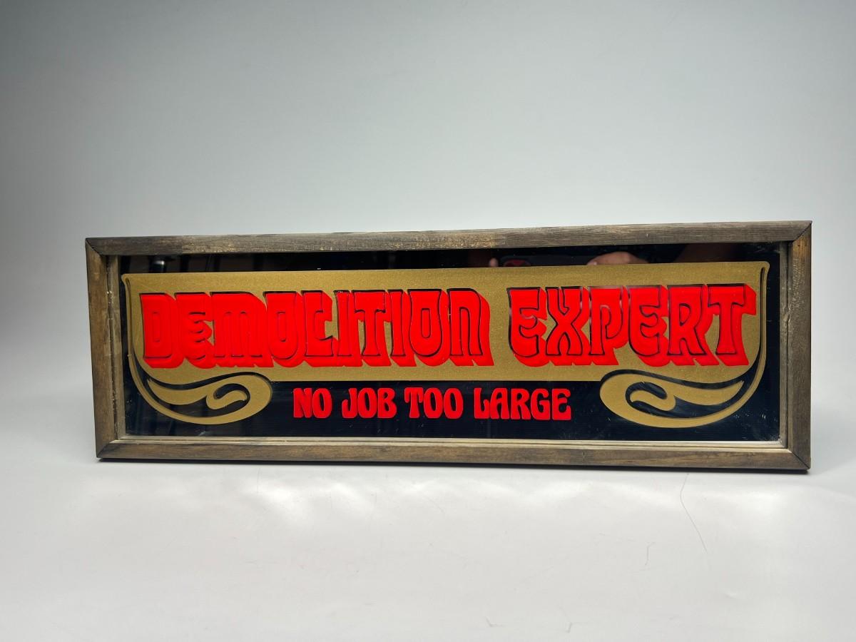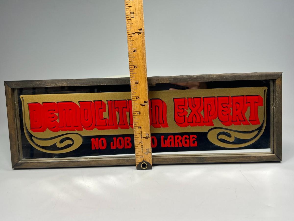 Vintage Hanging Barware Novelty Graphic Mirror Demolition Expert No Job Too Large