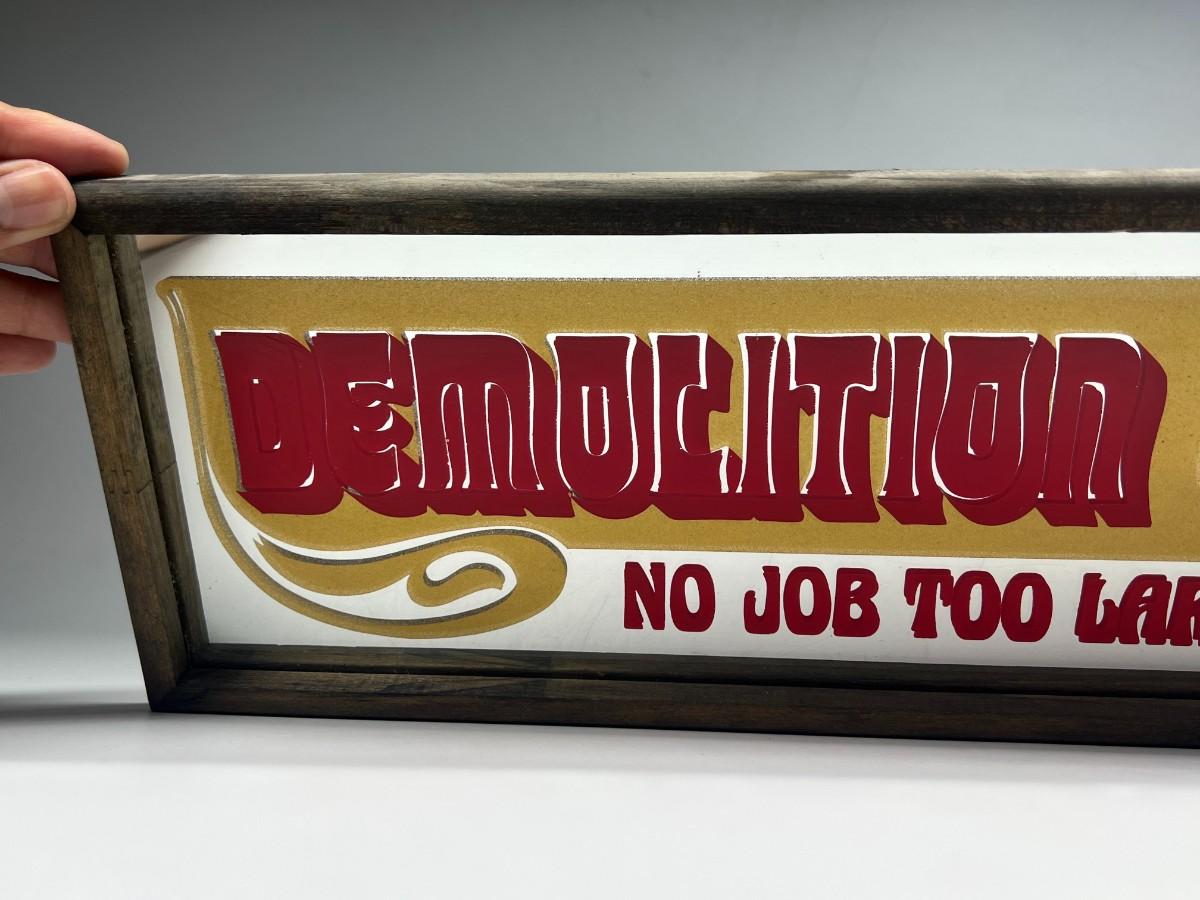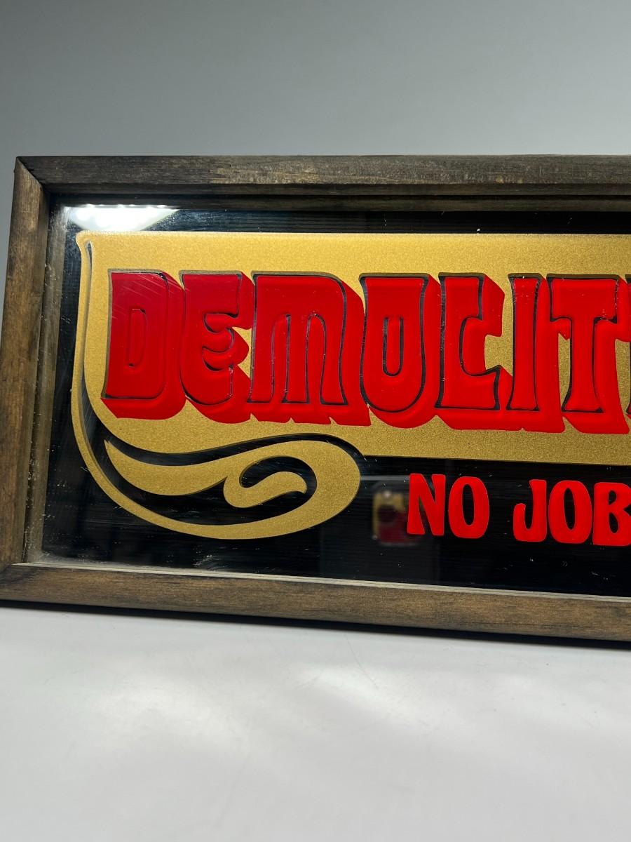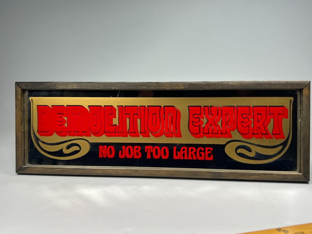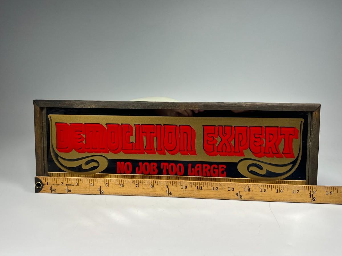 Vintage Hanging Barware Novelty Graphic Mirror Demolition Expert No Job Too Large